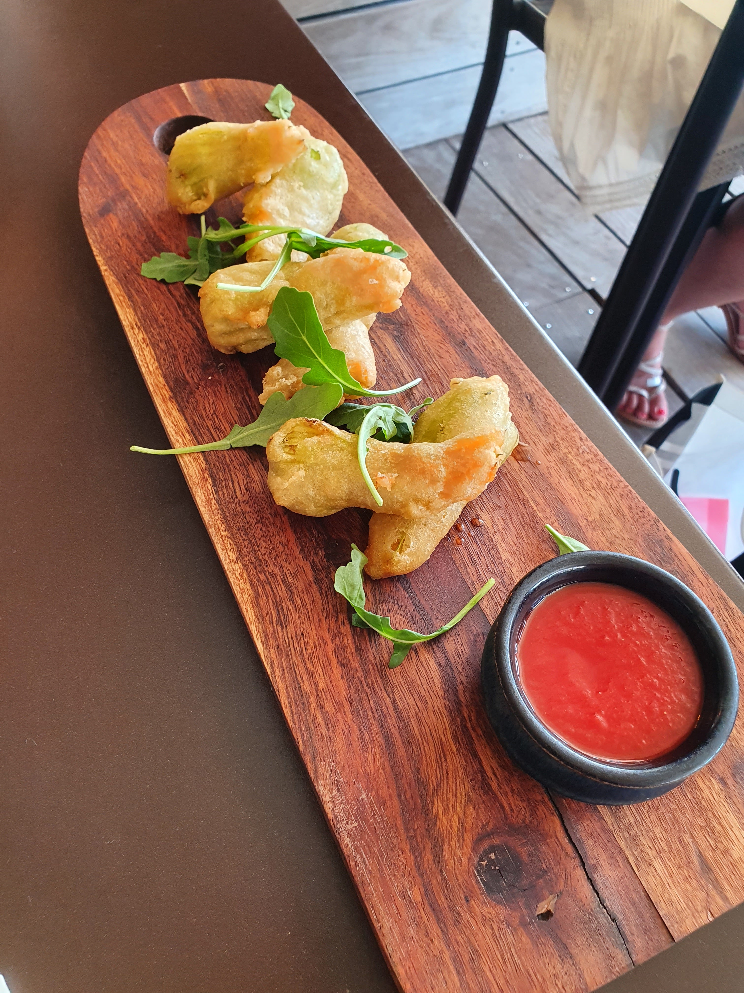 Je préfère généralement un plat froid lors d'une soirée chaude, mais les raviolis à la mozzarella et aux tomates séchées au soleil étaient autre chose ! L'année dernière, j'ai voyagé dans les Pouilles, en Italie (patrie des pâtes) et ce plat aurait peut-être été encore meilleur. Amoureux! Merci au personnel aimable de m'avoir aidé à choisir mon plat ! 🥰