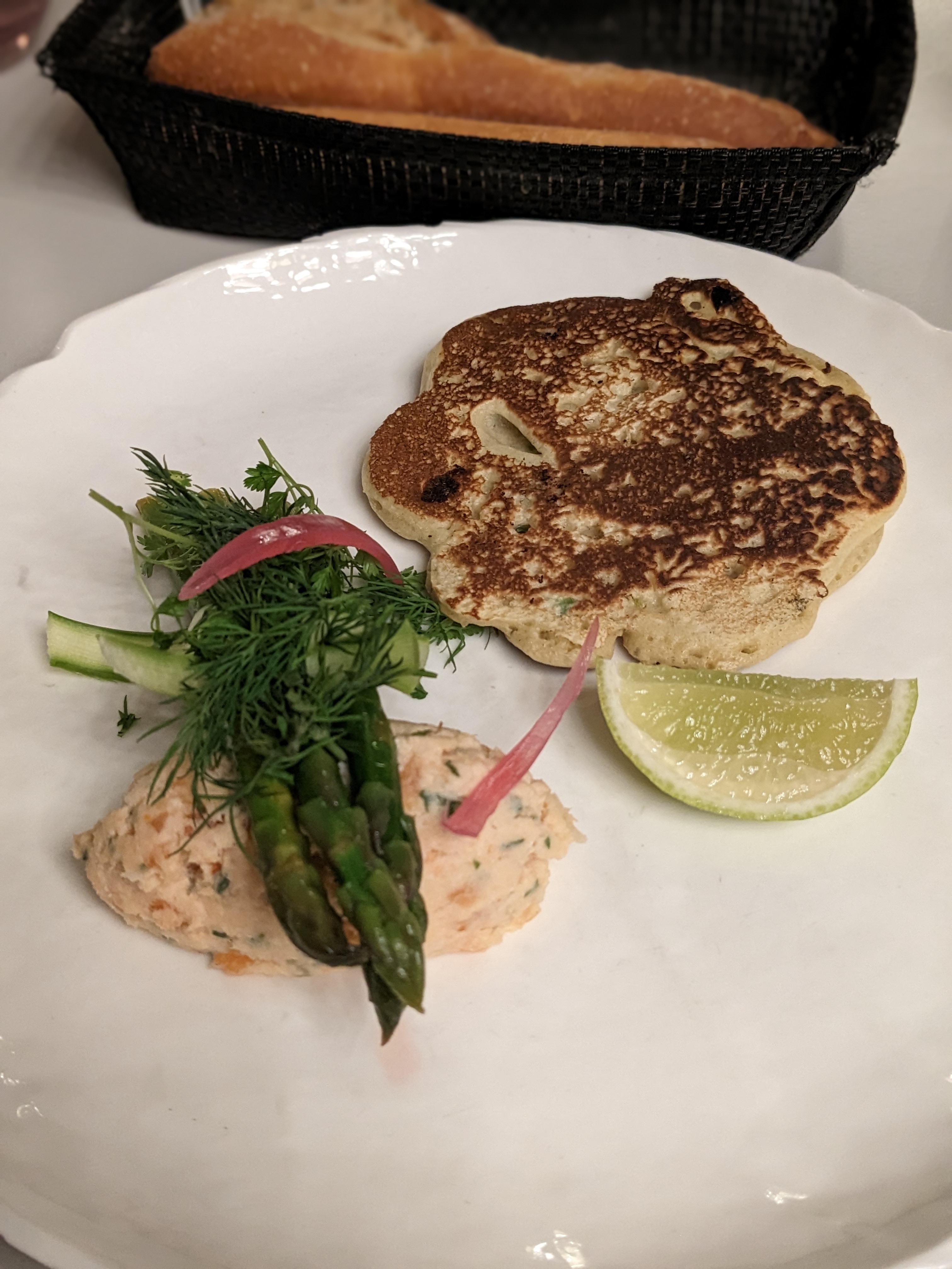 Très déçue par ce restaurant. Je l’avais sélectionné pour un anniversaire en voyant tous les bons avis et le referencement sur le site du Michelin . Le repas n’était pas à la hauteur . Terrine de saumon en entrée avec un goût idem à une terrine au poisson de grande surface . Les asperges cuites à l’eau aucune sauce aucun goût . Le pancake fade , pareil digne d’un supermarché . Pour le plat le seul point positif la cuisson du cabillaud . Sinon l’accompagnement était lamentable , lentilles comme en conserve de grande surface , carotte sans goût , salade sans sauce . Seul le dessert au citron était plutôt bon . Mais crème à l’avocat sans aucun arrière goût d’avocat , elle n’en avait que le nom ! Les quantités sont insuffisantes . Seul le très beau cadre de la salle était à la hauteur . Mais pour 39 euros c’est du vol . Première et dernière fois .. à éviter !!
