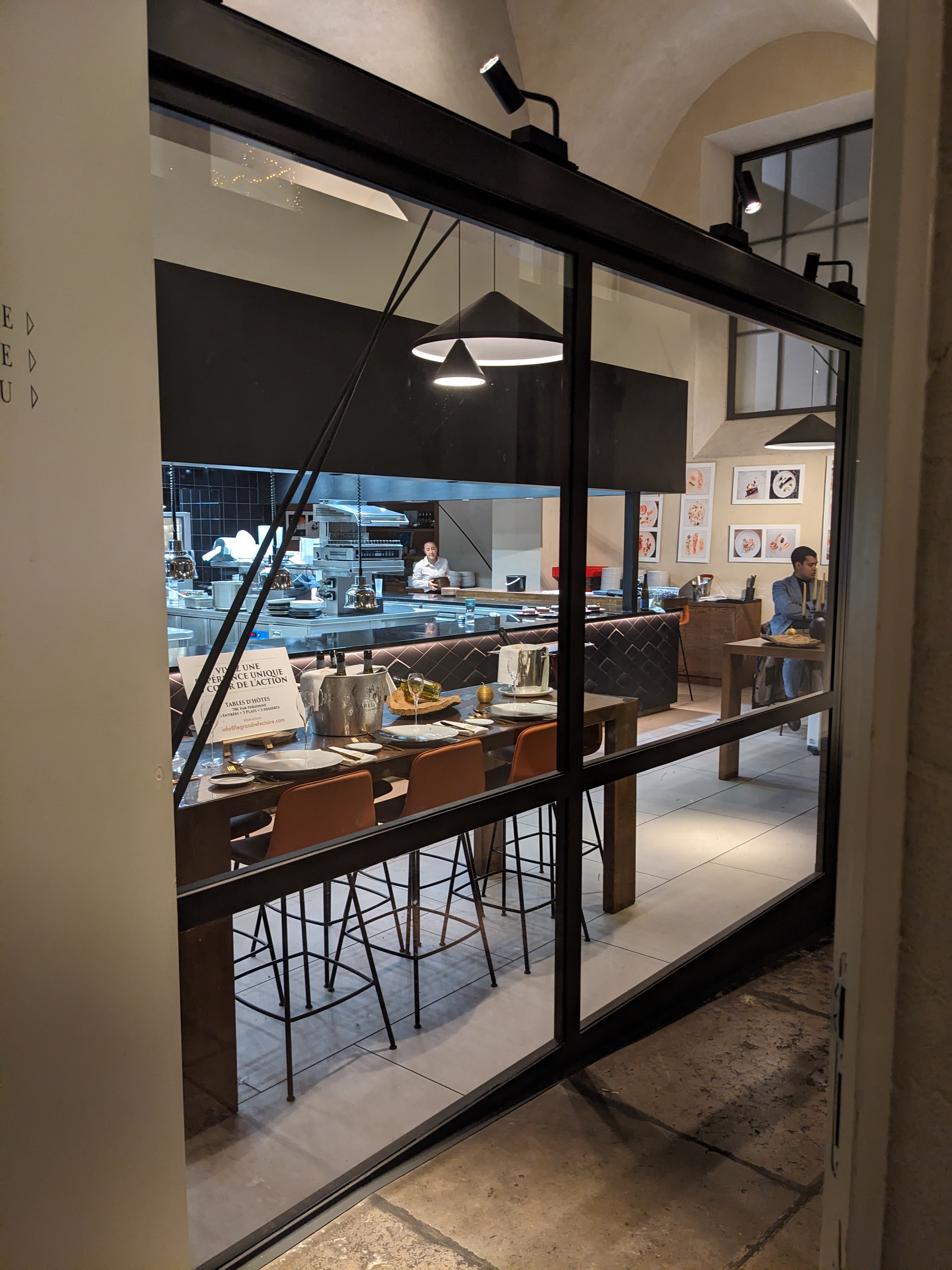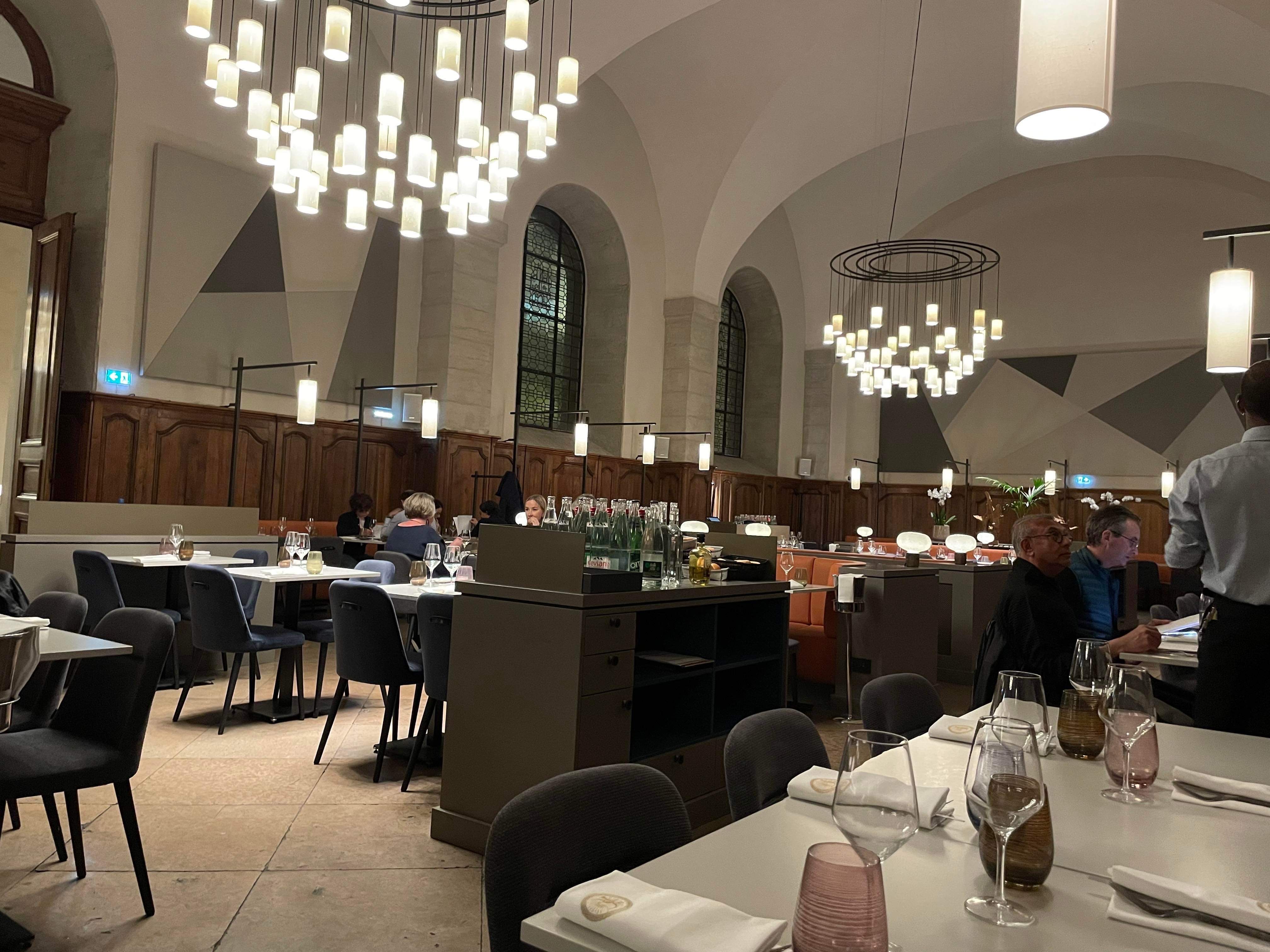 Comme son nom l'indique c'est un réfectoire. Sombre si on n'est pas sous un plafonnier. Les mélanges de saveurs sont a priori intéressantes mais ne se révèlent pas opportuns que ce soit au goût ou à l'œil. Donc cher pour ce que c'est le soir (pour 3 noix de Saint Jacques).