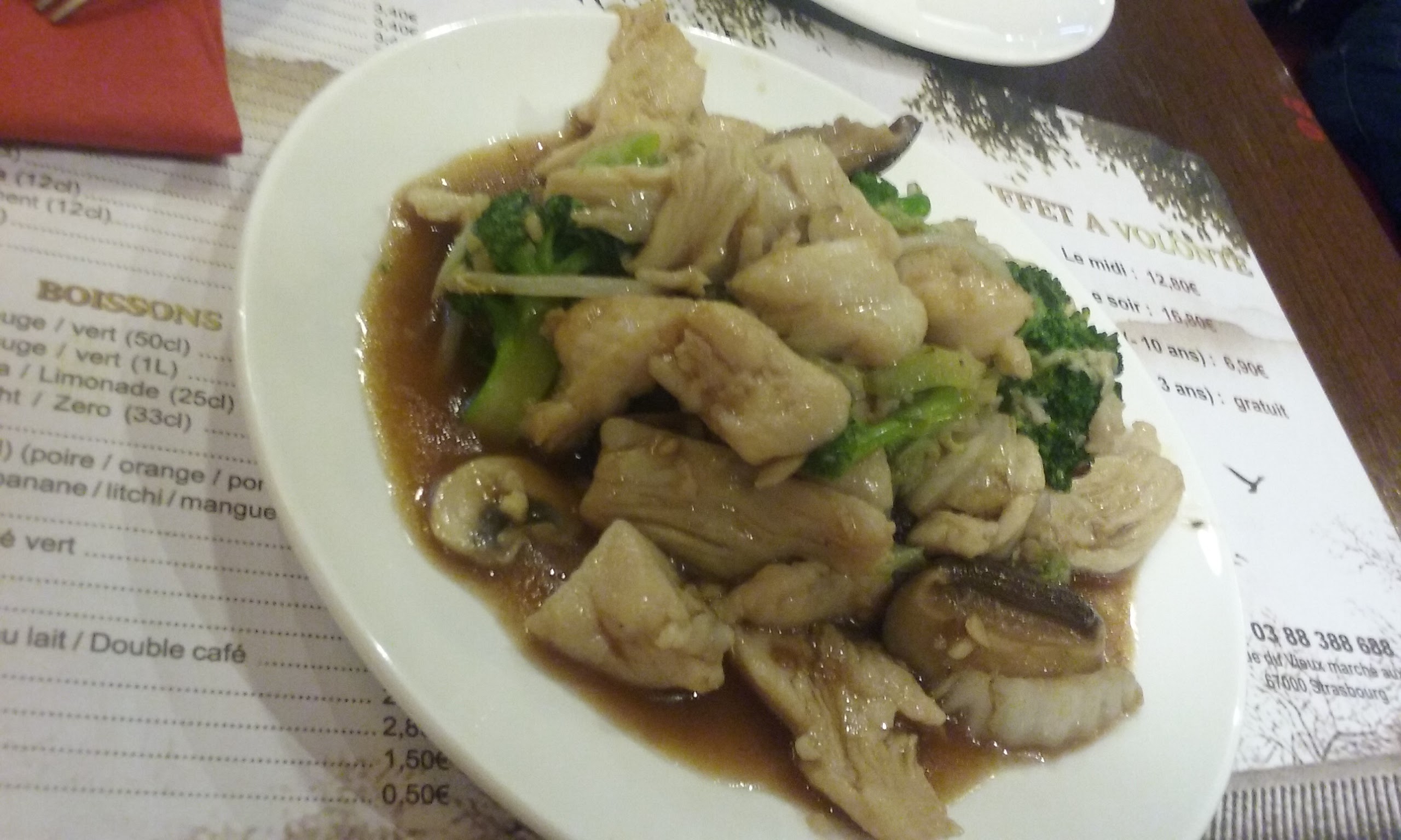 C'était mon premier restaurant chinois buffet a volonté et il faut dire que j'avais des appriori plutôt négatif. Et bien c'était très bien . un choix de légume et viande poisson frais a composer et proposer aau chef qui vous cuit en grille ou wok . Vous choississez aussi votre sauce vos pâtes . le reste du menu est bien fruits frais . dessert. le cadre et le service très bien tarif moins de 20euro .Bonne dégustation