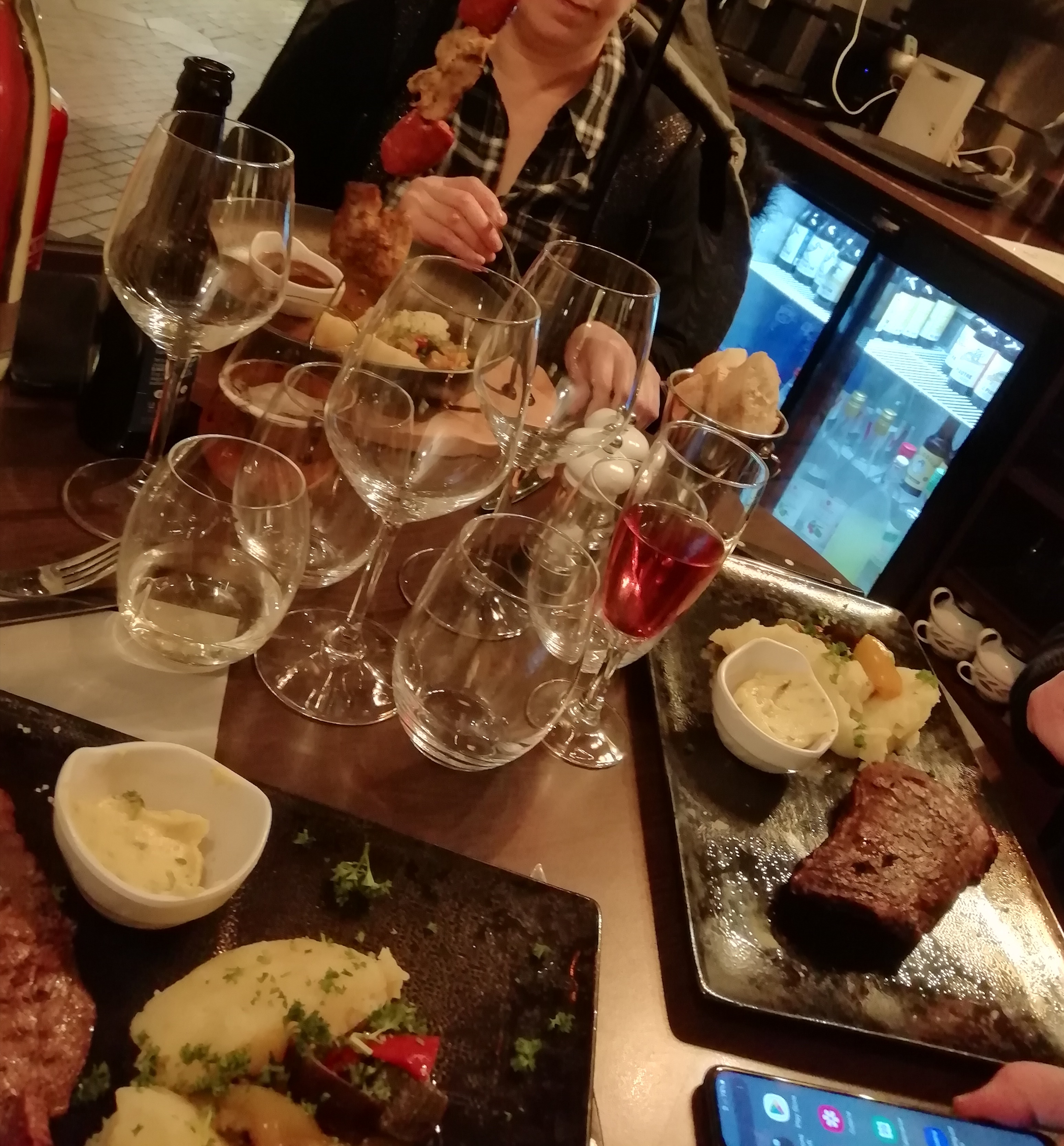 Personnel gentil, on a nous a proposé de goûter les vins pour nous décider sur celui que nous souhaitions prendre (pour seulement 2 verres), ce que nous avons apprécié. Les accompagnements et le dessert étaient très bons mais la viande n'était pas assez cuite, ce qui est dommage. Quelques petites choses à améliorer pour faire de cet endroit chaleureux un très bon restaurant.