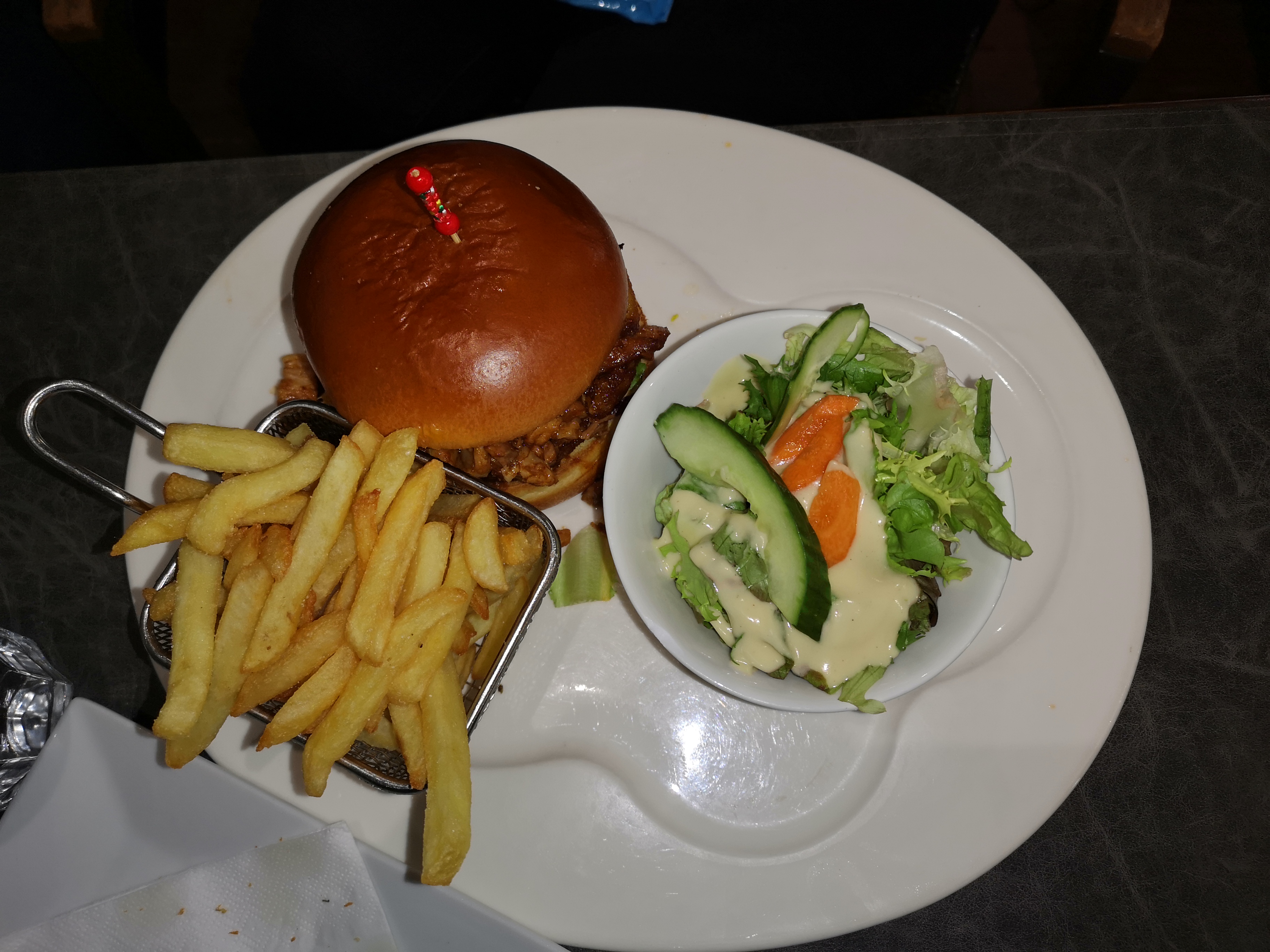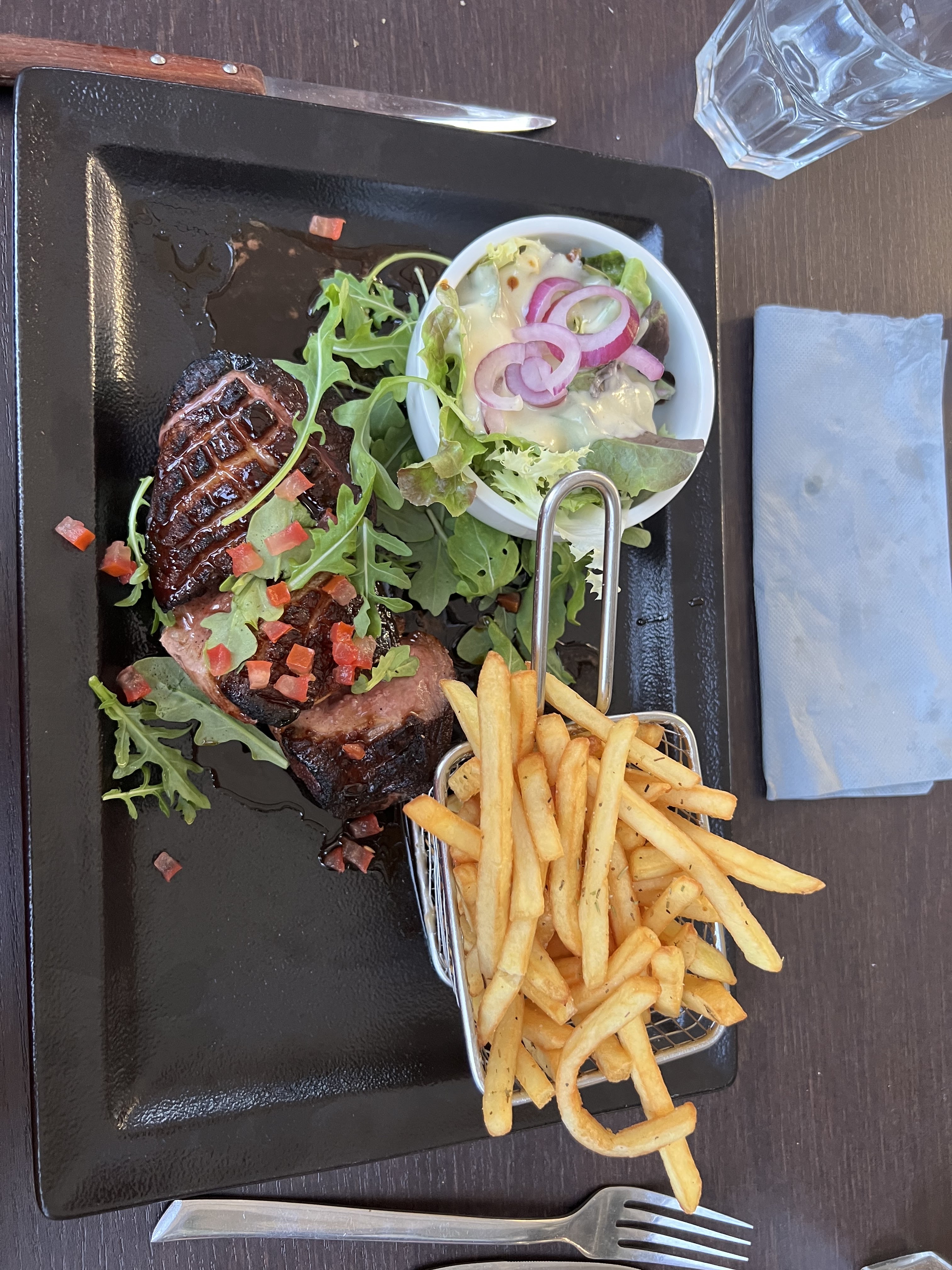 Très déçue … une horreur les plats immangeables les frites sèches comme pas possible et les salades remplies d oignons rouges …. Aucun effort sur les plats .. c était vraiment mauvais! Sans parler du service ..