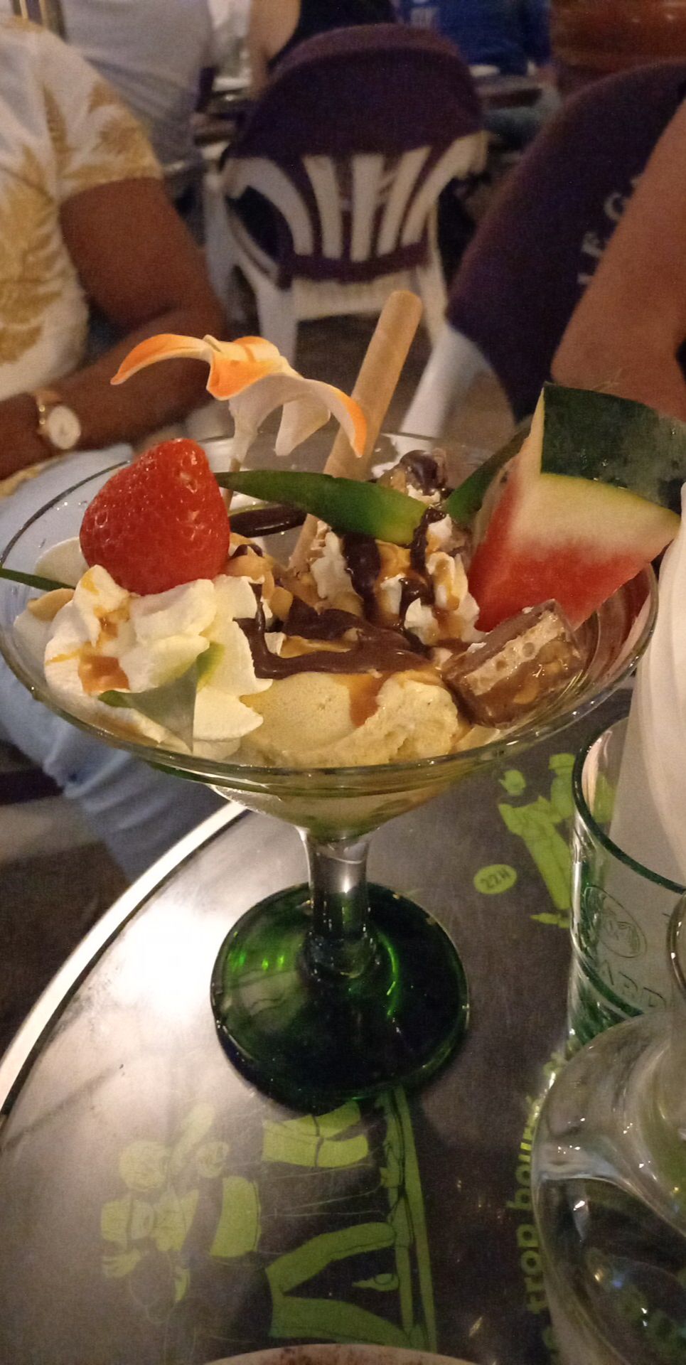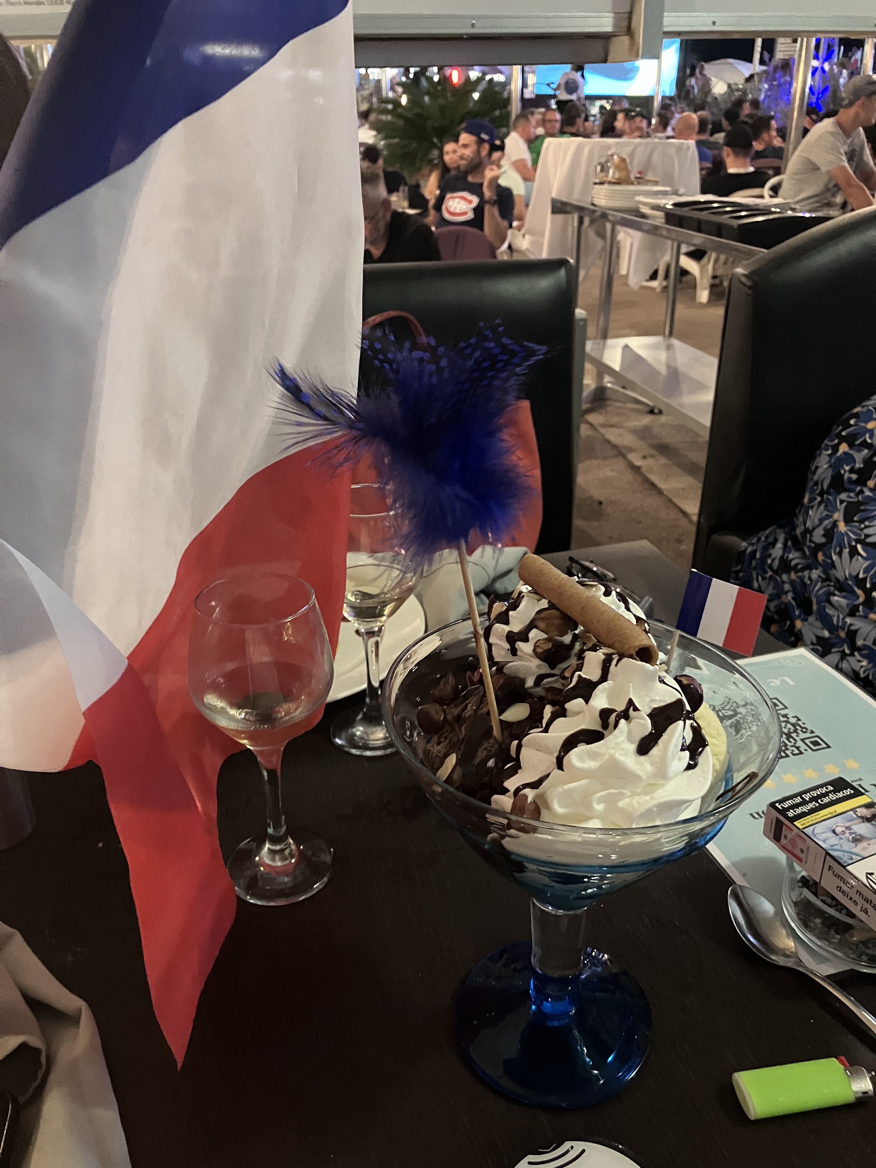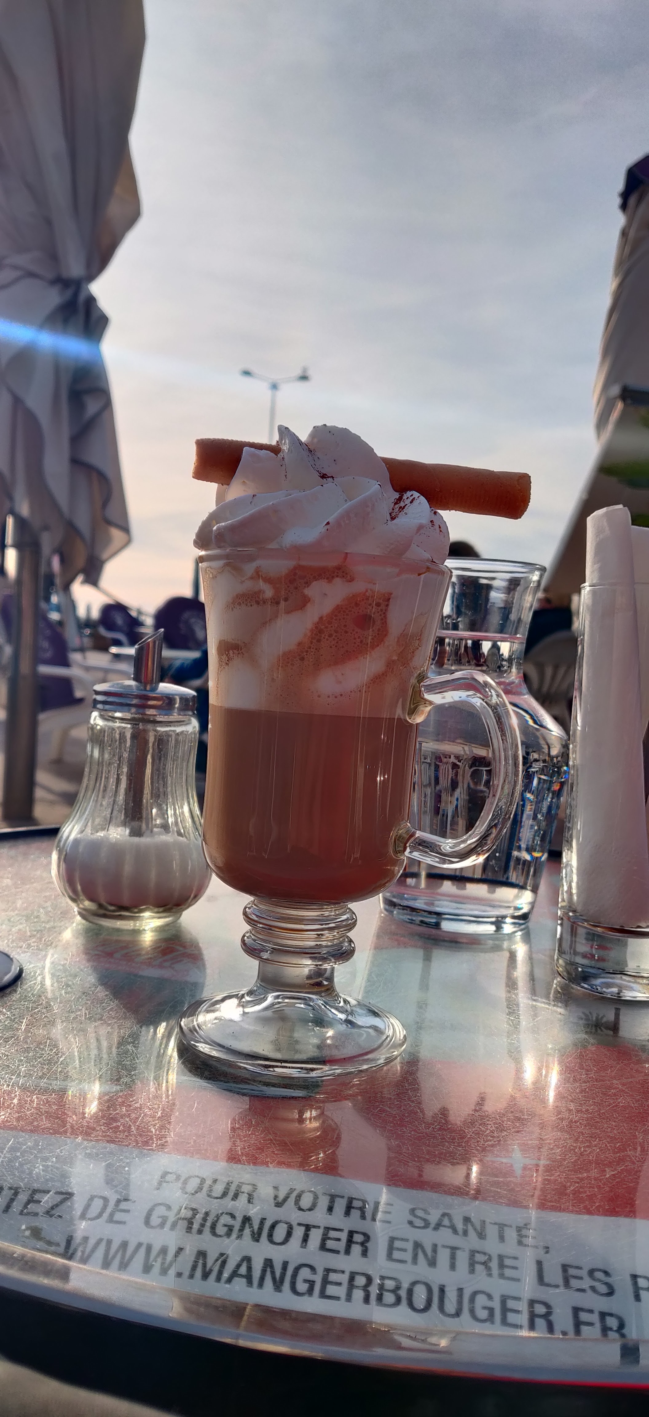 Glace 1er prix Cocktail chaud Coca servi avec glaçon fondu Bref sur une commande rien de bon, c’est juste agréable de se poser, les chaises sont confortable.