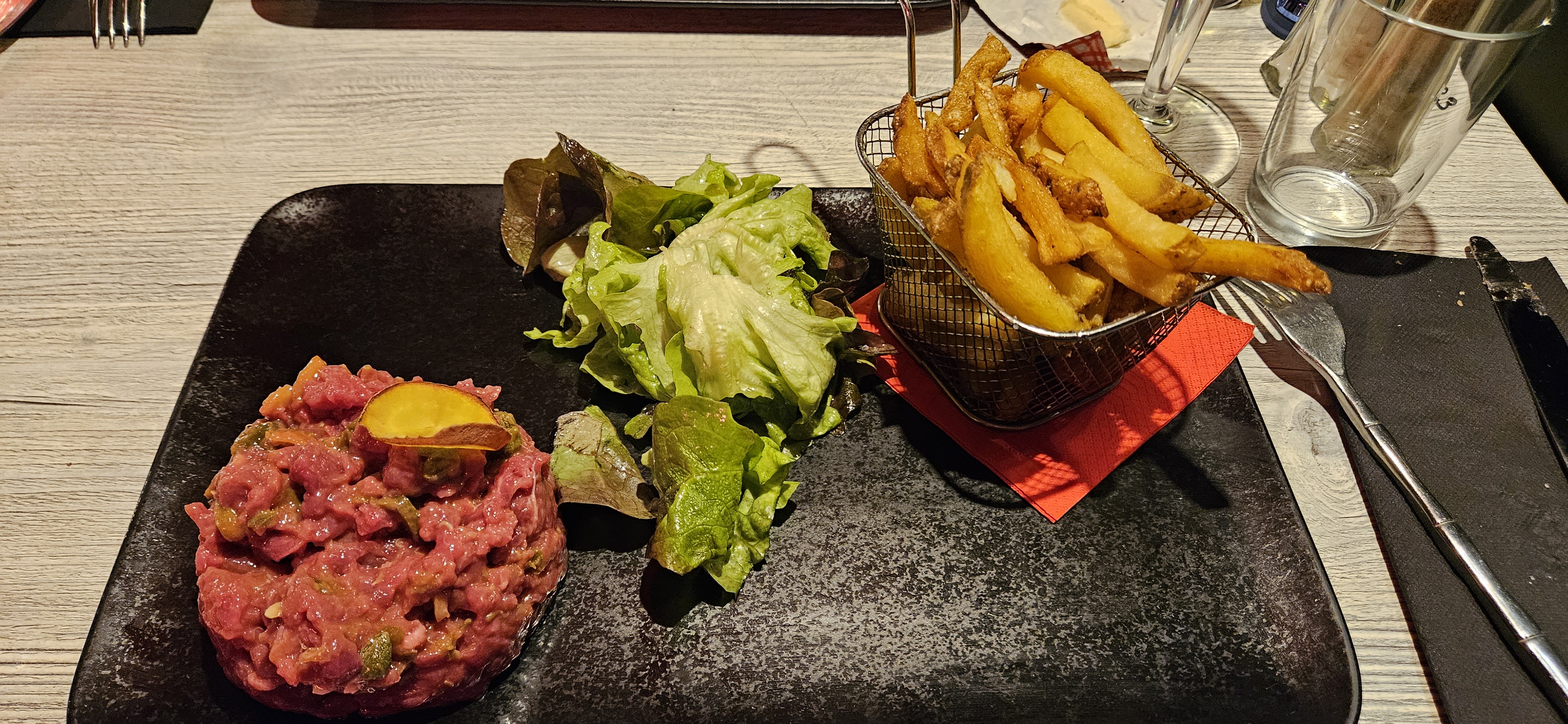Mitigé sur ce restaurant. 25€ une (très bonne) entrecôte mais servi avec ketchup et mayo en sachet, c'est un peu dommage. Pas de menu enfant. La carte est très très restreinte même si les plats sont bons. Au final, je ressors un peu déçu.