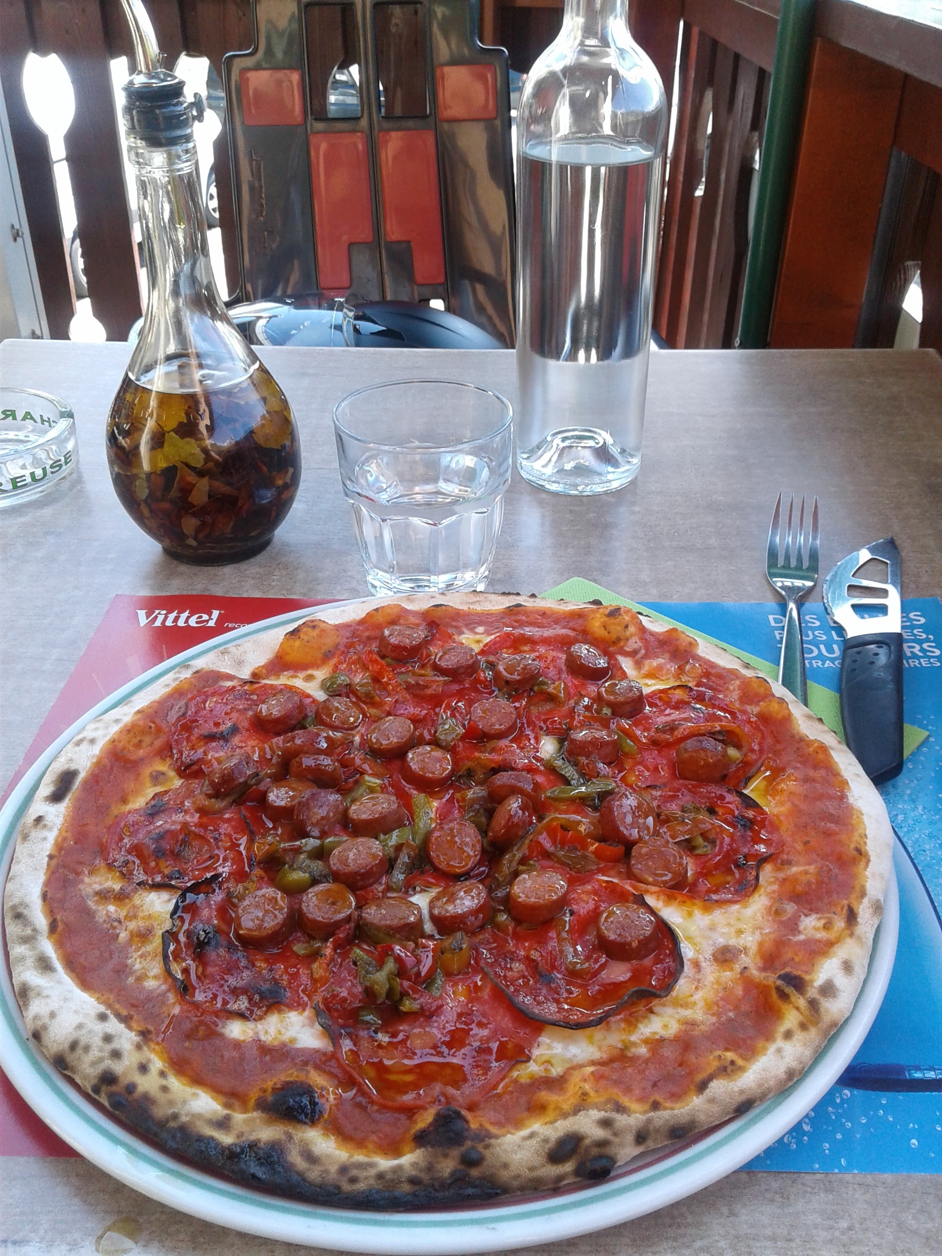 Petit restaurant pizzeria sympas. Un four a bois pour les pizzas et une déco soignée. L'accueil y est très bien aussi bien sa serveuse que le pizzaiollo. La pizza était moyenne, c'est sur c'est pas la meilleure pizza que j'ai mangé mais la terrasse extérieure avec un si beau temps fait vite oublier les merguez top budget sur la pizza.