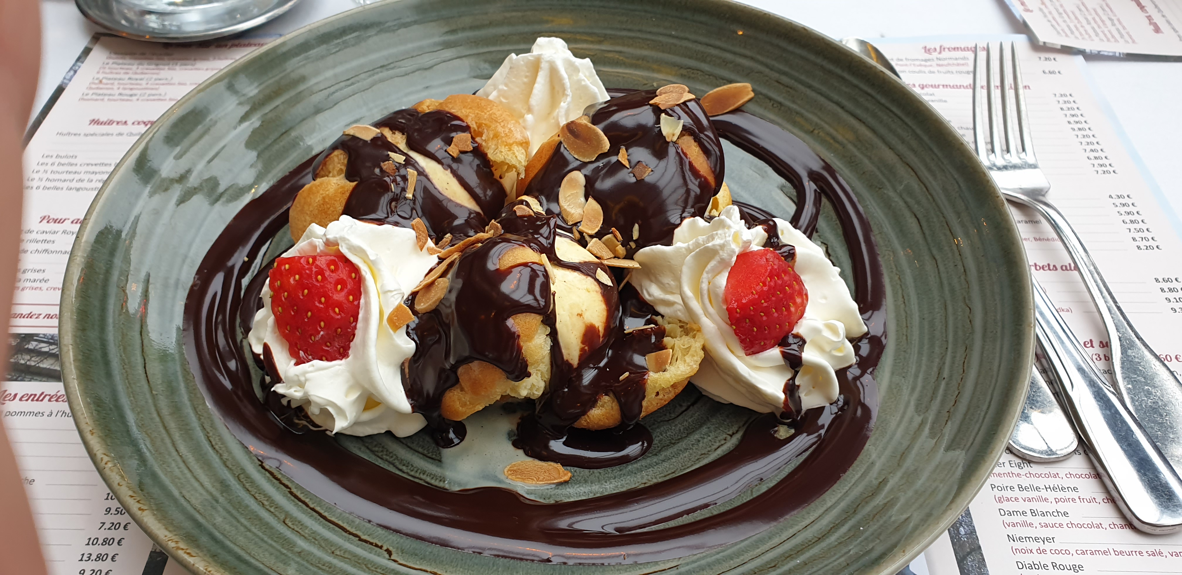quantité/prix au top. qualité gustative déplorable. il a de bon aliment mais qu'il ne sont pas bien cuisiné. j'ai commandé un riz de veau et deux minutes après il est sur la table ??? la sole baignais dans l'huile. les choux du profiteroles étais mous. je pense a un restaurant qui achète des plats préparés. les assiettes sont copieuses. chère pour la qualité gustative et pas chère pour la quantité dans l'assiette
