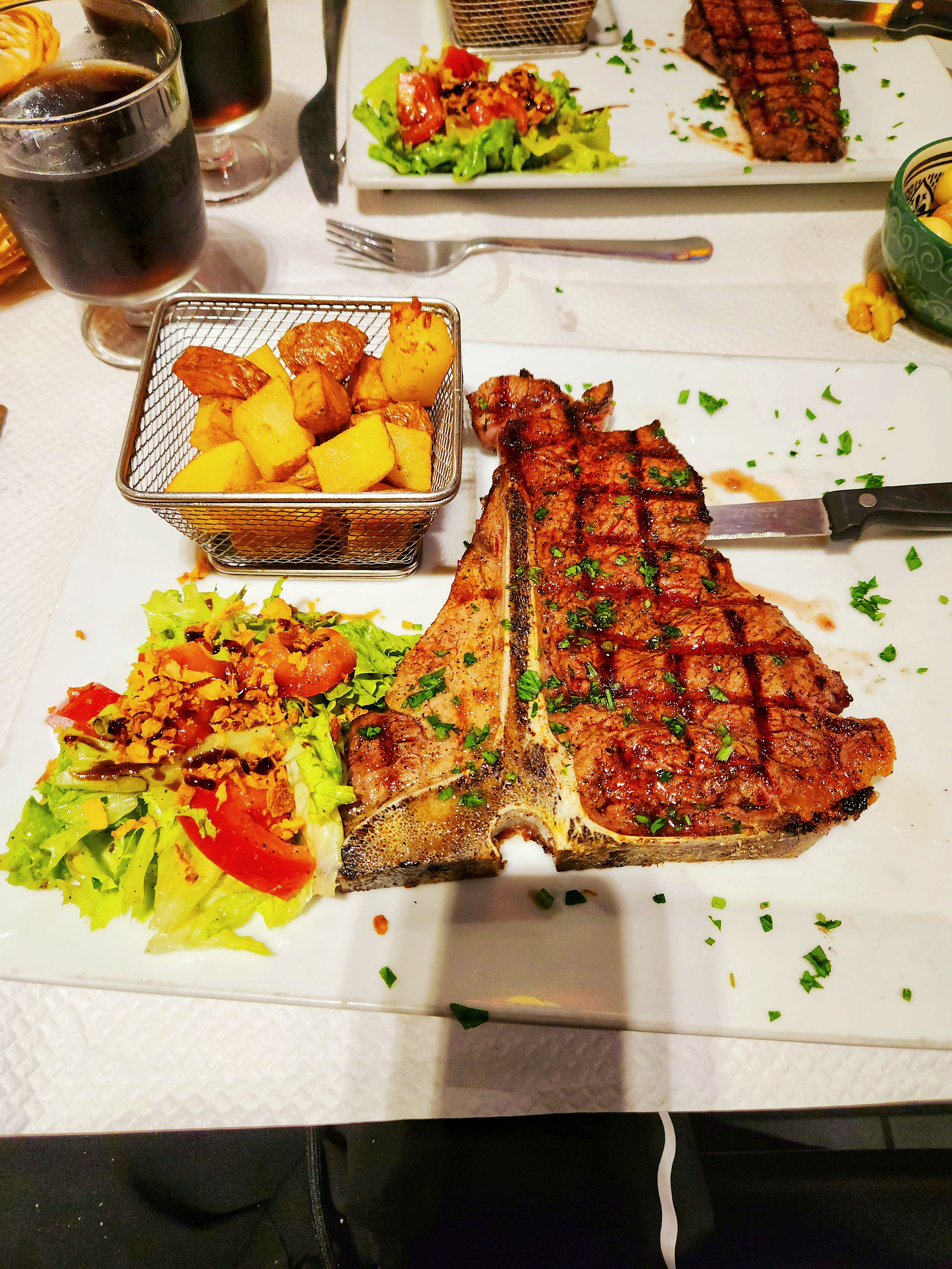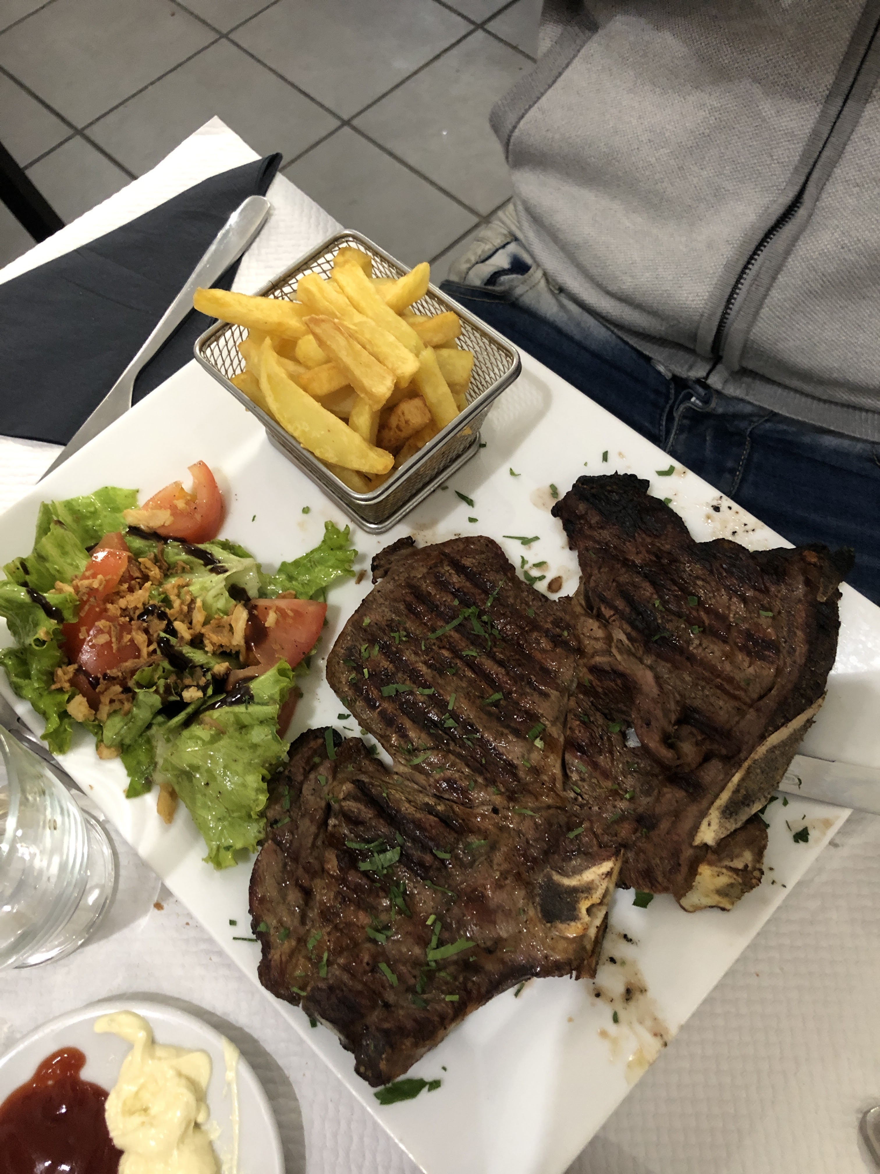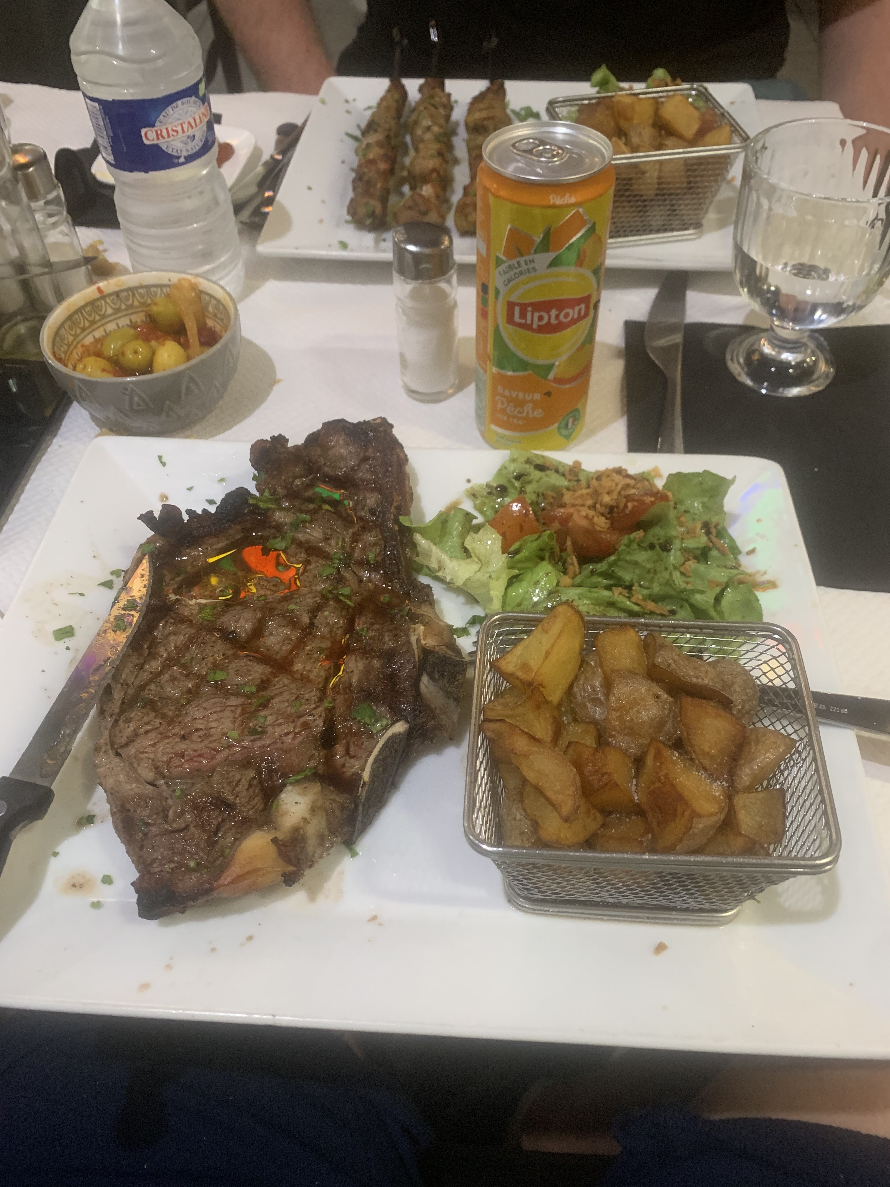 Comme vous pouvez le constater sur la photo, ils ne plaisantent pas avec l’entrecôte et pour ce qui est de la qualité 10/10. Je conseille vivement aux les carnivores ! L’accueil y est très bon et l’ambiance familiale !