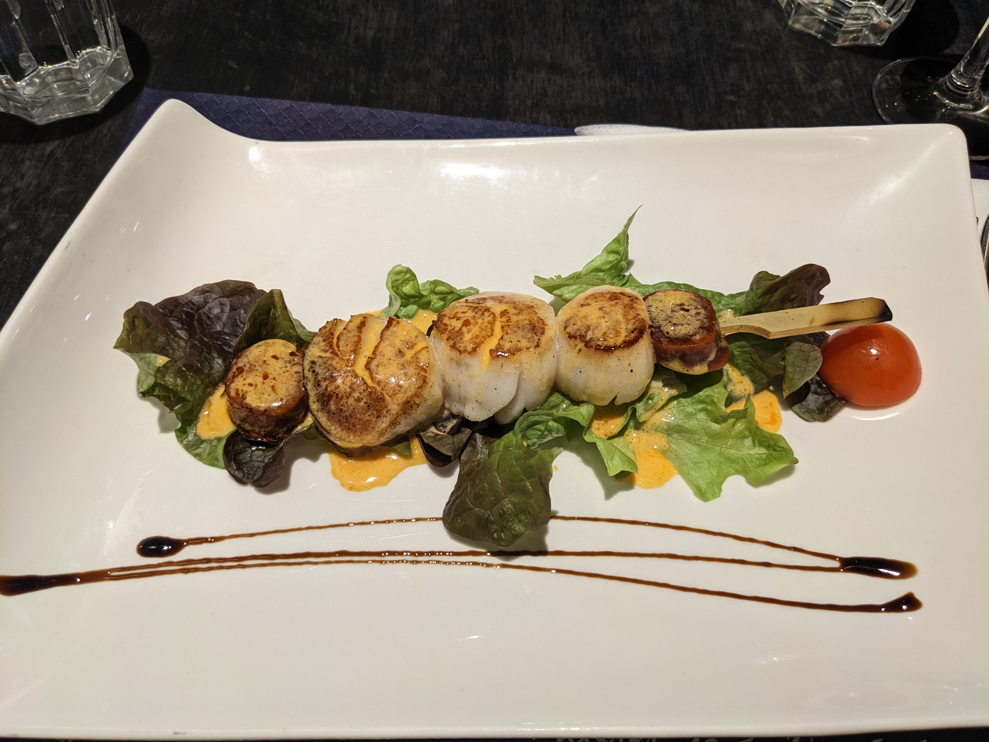 On y mange toujours aussi bien. Encore ce soir j'ai très bien mangé. Les gambas étaient très bonnes et en dessert comme d'habitude: crème brûlée! 😜😋