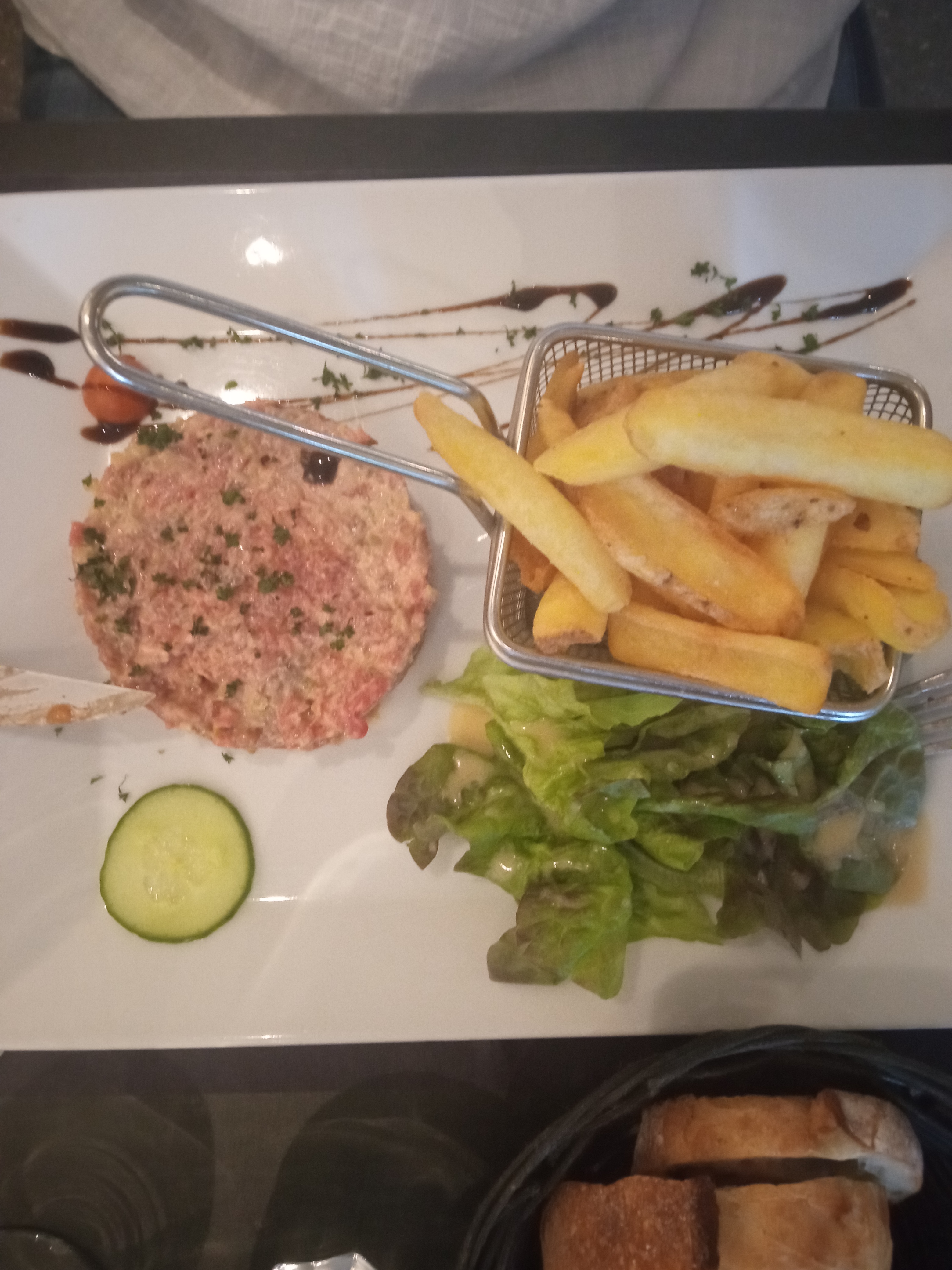 Lieu agréable, facilité de stationnement à proximité. Les plats étaient bons, servis dans 1 temps acceptablepour un samedi soir avec le restaurant plein. Prix tout à fait corrects. Un regret: les frites sont surgelées, de bonnes frites fraîches auraient magnifié la cuisse de canard, dont la sauce par ailleurs est excellente.