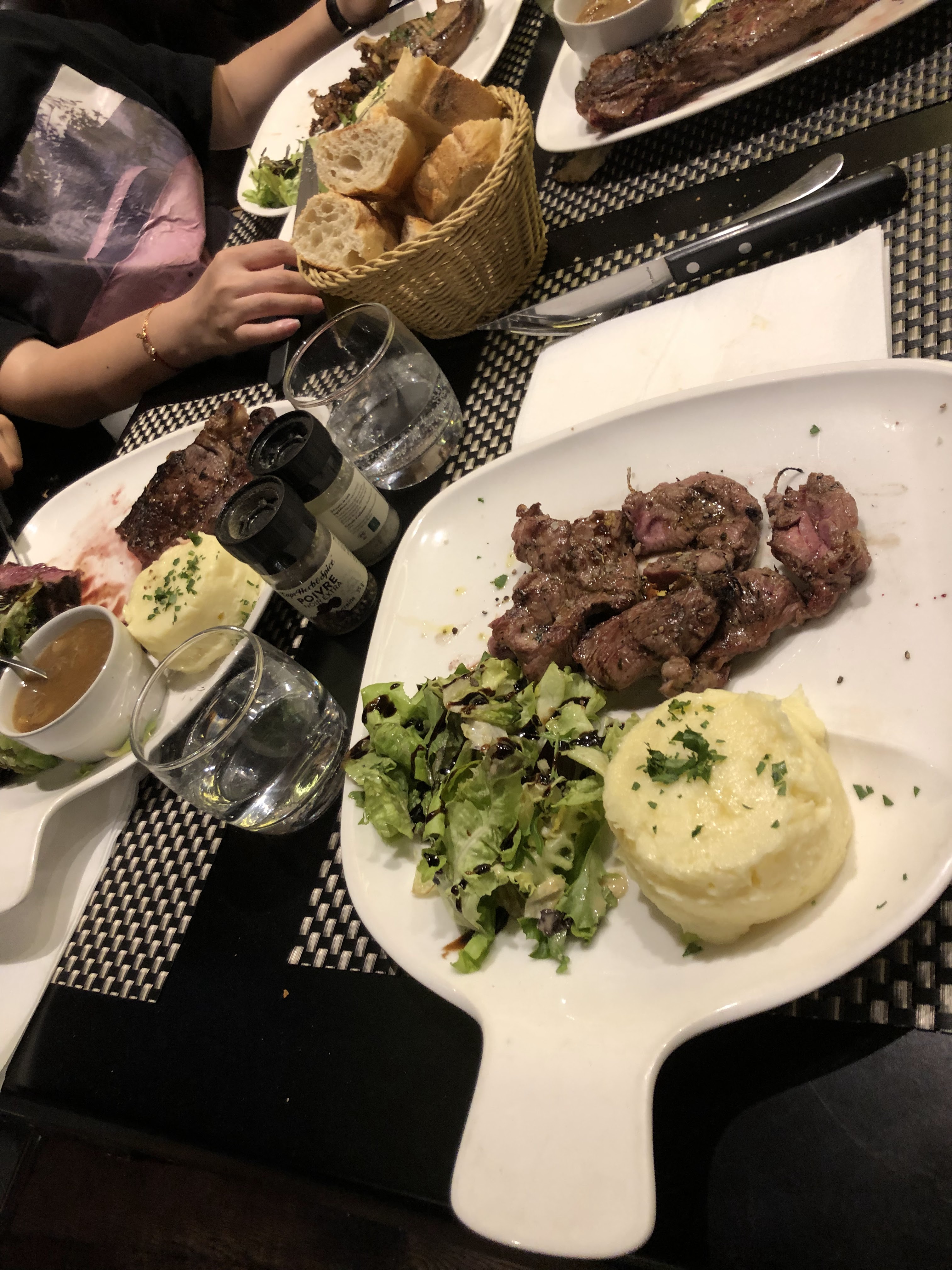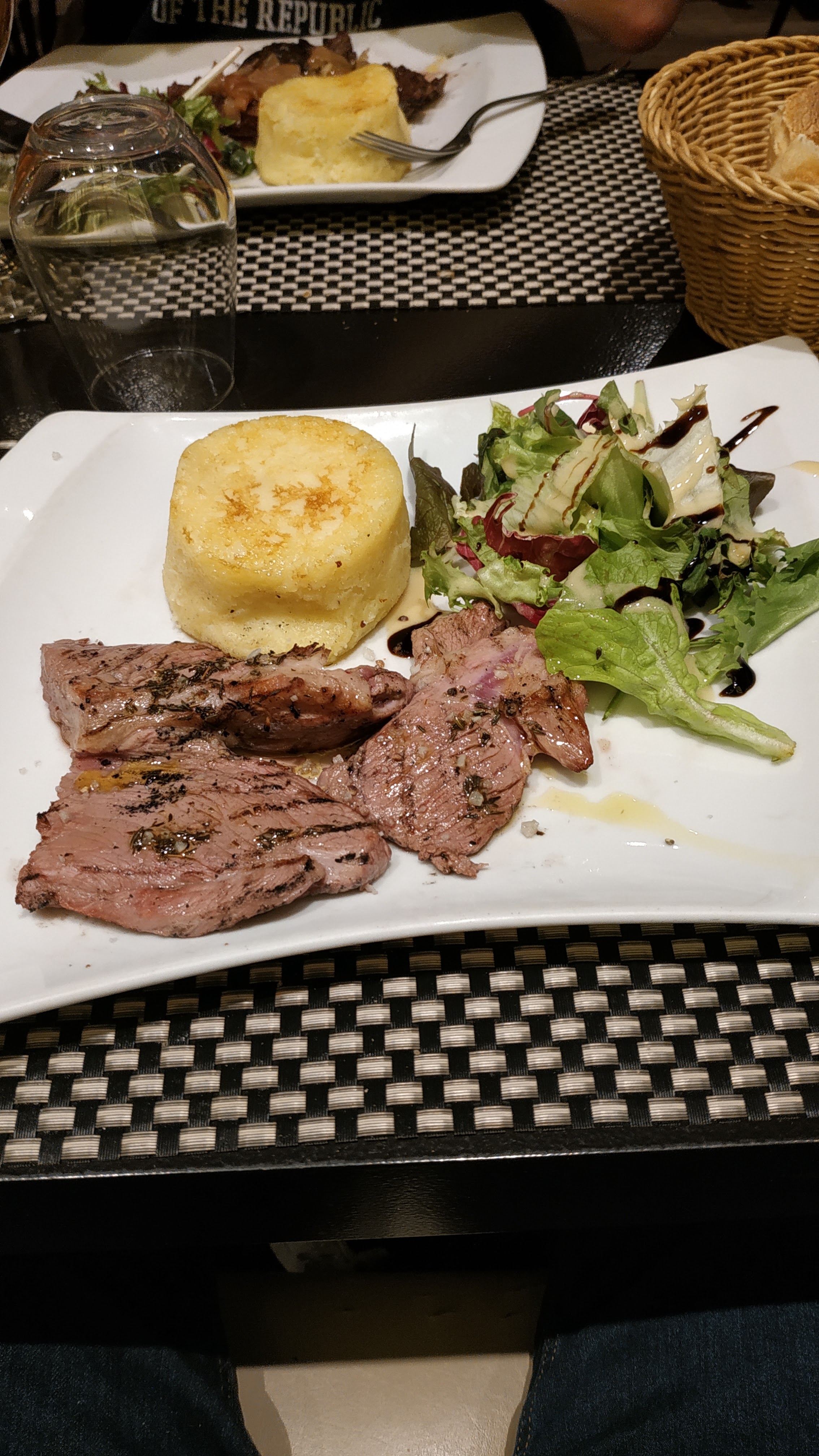 Ambiance sympathique, serveur charmant et au petit soin, repas un peu moins bien. La côte de boeuf était pas assez cuite et donc élastic et filandreuse en accompagnement la purée était acide.