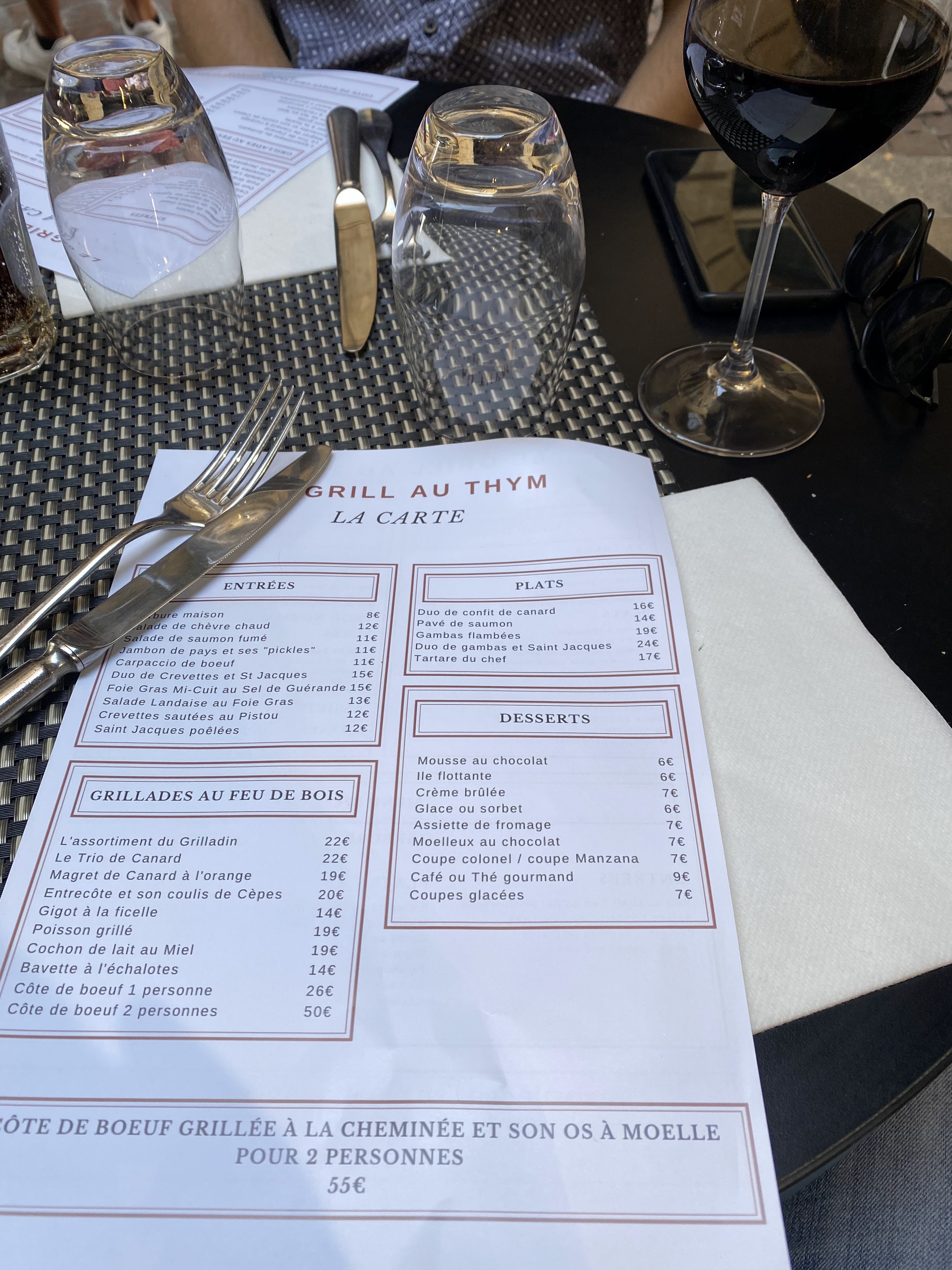 Le grill au thym est un très bon restaurant ! La qualité des produits est excellente et le restaurant est chaleureux et conviviale. J'avais pris une salade de saumon est j'ai été agréablement surprise de voir à quel point il n'était pas radin sur la quantité de saumon ! Ensuite l'agneau était une pure merveille et le dessert également ! Le seul reproche que je pourrais faire, c'est dans le cas de forte affluence, les tables sont trop rapproché les unes des autres et donc on a l'impression de manger avec des inconnus. Cela peut être idéal pour rencontrer des gens mais dans mon cas, c'était des pipelettes arrogantes. Je recommande ce restaurant pour tout fin gourmets ✌️
