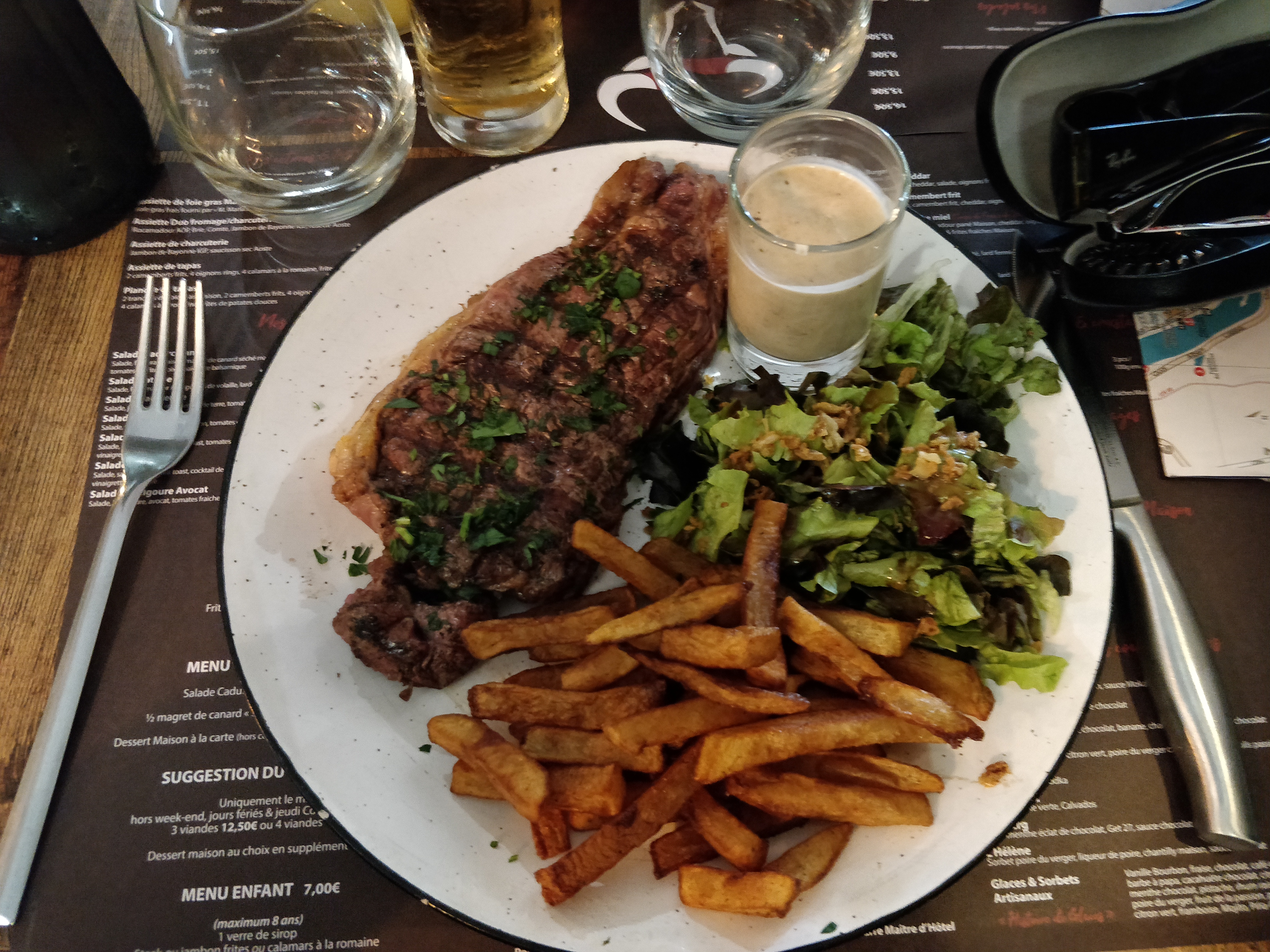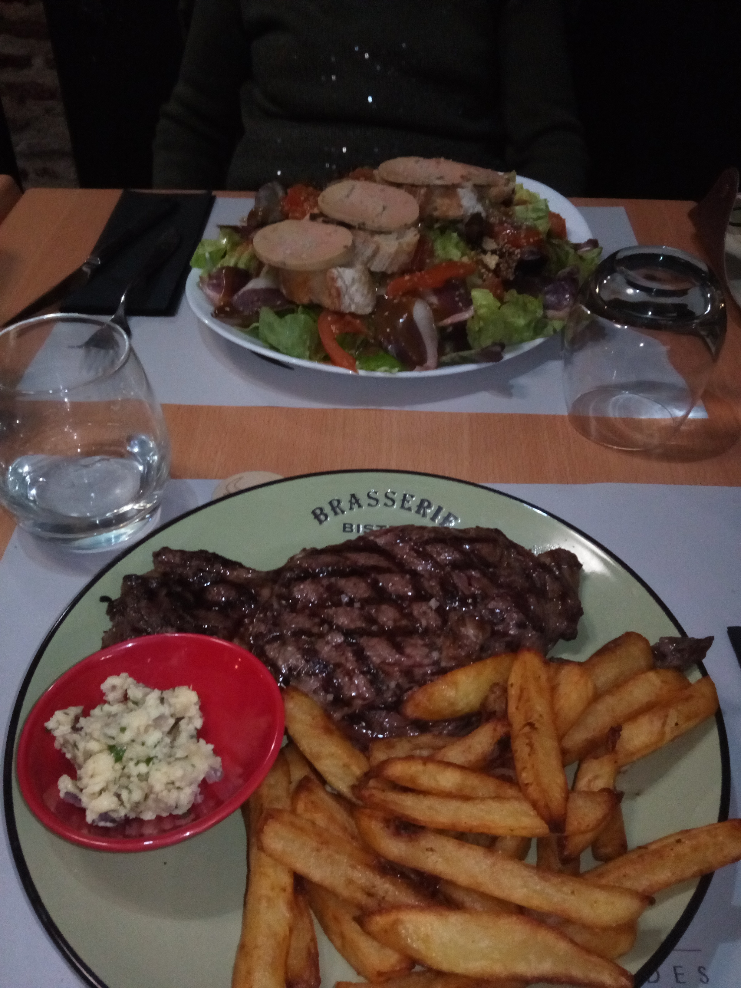 Entrecôte de 300g à point, délicieuse, frites bien chaudes et le beurre maître d'hôtel, cerise sur le gâteau. Déconseillé au régime. Mais la salade cadurcienne trop vinaigrée et fois gras fade.
