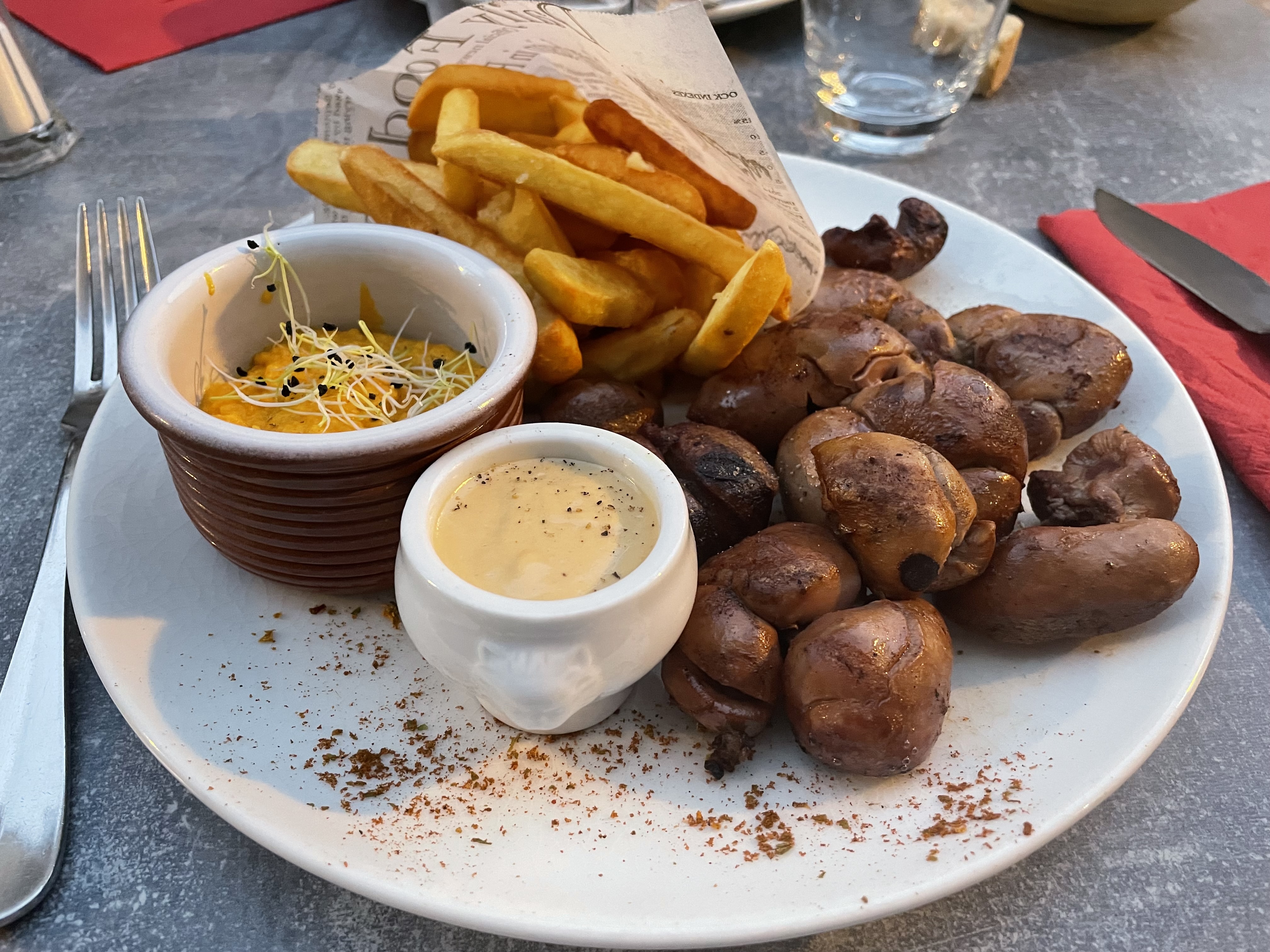 Avons adoré les œufs pochés à L’époisse Les rognons de veau était bon Mais trop copieux et aurions préféré qu’ils soient cuit dans leur sauce à la moutarde Sinon excellent à tt point de vue