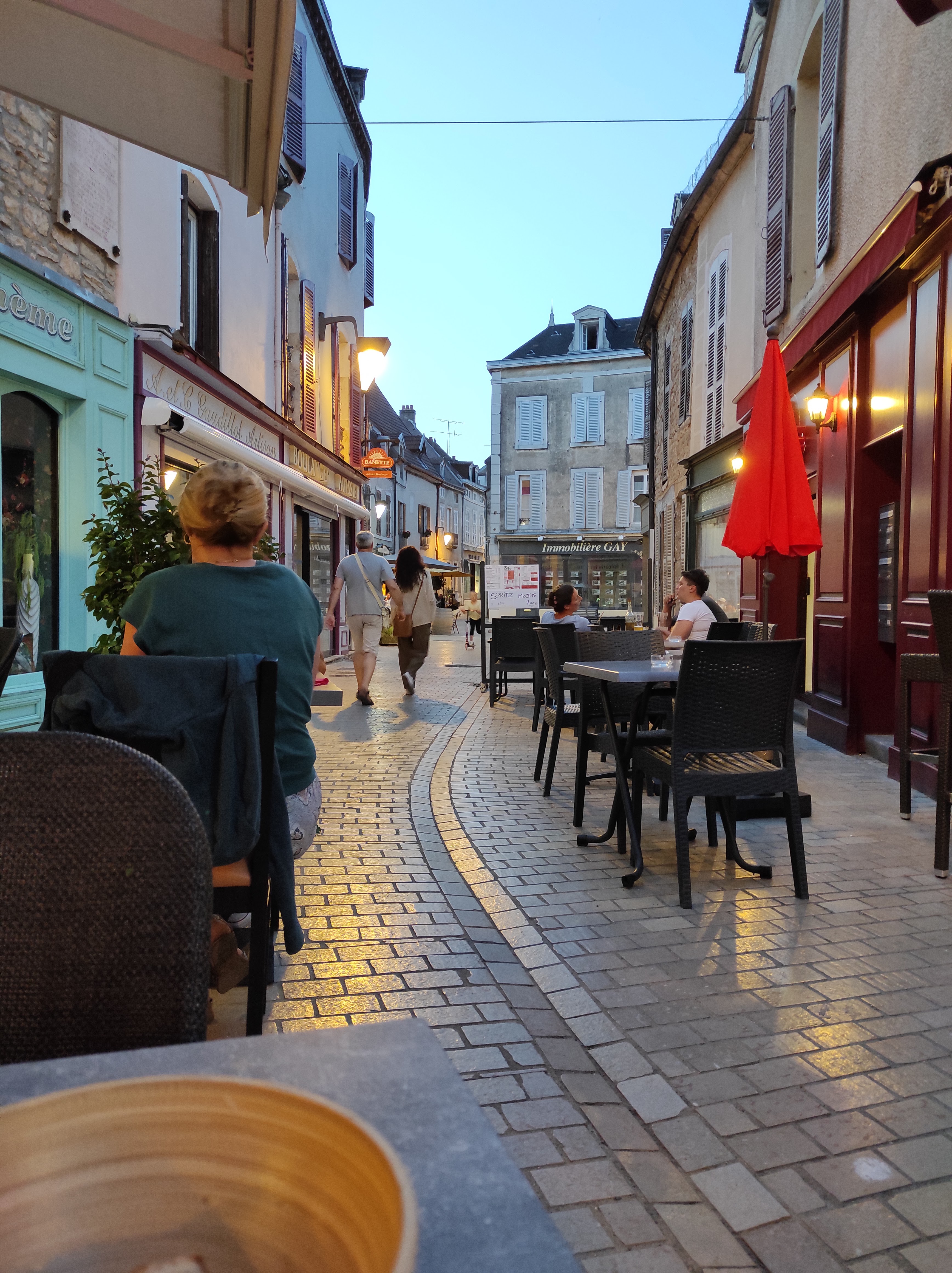 J'ai eu le foie gras de canard, suivi du bœuf bourginon et de la crème brûlée. Selon les standards bourguignons, c'est probablement un repas très ennuyeux mais pour moi c'était exquis. La nourriture était parfaite. La salade, les toasts et la marmelade d'oignons complétaient à merveille le foie gras. Le bœuf tomba en morceaux, la sauce riche et les pommes de terre fermes et moelleuses. Le vin local avec la nourriture locale est toujours gagnant.