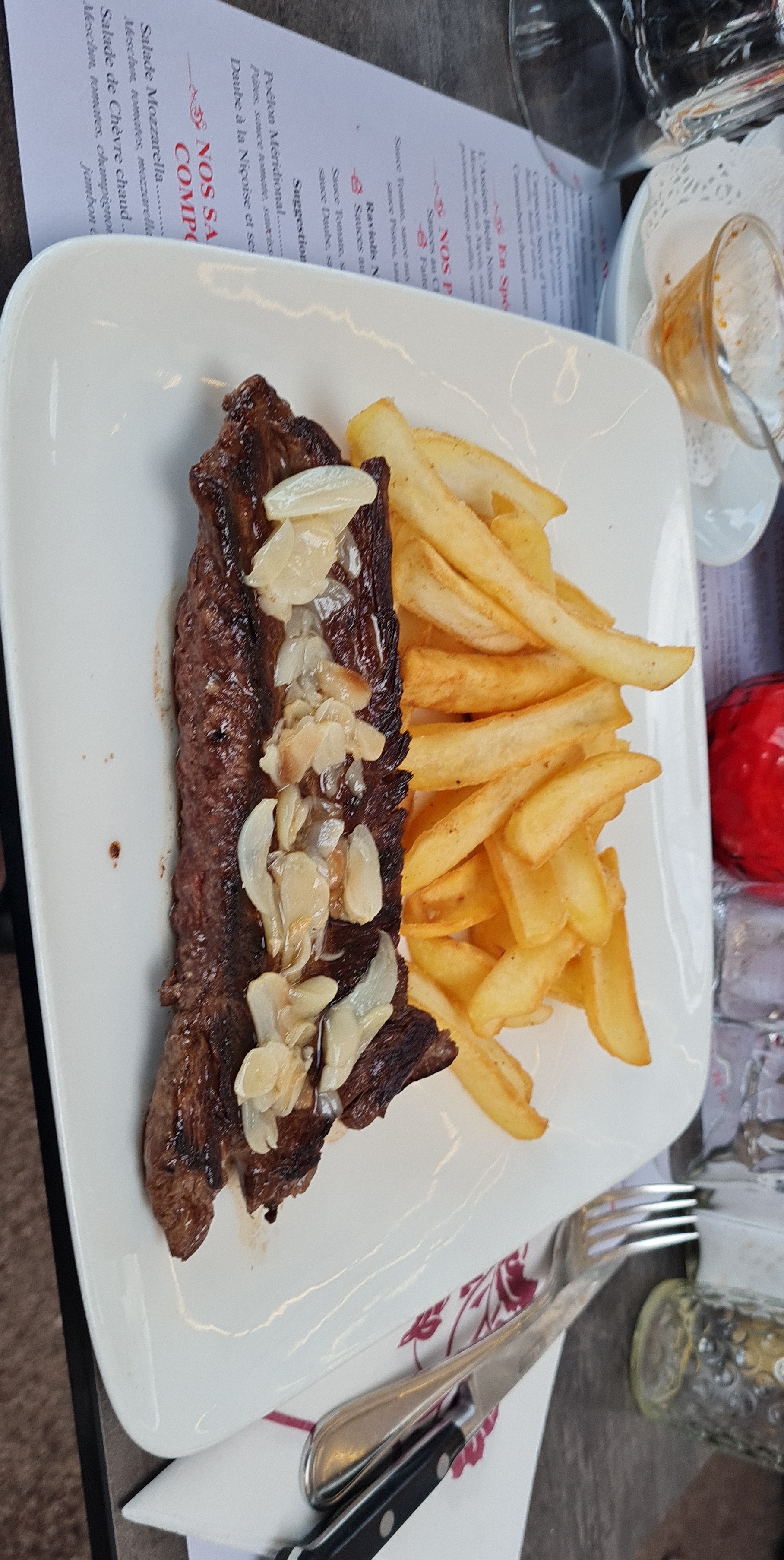 Super restaurant avec un vrai couteau a viande pour ce régaler.