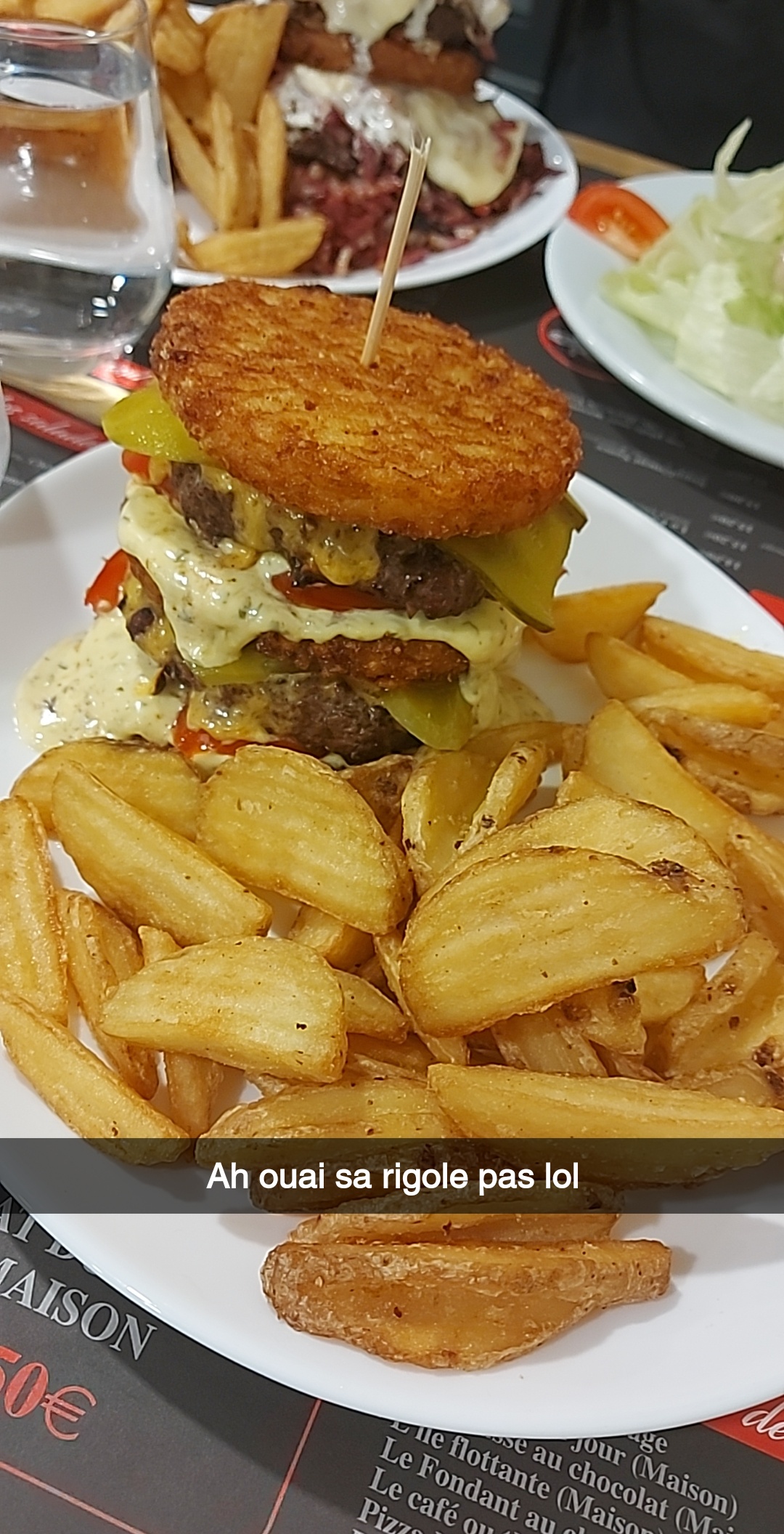Une première pour nous et on a adoré...en effet très bonne portion... c est clair on y retournera...Je recommande à fond (le seul mini soucis c est que sur la carte le détail du double cheese n est pas complet il donnait troooop envie mais j aime pas les tomates et la sauce béarnaise)