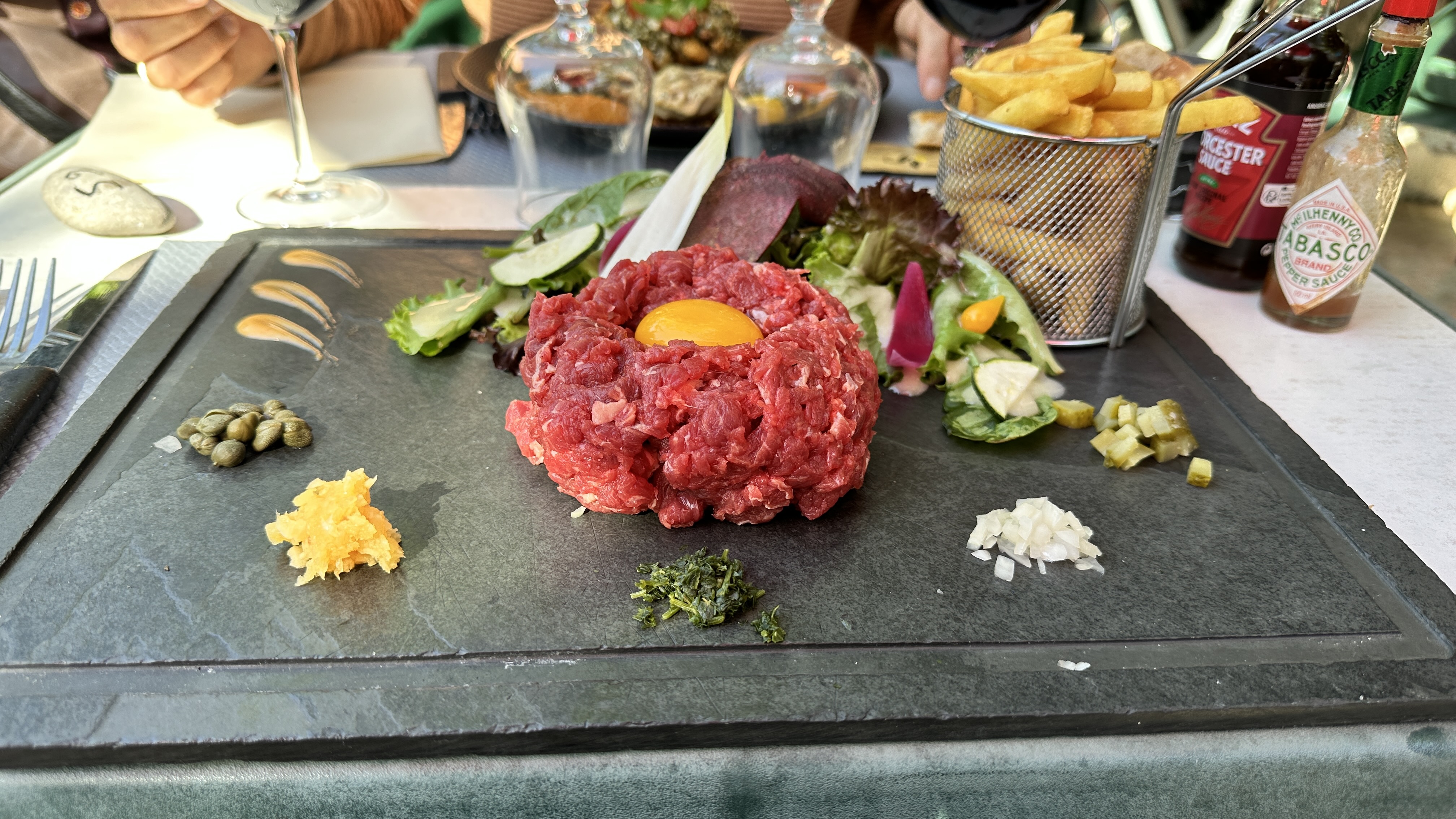 Très bon repas même si manque de fraîcheur pour tartare Extérieur super agréable Très bonne soirée