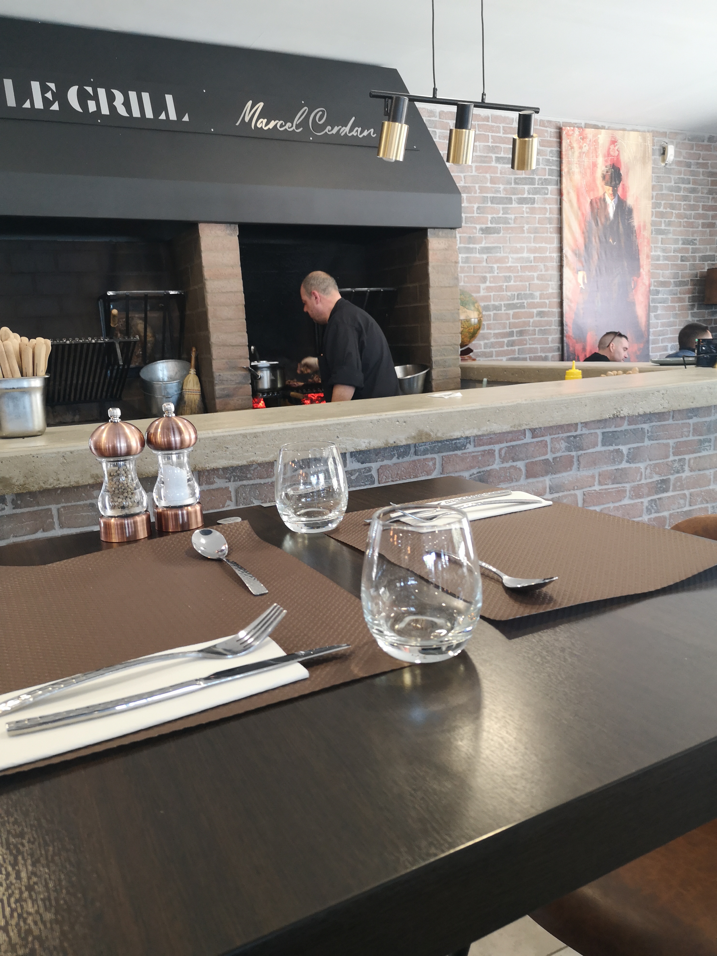 Manu ,le patron vous accueillera avec son enthousiasme habituel pour vous faire déguster sa magnifique carte et en particulier ses grillades dont s'occupe un maître grilladin de haut niveau. Au grill Marcel Cerdan, vous vous régalerez dans l'assiette et vous serez servi par efficacement avec le sourire par une brigade à votre écoute . Je vous recommande le Grill Marcel Cerdan.