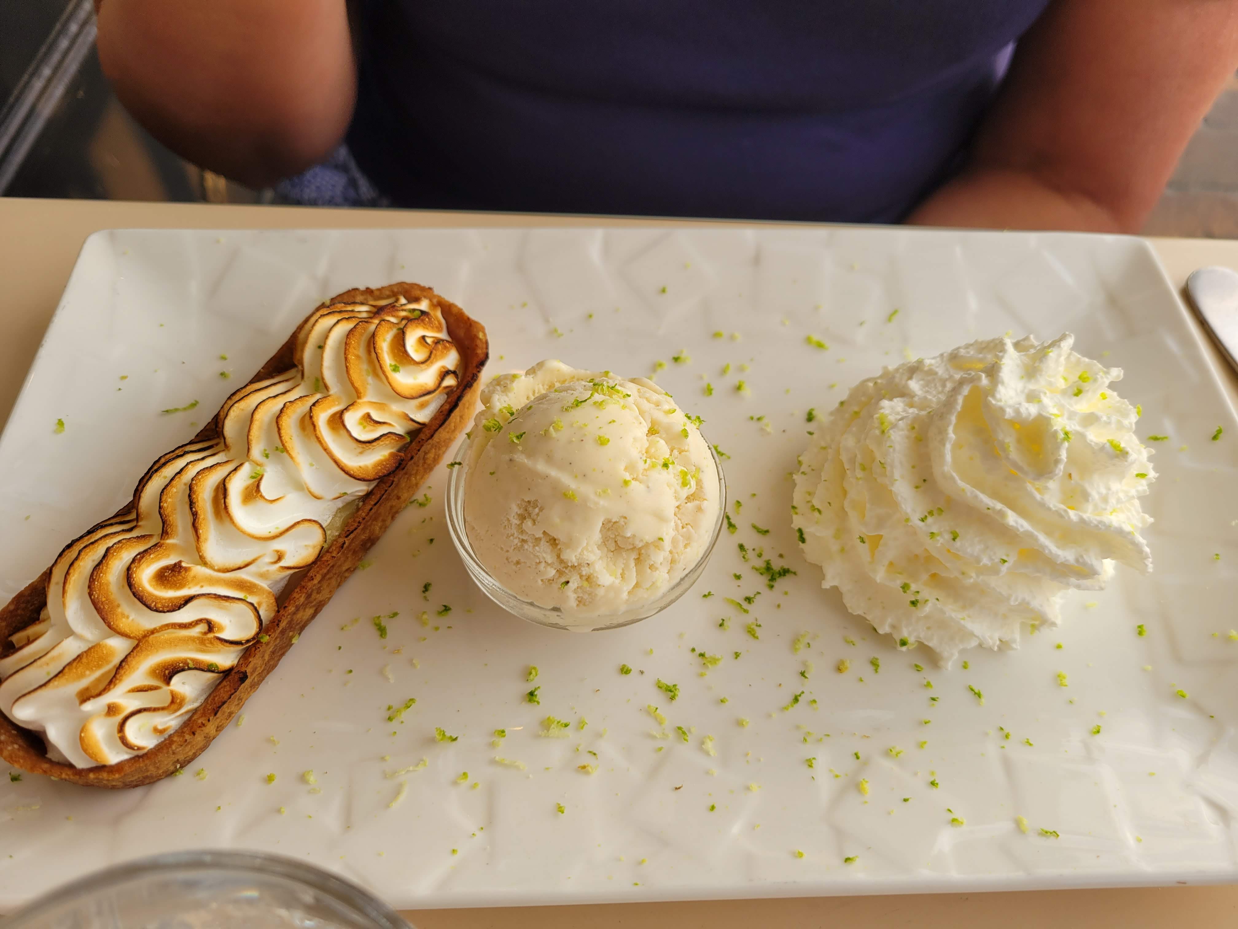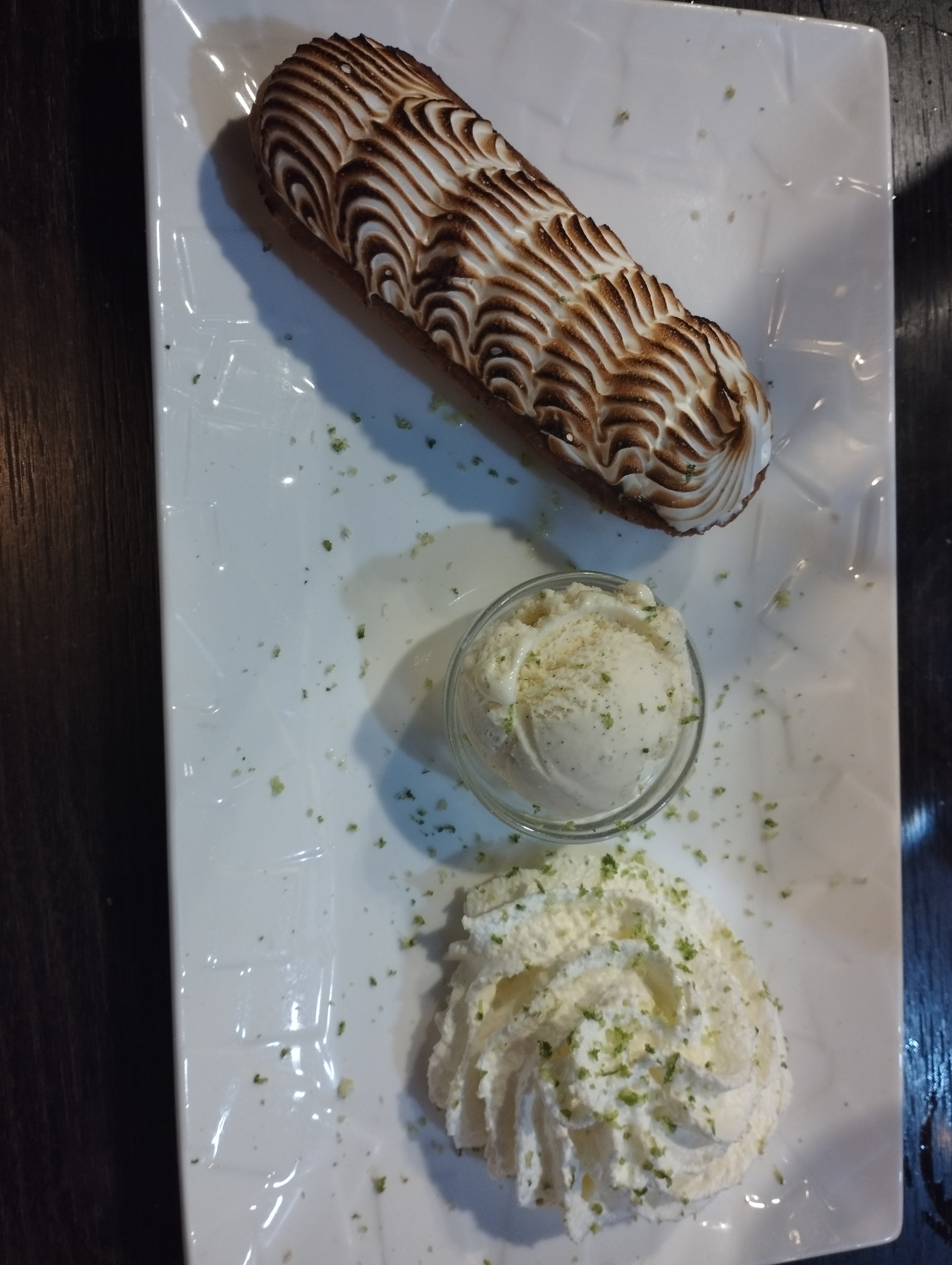 Très décevant onglet très dur pas de sauce avec la viande échalottes aucun goût et moi cuisse de canard sous vides sauce de cuisson frite bof .quand a la glace ,8,5 euros pour deux boules de glaces et un peu de rhum ,c est abusé et ça s appelle une coupe des îles ,même pas de chantilly rien .autant prendre deux boules de glace pour 4 e
