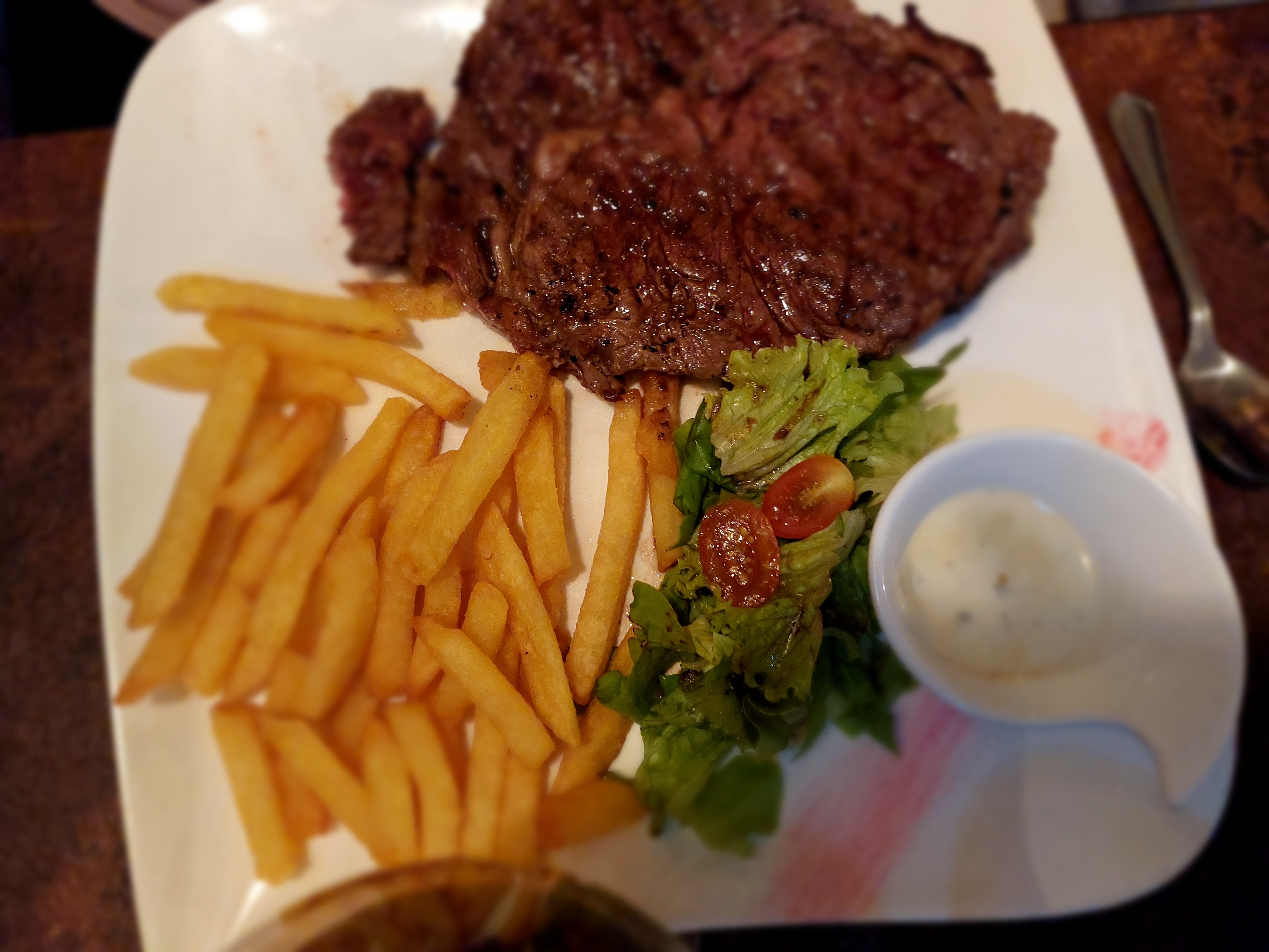 Un régal , viande de bœuf succulente avec une bonne sauce béarnaise et pomme de terre maison et le dessert A refaire , y aller les yeux fermer Patron très gentil offre le digestif maison très bon