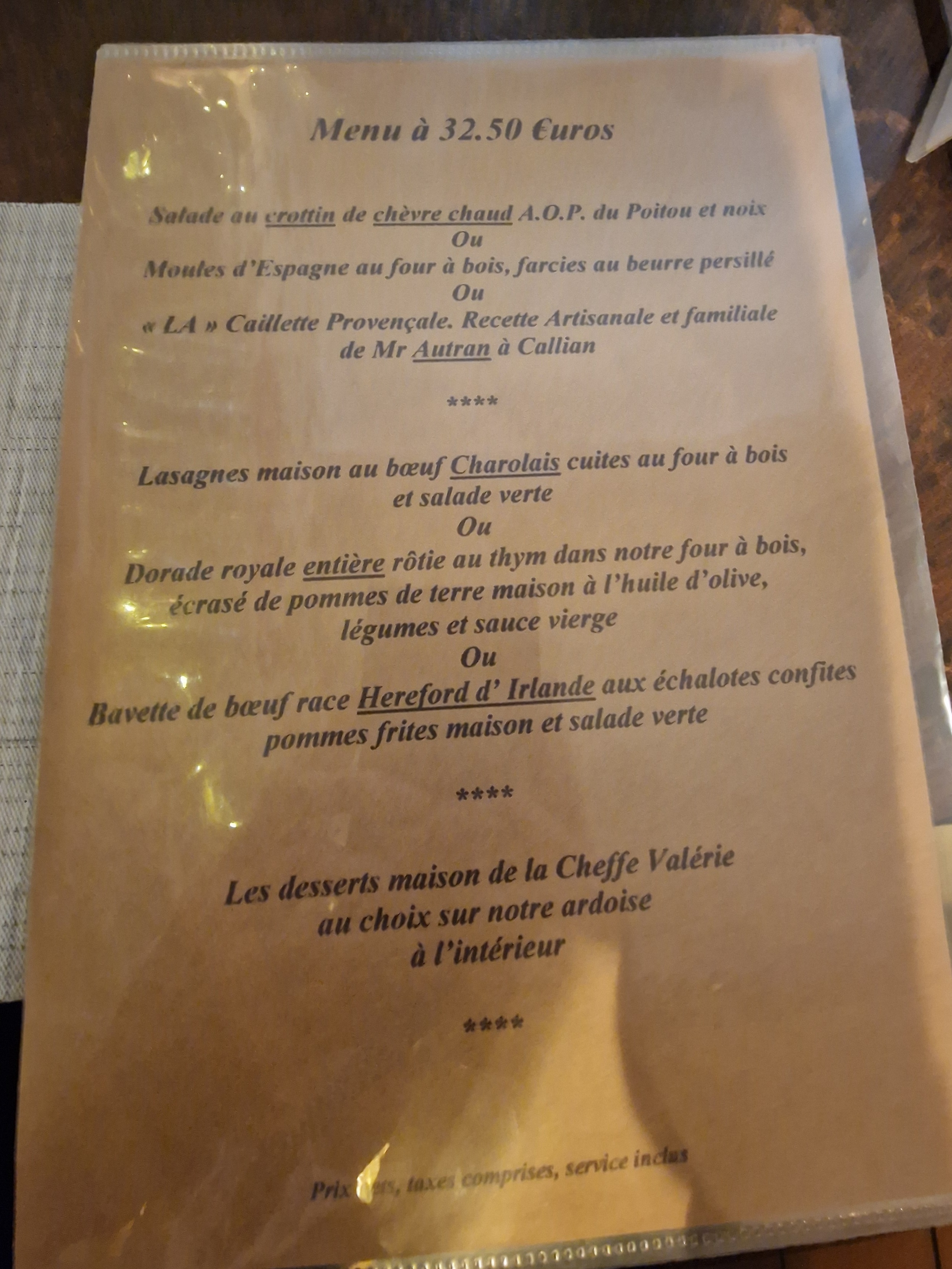 Un restaurant authentique avec des produits de qualité, comme les fameuses andouillettes de chez Autran, boucher-charcutier à Callian, un must. Oubliez les andouillettes industrielles, là c'est du top niveau. Plusieurs plats cuits au feu de bois. Le menu est très compétitif compte tenu de la qualité des produits qu'on vous sert. Le camembert normand aux truffes cuit au feu de bois est top. Belle selection de vins. Et pour les amateurs de rhums arrangés vous avez de quoi vous faire plaisir avec des rhums maison à déguster ... avec modération 🙄 Je recommande le rhum bananes flambées il est incroyable. Seul petit bémol concernant les pizzas, il y a de meilleures adresses à Saint-Raphaël, mais bon il y a plein d'autres supers plats pour se régaler.