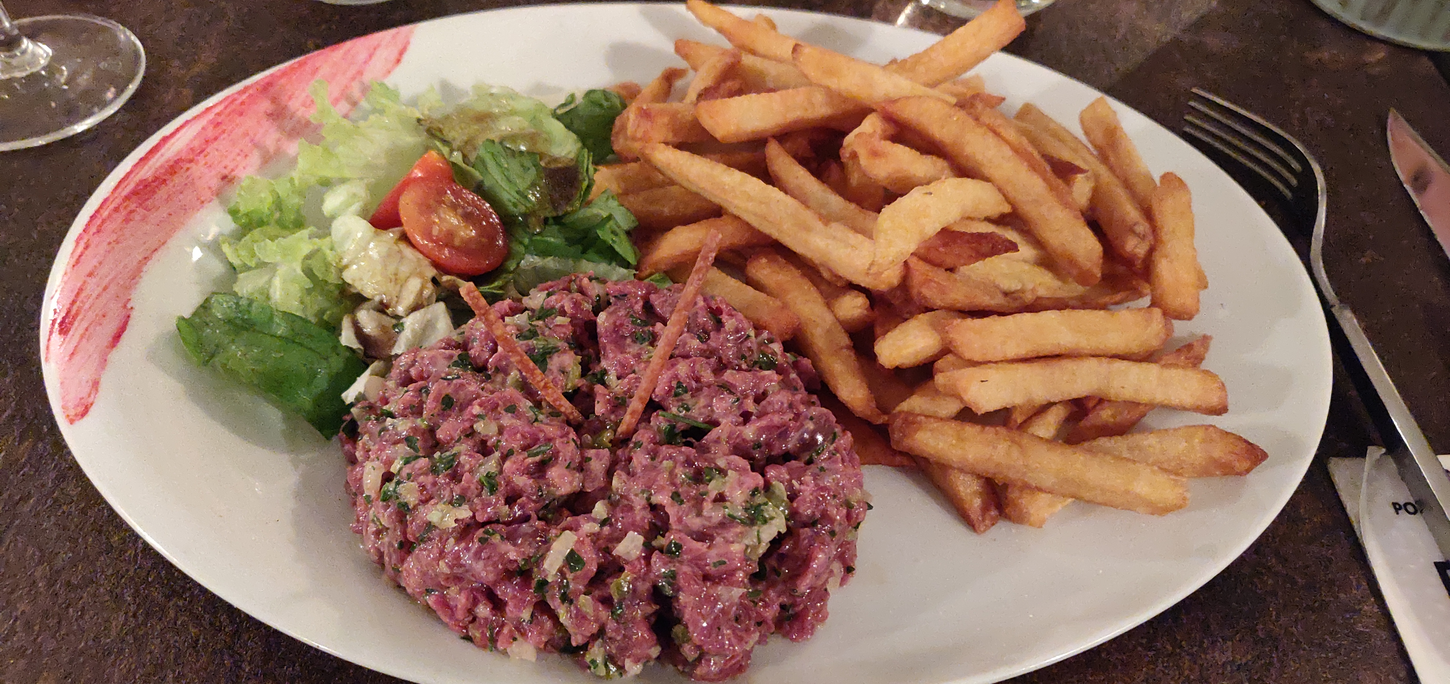 Ayant préalablement repéré ce restaurant au vue des critique assez favorable a son égard nous avons réservé une table ma compagne et moi. Le patron/serveur nous a accueillit très agréablement. L'établissement n'est pas très grand et ne paye pas de mine mais quel ne fut pas notre surprise au moment de gouter nos plats respectif (entrecote pour moi et tartare de boeuf pour madame). N'étant pas très fan de tartare je le trouva excellent et que dire de l'entrecôte juste parfaite. Les desserts quant à eux suivi le même schéma et fut eux aussi délicieux (tarte tatin et moelleux 2 chocolats). Pour finir ce repas le propriétaire ne nous a pas proposer un digestif mais deux ! La encore délicieux mais attention au taux d'alcoolémie a la sortie ! Bref très bonne expérience nous y retourneront c'est garanti.