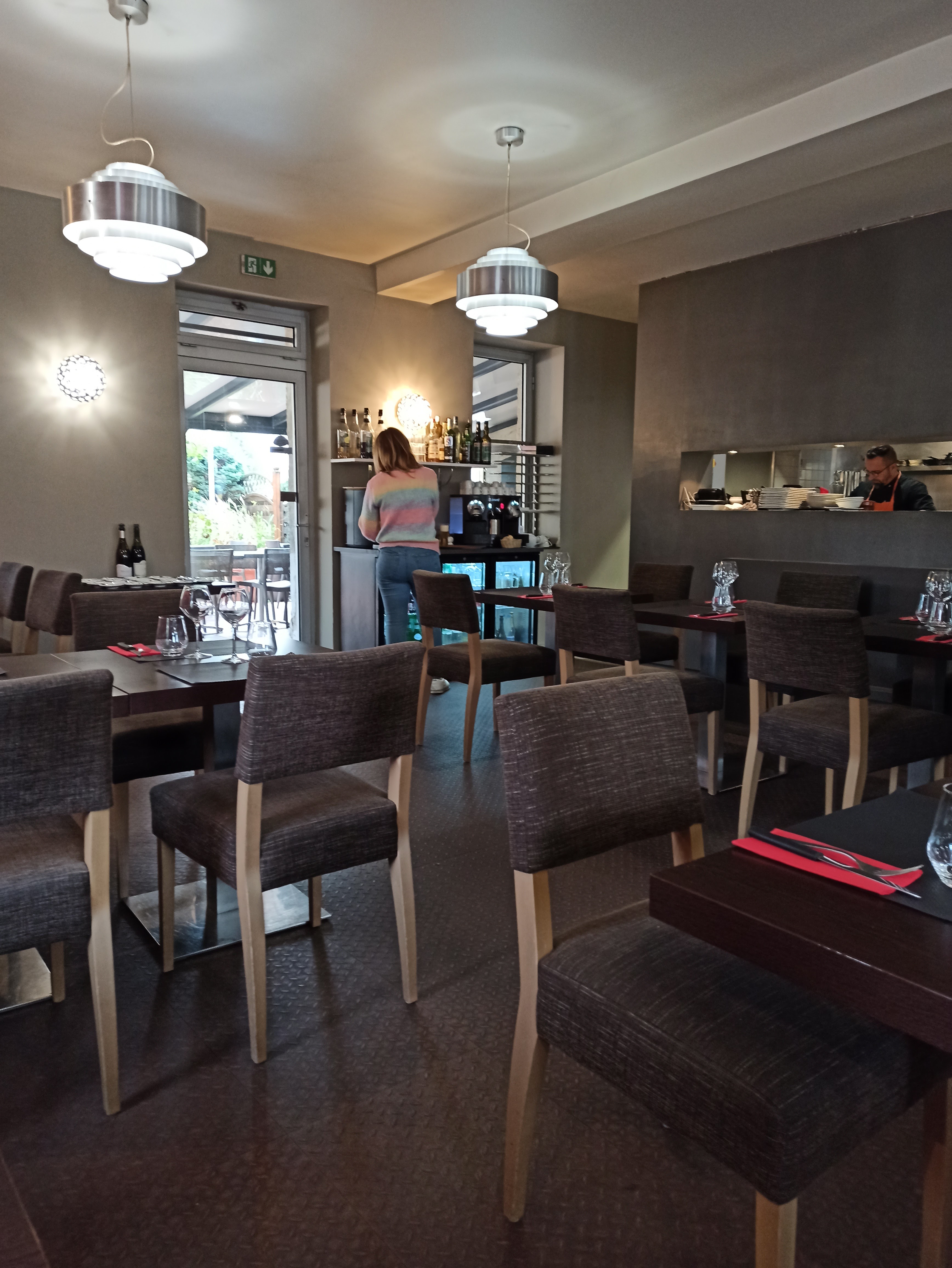 Salle refaite à neuf, cadre moderne bien agréable. Oui, on y mange bien, mais c'est cher ! Encore un restau qui s'est mis à cette nouvelle mode selon laquelle on n'épluche plus les légumes. C'est très désagréable et quand on sait la quantité de produits chimiques qu'il y a sur la peau des légumes... Évidemment, ça fait moins de travail en cuisine.