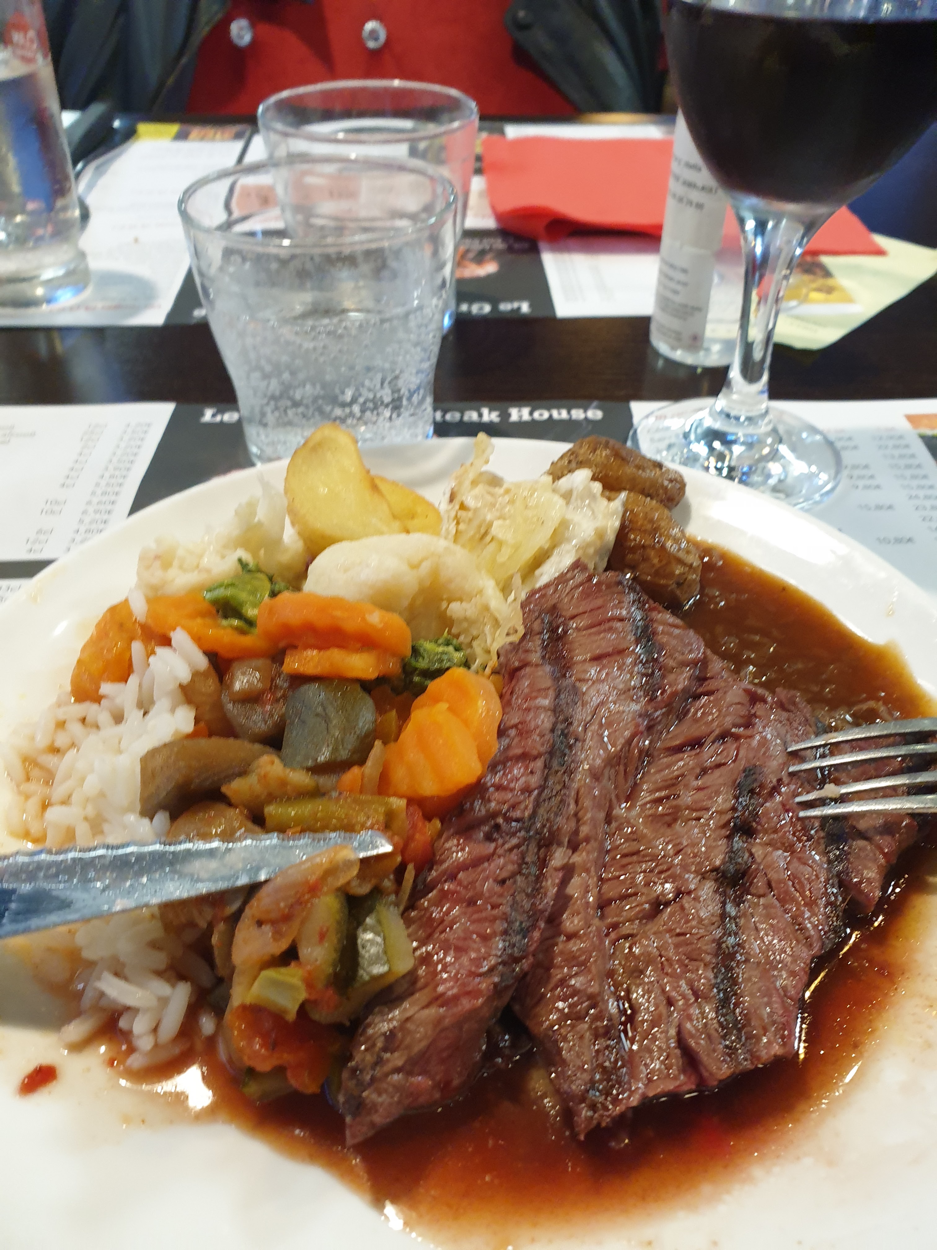 L'onglet était excellent. Le reste... Je mangeais mieux a la cantine. Les fritures et le buffet chaud étaient froids. L'ensemble du buffet était fade. Pour le prix, nous nous attendions à mieux. Un Flunch nous aurait plus satisfait.