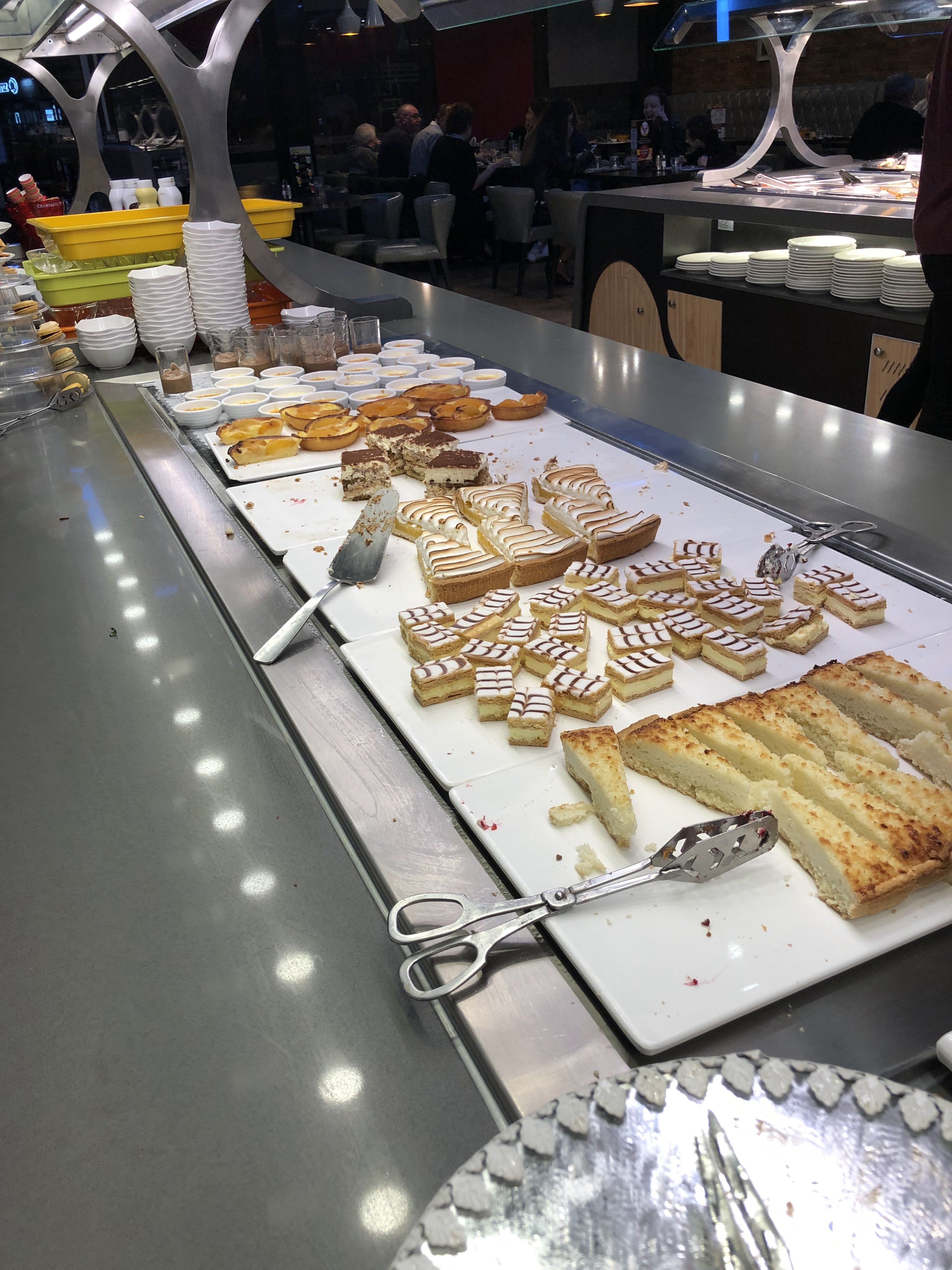 Vraiment déçue de ma visite ce 23 mars 2024. Large choix de tout mais au détriment de la qualité, des assiettes et couverts sales, des plats avec un goût douteux (brochette avec un goût de bleu, ce n'est pas censé mijoté dans du fromage quand il s'agit d'une brochette de bœuf teryaki), pizza avec des bords de croûtes suspect s'apparentant à de la moisissure) et les desserts, une catastrophe, une crème brûlée qui baignée dans son jus, un Paris Brest dont la crème praliné a changé de couleur à différent endroit (attestant du vieillissement du produit) mais en fait pourquoi servir vos invendus sur les services suivants ... Je ne parle même pas des bugnes et des cannelés qui ont semble-t-il 2 semaines. Une explication serait intéressante sur la gestion de vos stocks ... Je ne reviendrais pas et je déconseille cette adresse.