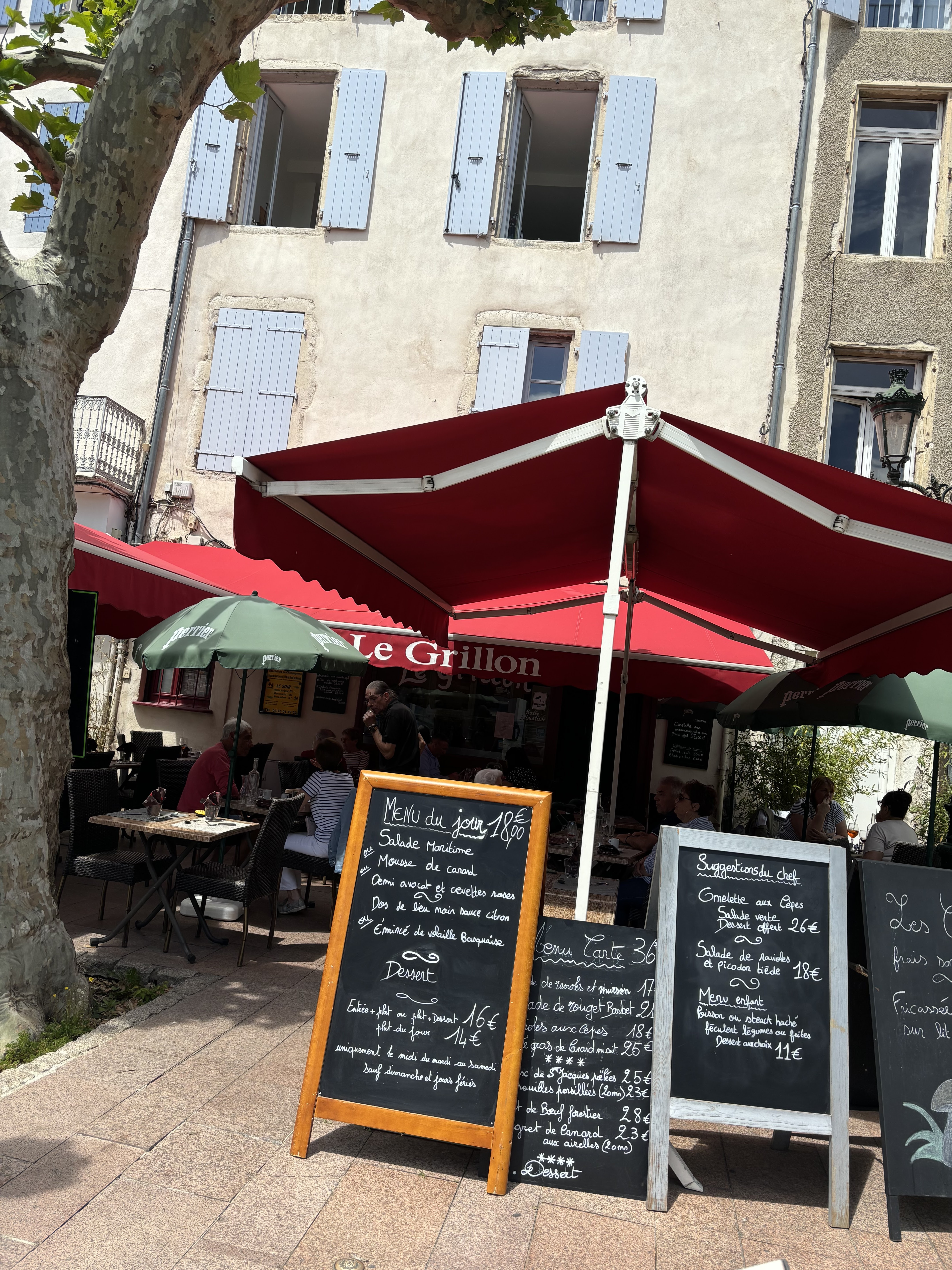 Je reviens du Grillon, restaurant très accueillant dont le personnel chaleureux nous a servi un délicieux déjeuner pour un prix tout a fait abordable : - Salade de cèpes pelés, foie gras mi cuit, magret fumé, - Magret de canard aux cèpes, - Fondant au chocolat, - Café, - Un vieilles vignes 2015. D'autres plats tout aussi fins sont proposés à la carte. Je vous recommande cette adresse (pour laquelle je n'ai aucune action). Bonne appétit.