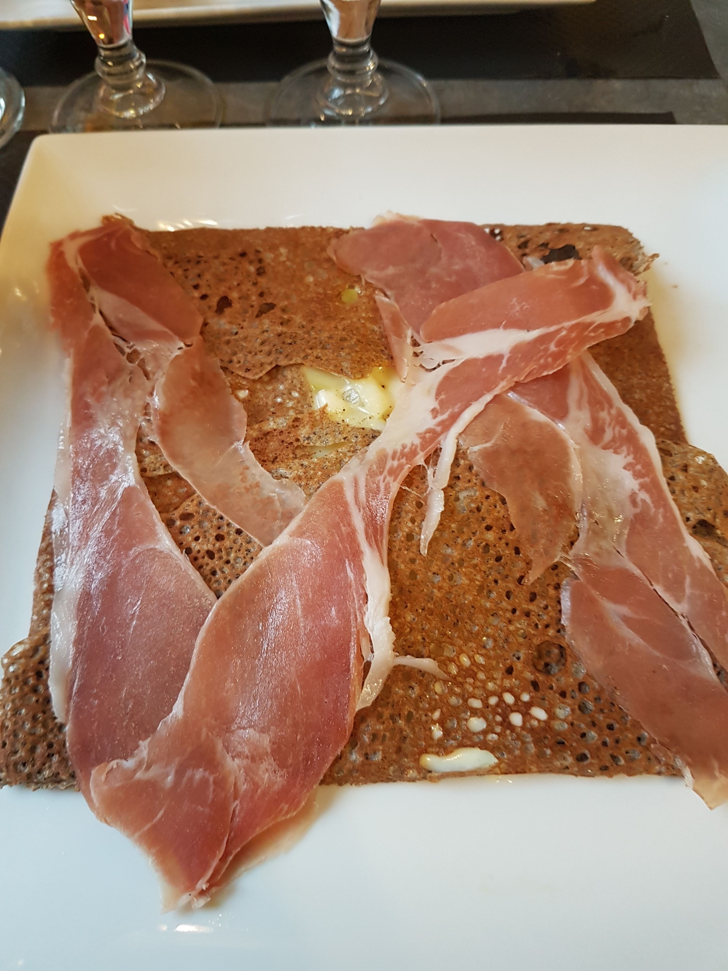 Nous avons terminé notre premier voyage en motohome en France par un repas dans ce charmant restaurant. Il y avait beaucoup de monde pour un mardi soir en début de saison morte. Ils ont été extrêmement patients et amicaux avec nos tentatives de parler français. Nous avions des Gallettes, le mien était du saumon, des œufs, des champignons, du fromage à la tomate et de la crème fraîche et mon mari avait du jambon et comme ci-dessus, les deux étaient savoureux, frais et chauds. Nous avons tous les deux pris un dessert, une crêpe au miel local et une crème brûlée. plus une bouteille de Rose coûtait 70 €. Les toilettes étaient très propres, du savon et du papier disponibles, ce n'est pas quelque chose que nous avons trouvé partout.