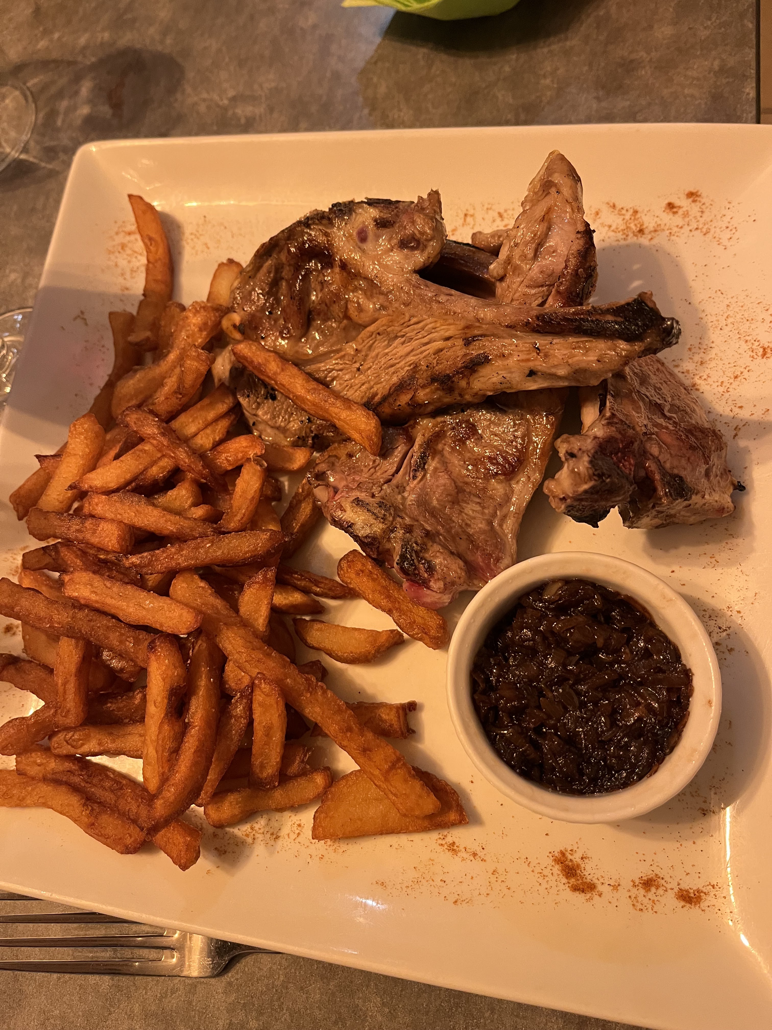 Nous avons très bien mangé ici hier soir. Nous avons pris un repas chez Trip Advisors n°1 la veille, c'était bien mieux. Service super nourriture géniale. Il y avait un menu fixe 3 plats à 23 €, bon rapport qualité-prix. Nous y sommes allés tôt à 19 heures, la plupart des tables étaient réservées à 20 heures. Ils ont dû refouler au moins 20 personnes. Je dirais donc de réserver si vous le pouvez. Je dois ajouter que j'ai mangé un steak, c'était le meilleur repas que j'ai pris en 3 semaines.