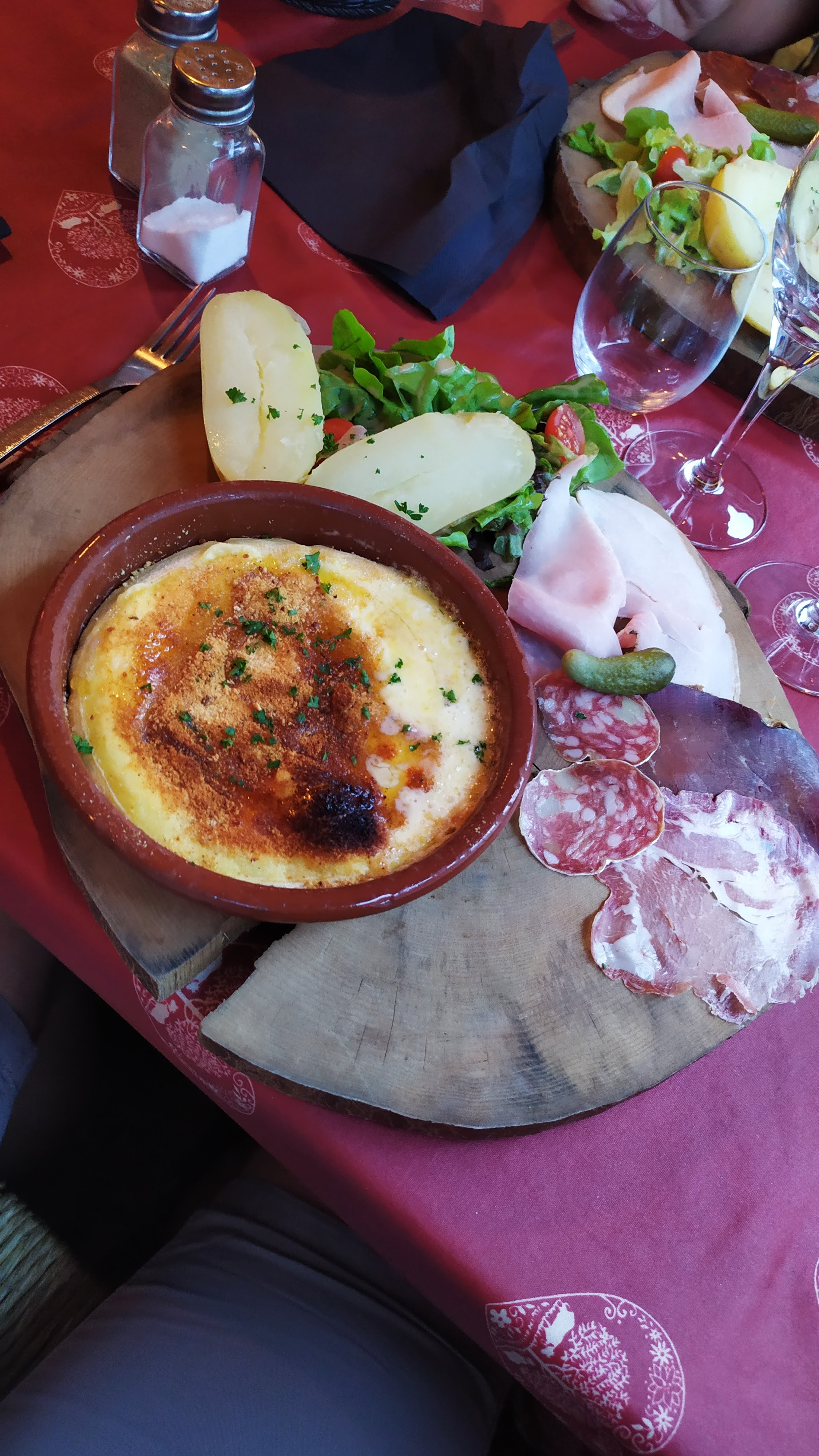 Nous étions un petit groupe qui avons pris différentes choses, fondue aux cèpes tartiflette reblochon pané au miel tout a été parfait. Nous avons passé un bon moment.