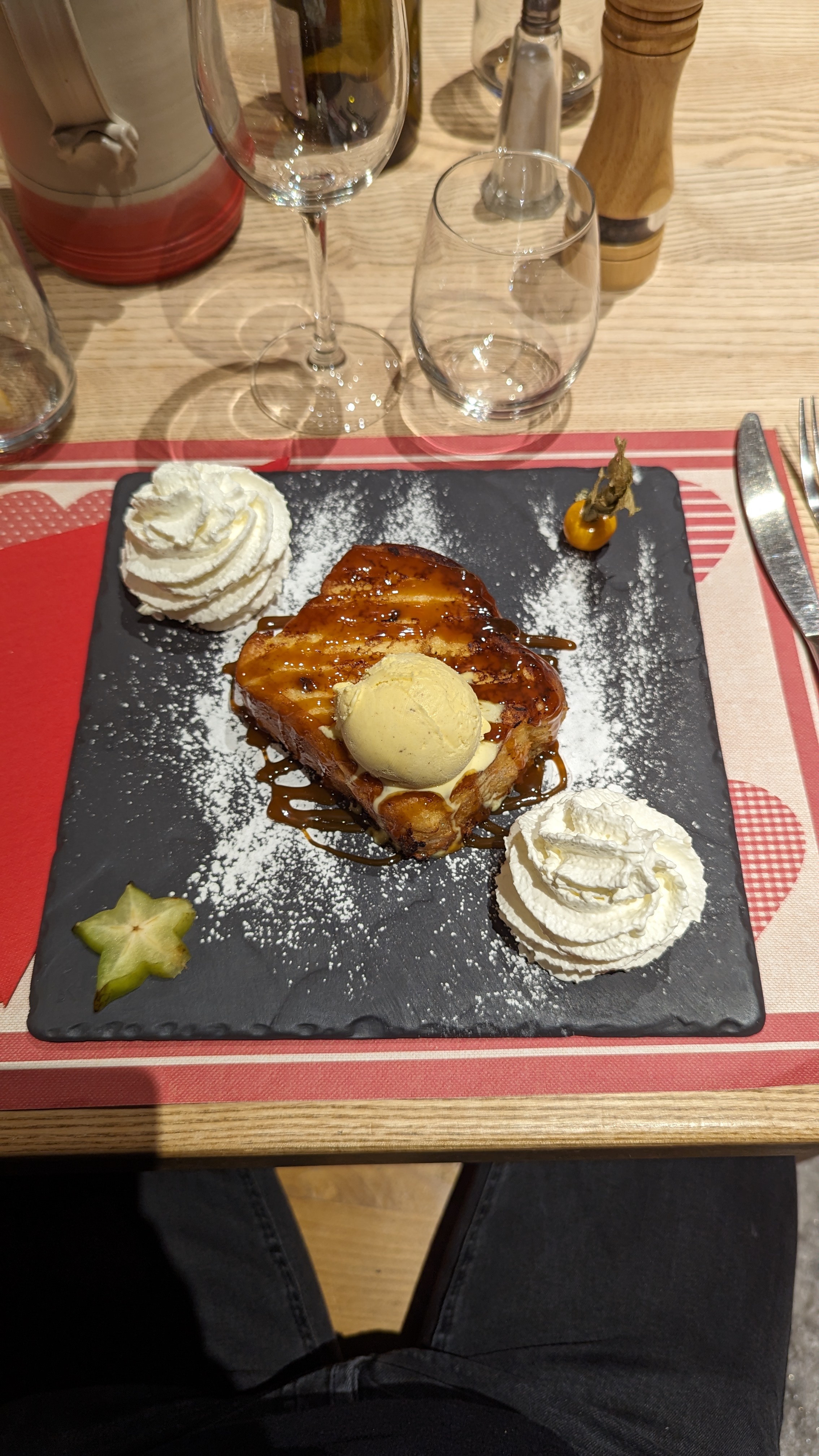 Endroit super sympa tant l'accueil, les plats, la déco On a passé une superbe soirée Venus à 13 personnes 😉. Le serveur Jean Charles 🤣 très sympathique et oui tu as raison le gras c'est la vie 🤪. Merci pour le génépi . On sera obligé de revenir quand nous serons dans la région. Bonne continuation. Les bronzés Normands.