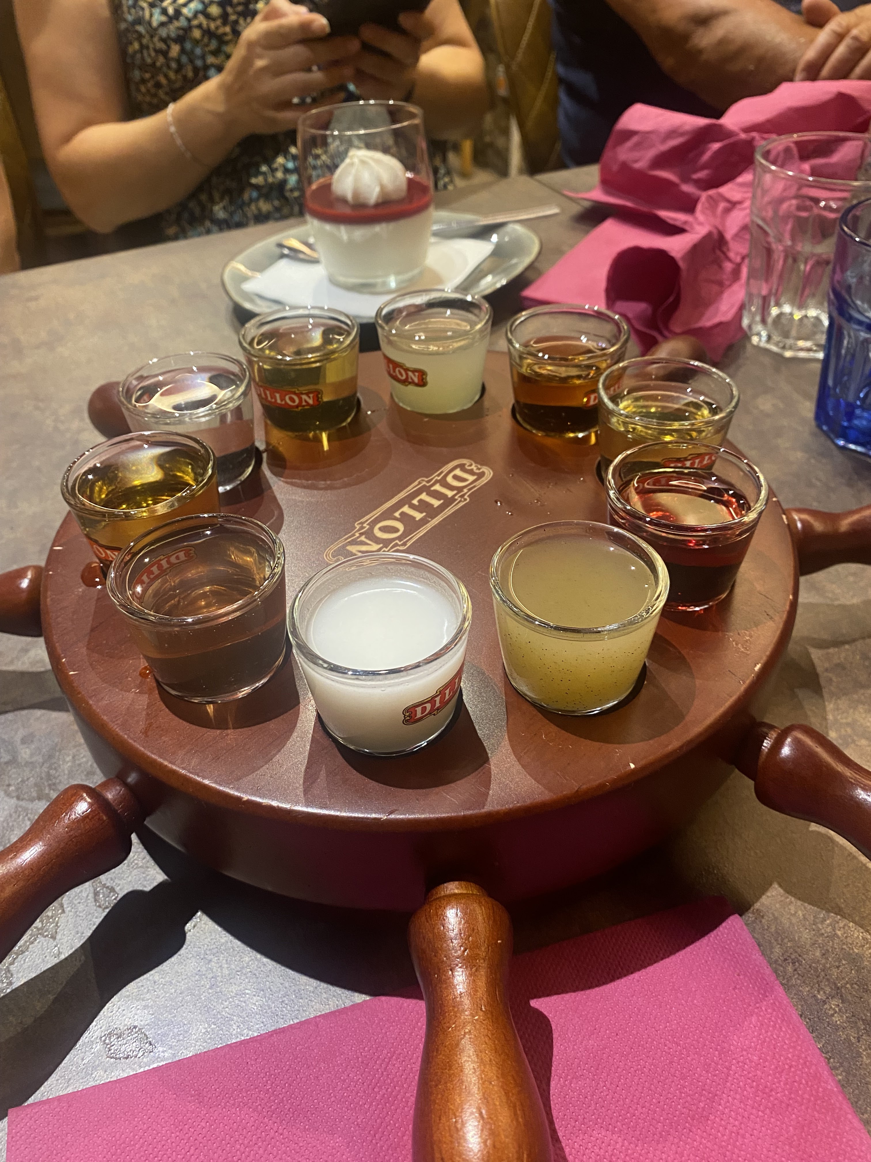 Flamenkuche au fromage de chèvre excellente ! Un grand choix de rhum