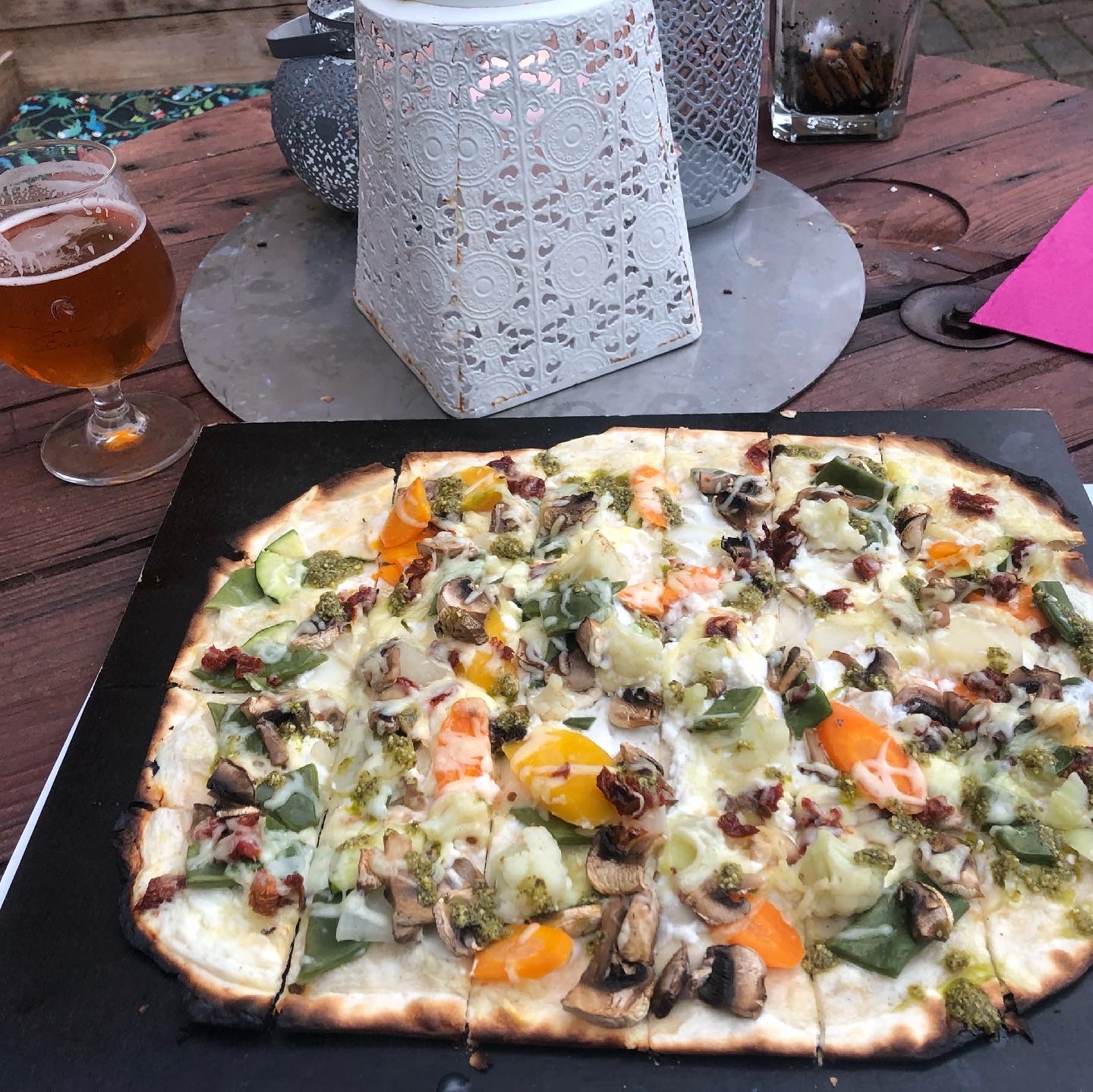 Grosse surprise ! Accueil et cadre très chaleureux ! Enfin un restaurant qui propose une tarte flambée végétarienne ! La pâte, la crème fraîche et le choix des légumes sont excellents ! La bière IPA Artisanale est excellente aussi ! 😋