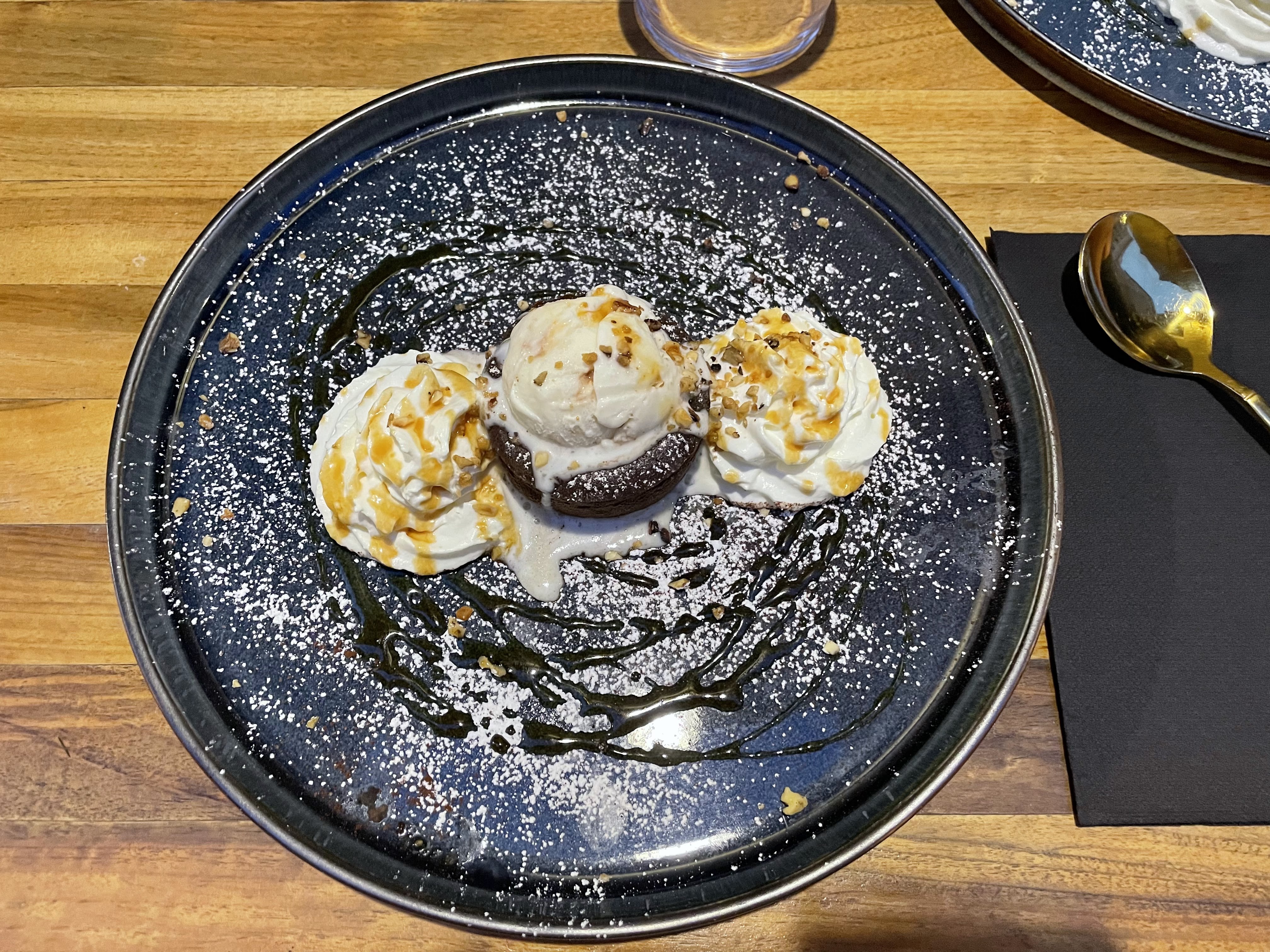 Très bon moment passé au restaurant, les serveurs sont sympa et présentes bien les plat. Niveau goût, très agréablement surpris par le burger qui était vraiment excellent, le poulet était vraiment succulent. Et le moelleux Seul petit bémol sur les apéritifs qui ont mis beaucoup de temps à arriver, sûrement dû au fait que nous sommes arrivés en 2 vagues à la table. Mais ils étaient vraiment délicieux ! Merci pour ce repas !