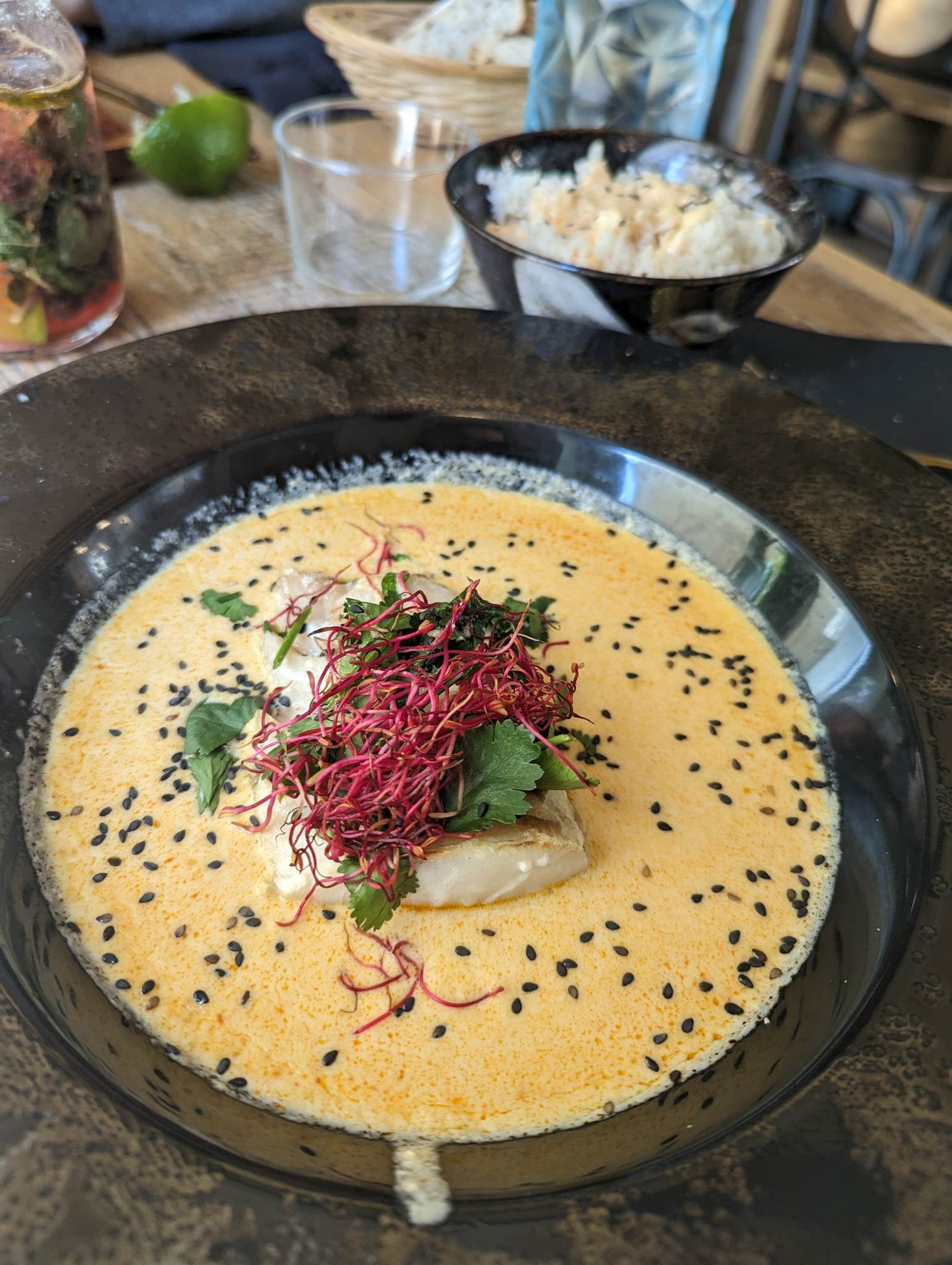 Le Montpellier-Bangkok, un dééliiice 🥰 les tempuras de crevettes baignent dans la soupe coco, gingembre ....mais restent exceptionnellement croustillantes. Un goût extras. Pour les autres mets, mes amis ont adoré. Seule petite critique, souvent les plats étaient trop salés ce qui gachait les saveurs derrière...nous l'avons signalé et j'espère que le chef va en tenir compte. À refaire 👍