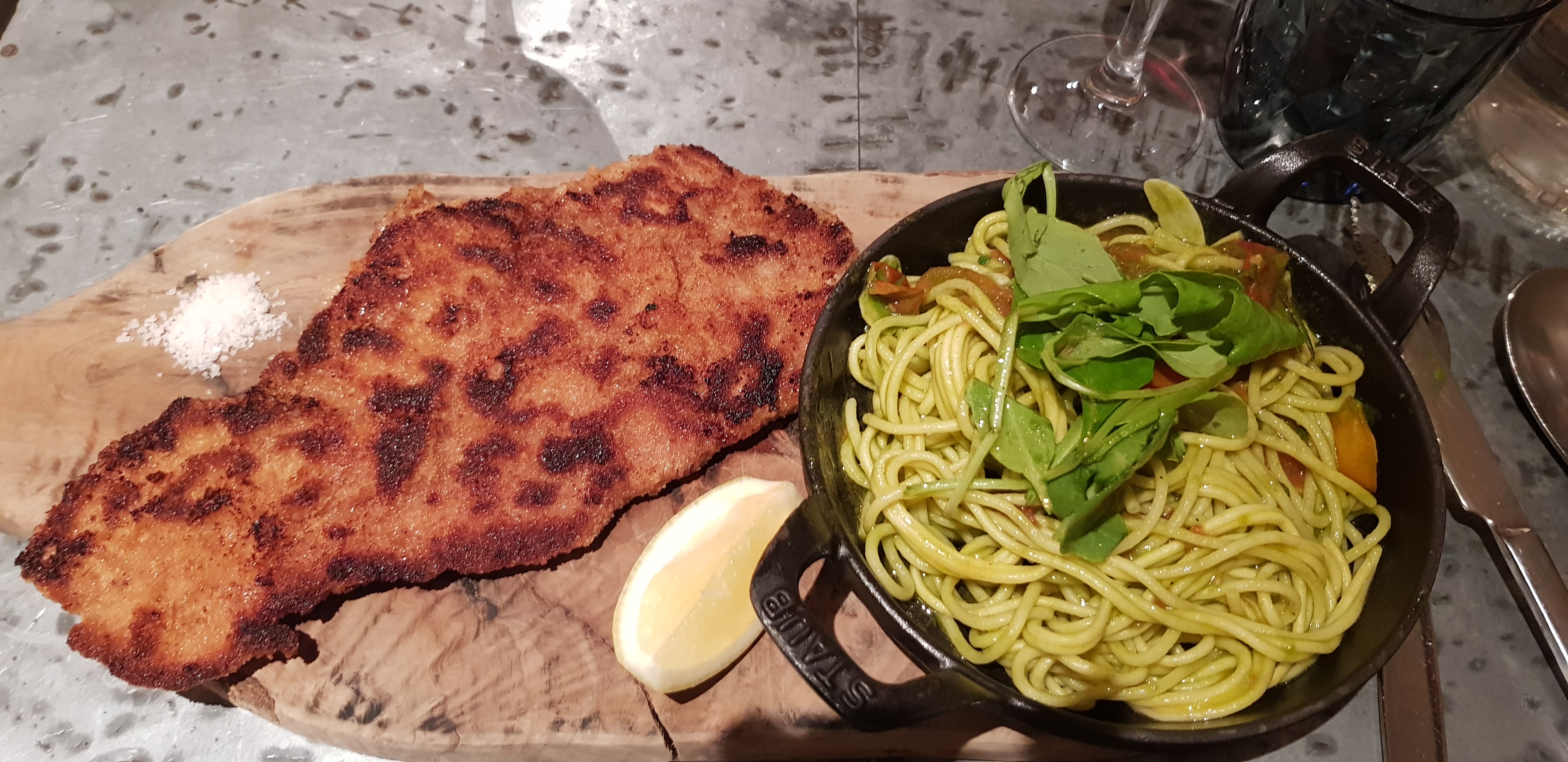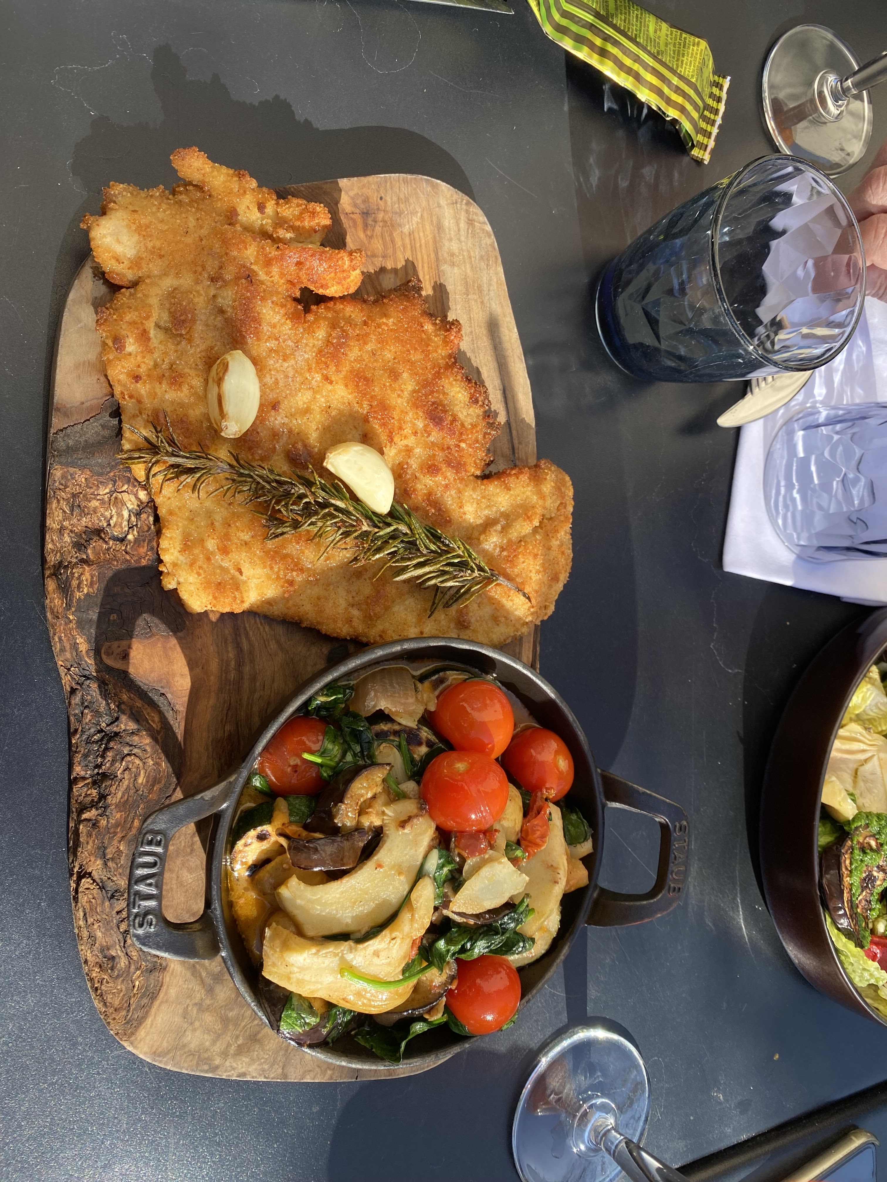 Déçu apres avoir vu les commentaires. On pensais mais bon pourtant resto plein mais sur notre planche a partager .les olives absentes les fromages italiens aussis seul un cabecou ,donc cela nous a Déçu. Après la milanaise était bonne .etle cocktail on cherche encore le rhum