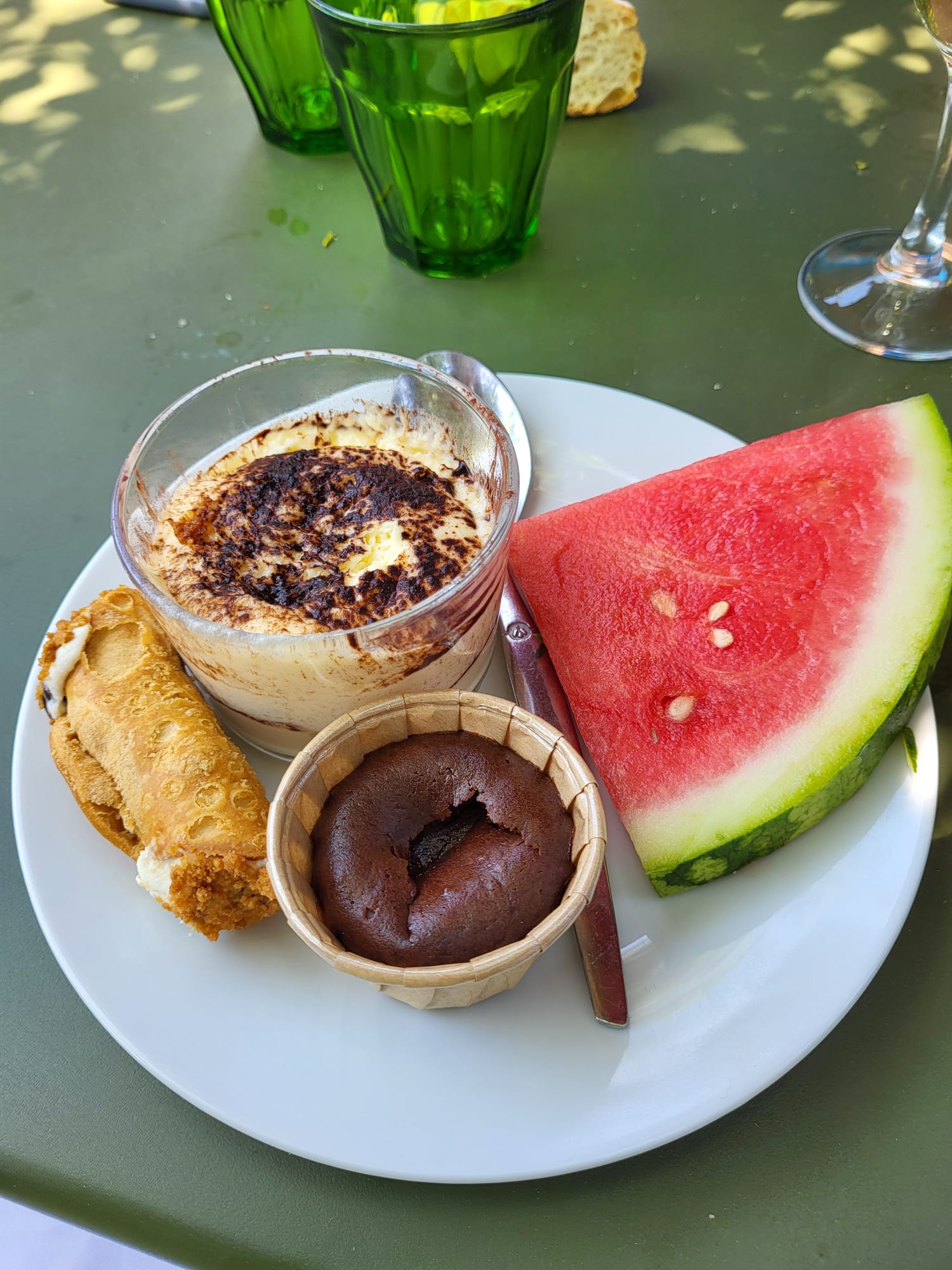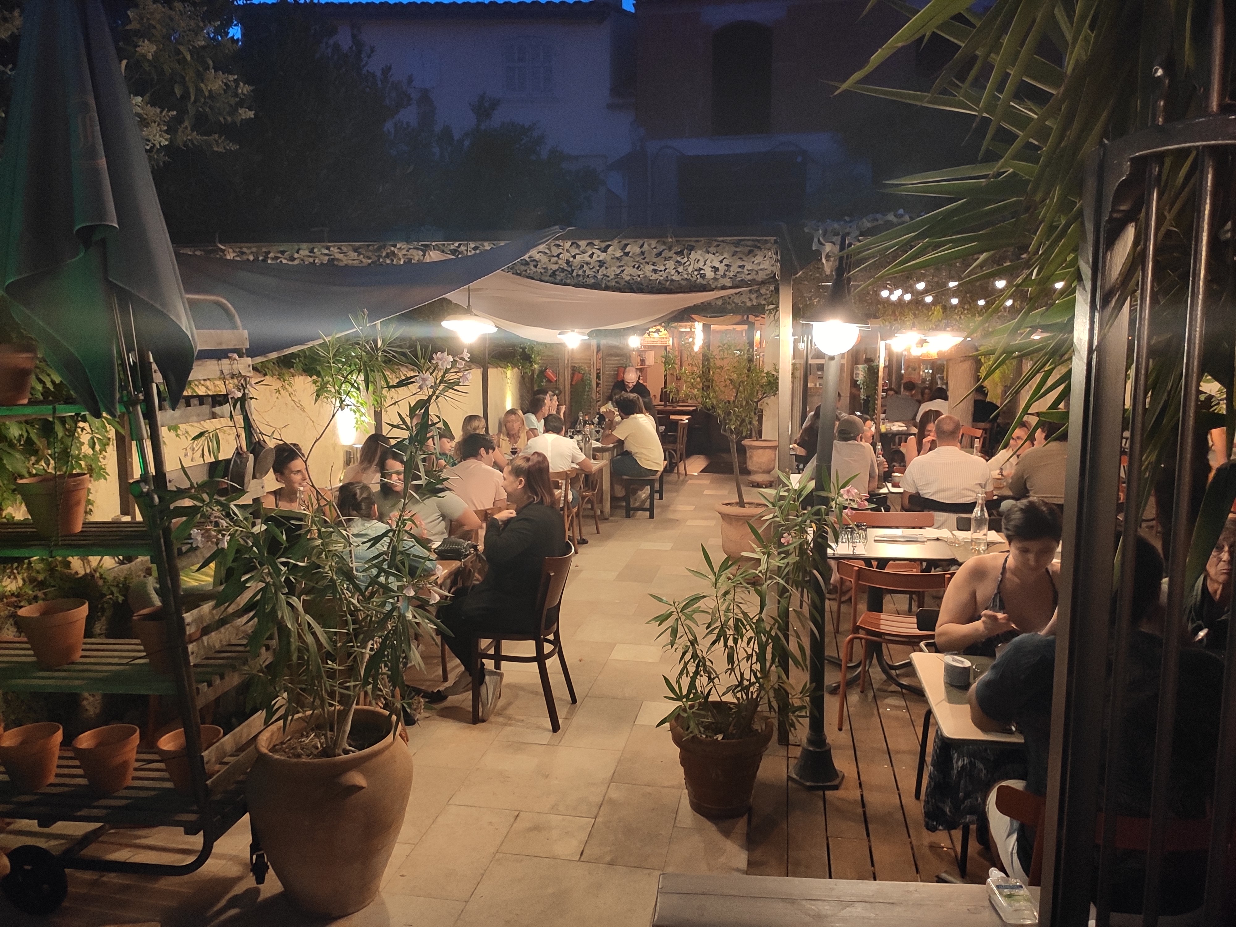 Lieu très sympathique au calme et a l'abris du soleil et de la circulation. Les plats et les entrées sont délicieux. Les portions généreuses et les prix tout a fait raisonnables. Le tiramisu aussi est vraiment bon, attention portion très généreuse, pour les plus gourmands seulement en fin de repas !
