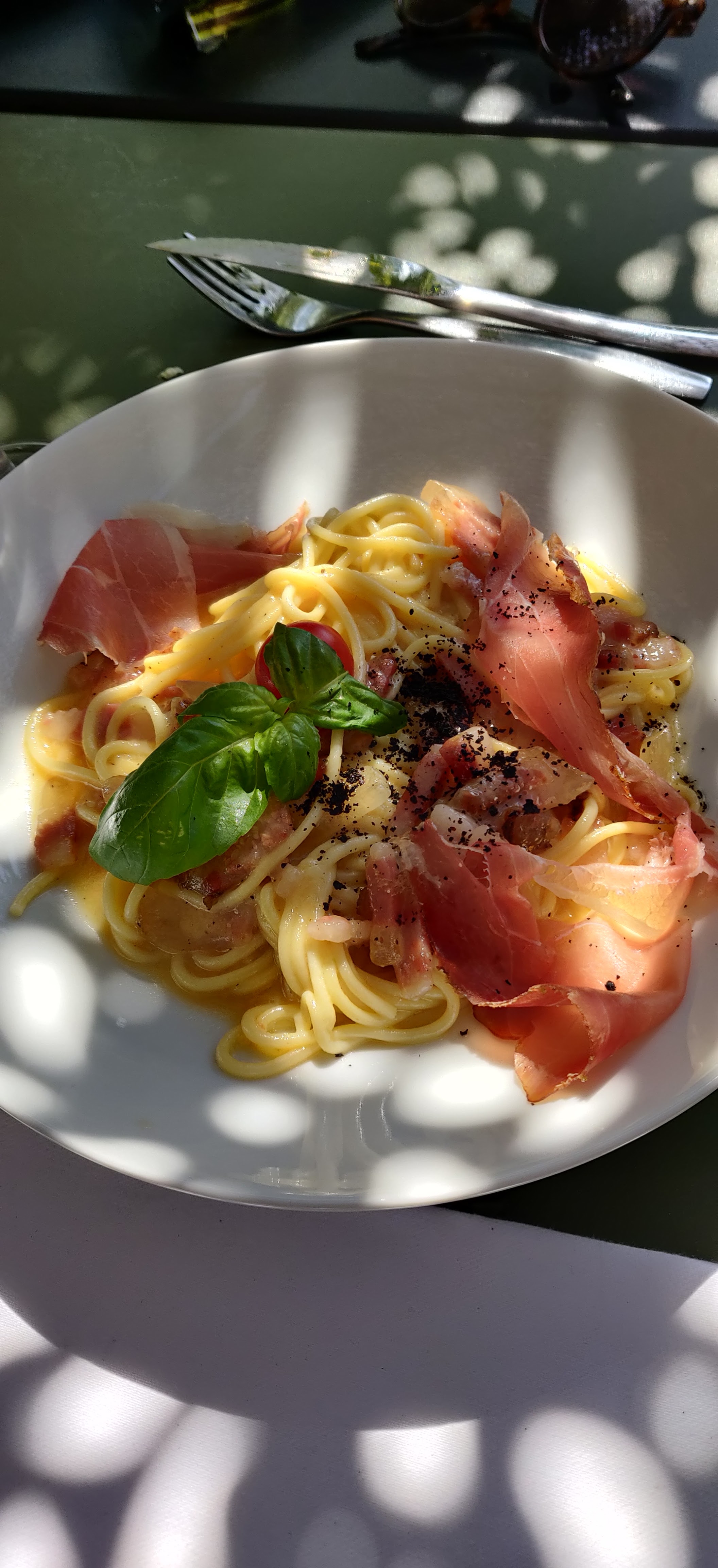 Lieu très agréable et personnel à la hauteur. La nourriture y est de qualité (pâtes fraîches, jambon cru délicieux et burrata à la hauteur de celle que l'on peut trouver en Italie). Le seul petit bémol indépendant de la volonté de cet établissement serait la petite proximité avec la route. En extérieur le passage des véhicules reste audible mais se fait rapidement oublier grâce à l'environnement attrayant.