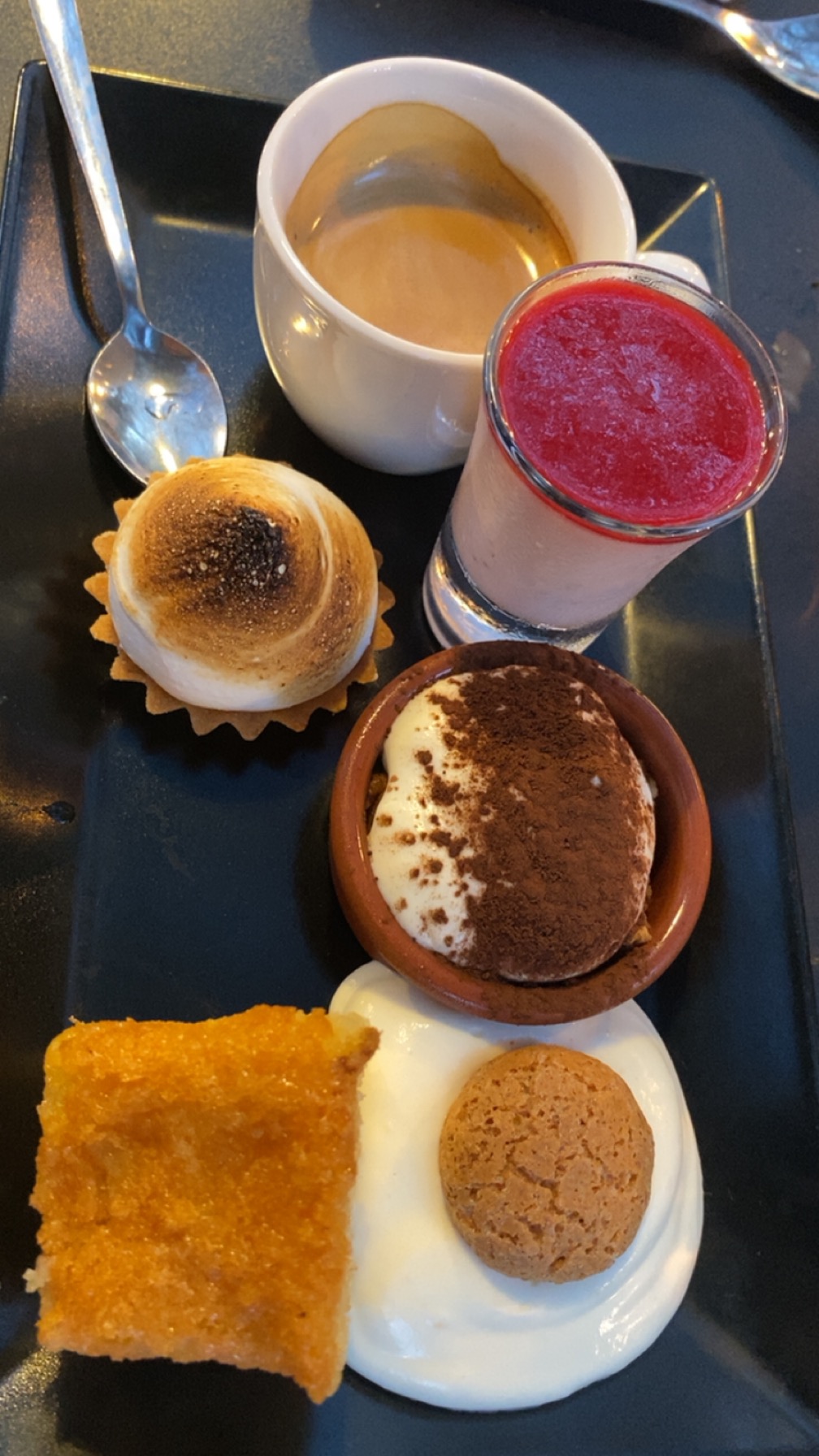 Déçues de notre repas entre filles ! Pas beaucoup de choix , salade italienne avec des poivrons en bocaux et des tomates sans goût. Concernant les desserts peu de choix et tiramisu ecouerant pas pu le terminer ! Dommage car joli et agréable cadre mais trop cher !
