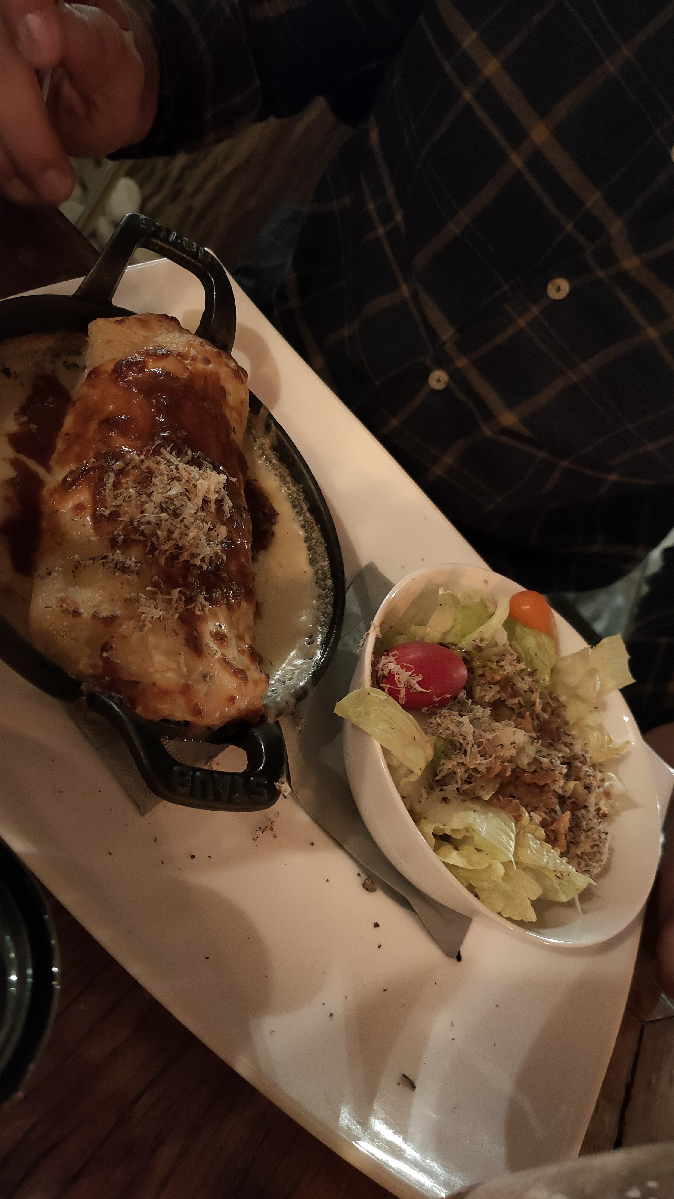 Exceptionnel. Le plat était excellent, lasagne roulée avec à l'intérieur préparation langoustine saint Jacques le tout gratiné puis nappé d'une bisque de langoustines avec noix de Saint Jacques et gambas grillée. Les desserts Tiramisu et gâteau italien limoncello étaient très bons. A recommander
