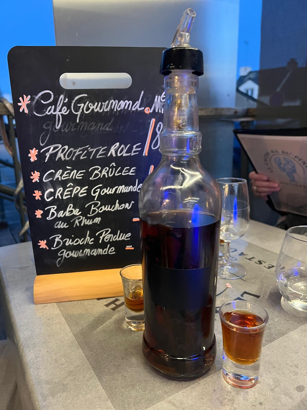 Nous étions cette fois-ci 7 à table hier soir et nous nous sommes tous régalés avec la petite pêche, la choucroute de la mer et le tartare de saumon. Le Patron toujours aussi accueillant et chaleureux, idem pour la Cheffe qui est venue nous saluer une fois le coup de feu en cuisine retombé. Encore une belle soirée à Penvins... Le rhum vanillé, un délice ! Isabelle G.