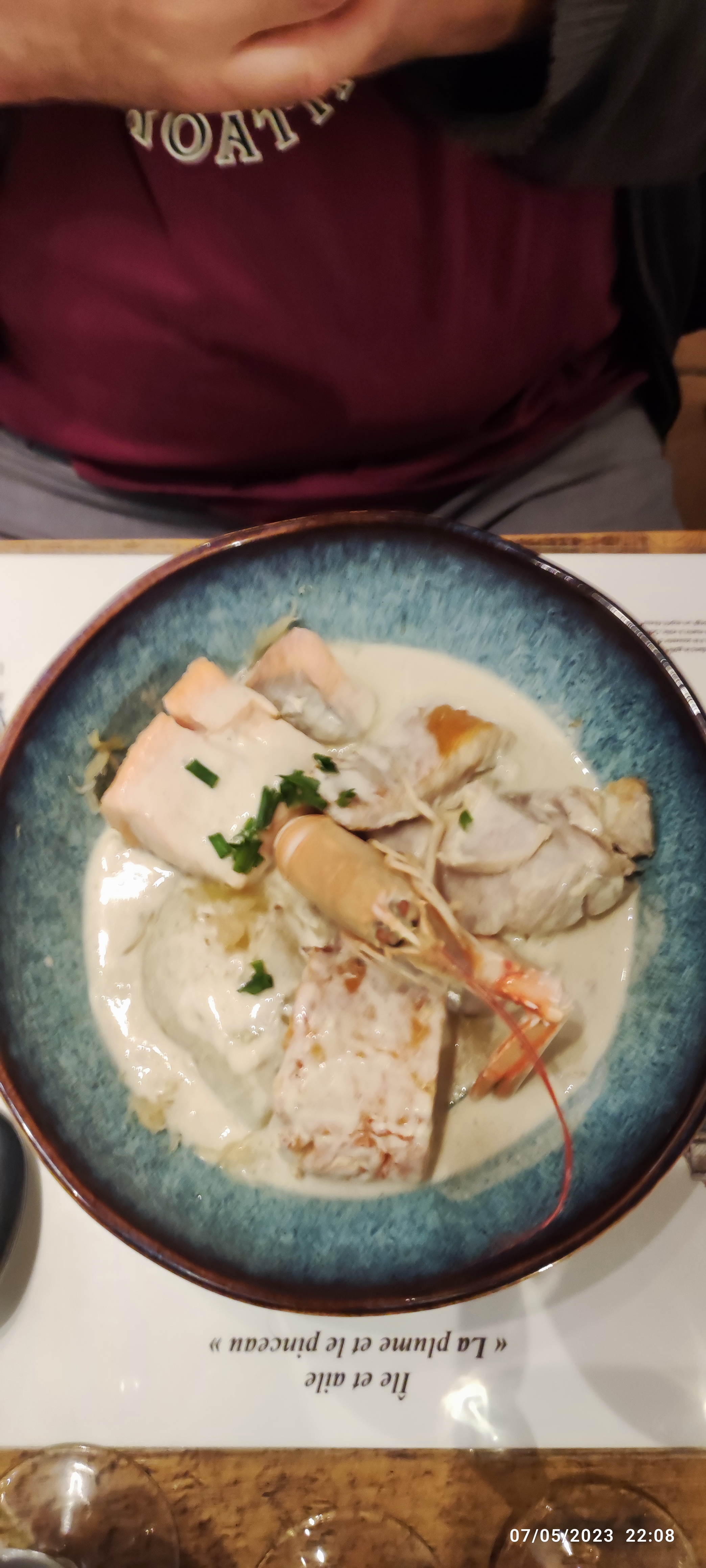 La choucroute de la mer... Un délice : une cuisson des poissons et des langoustines nickel... Un chou qui se fond dans l'ensemble avec une sauce qui lie le tout.. Et le tout est très copieux. Sans oublier un très bon accueil et service