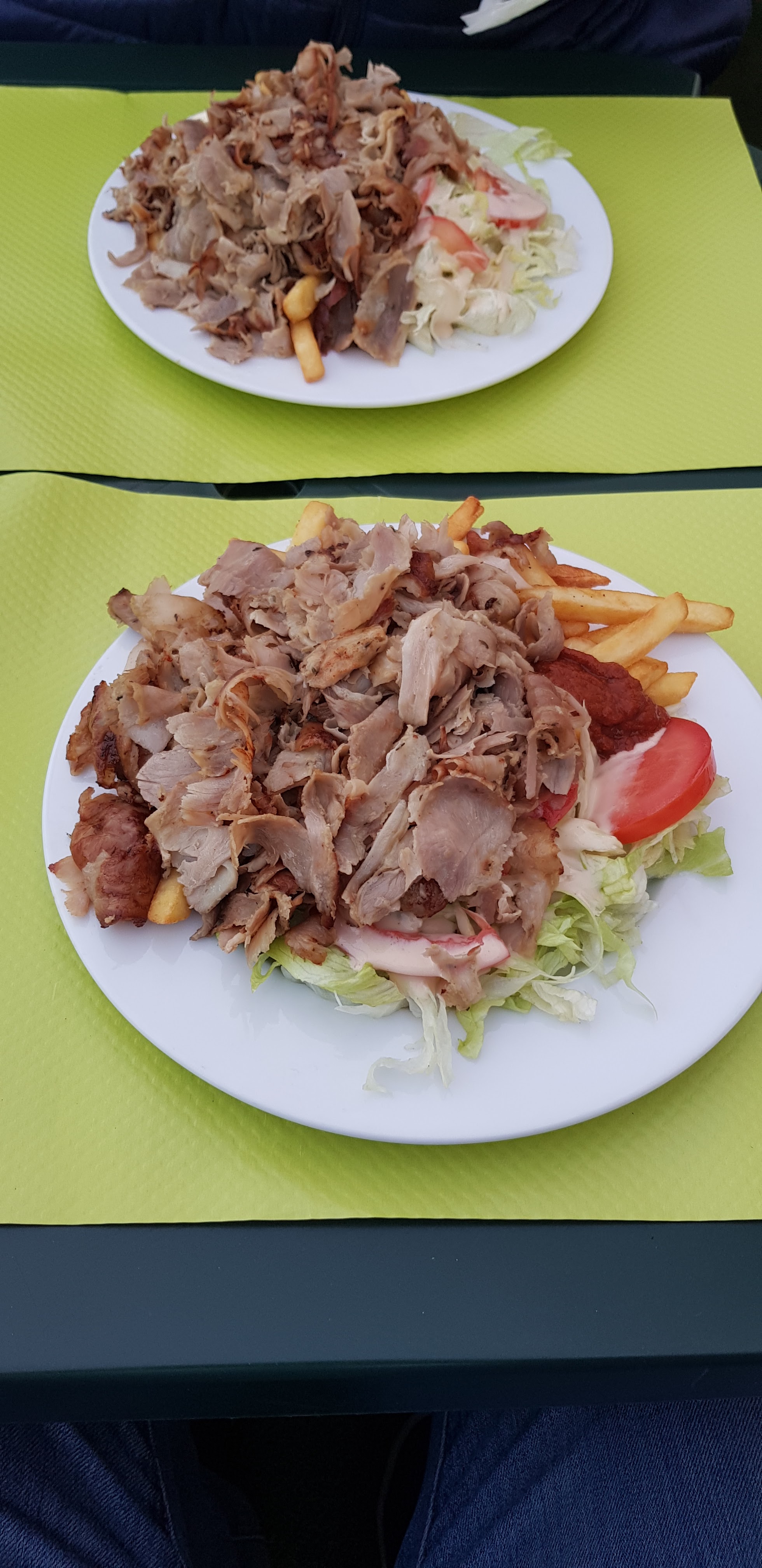 Excellent, copieux, restaurant tres propre, vous faites vos commande sur une borne, vous payez et on vous apporte sur la terrasse en exterieur votre repas 1 tacos avec 3 ingrédients + une boisson+un kebab+une boisson 17 euro Je recommande ce restaurant