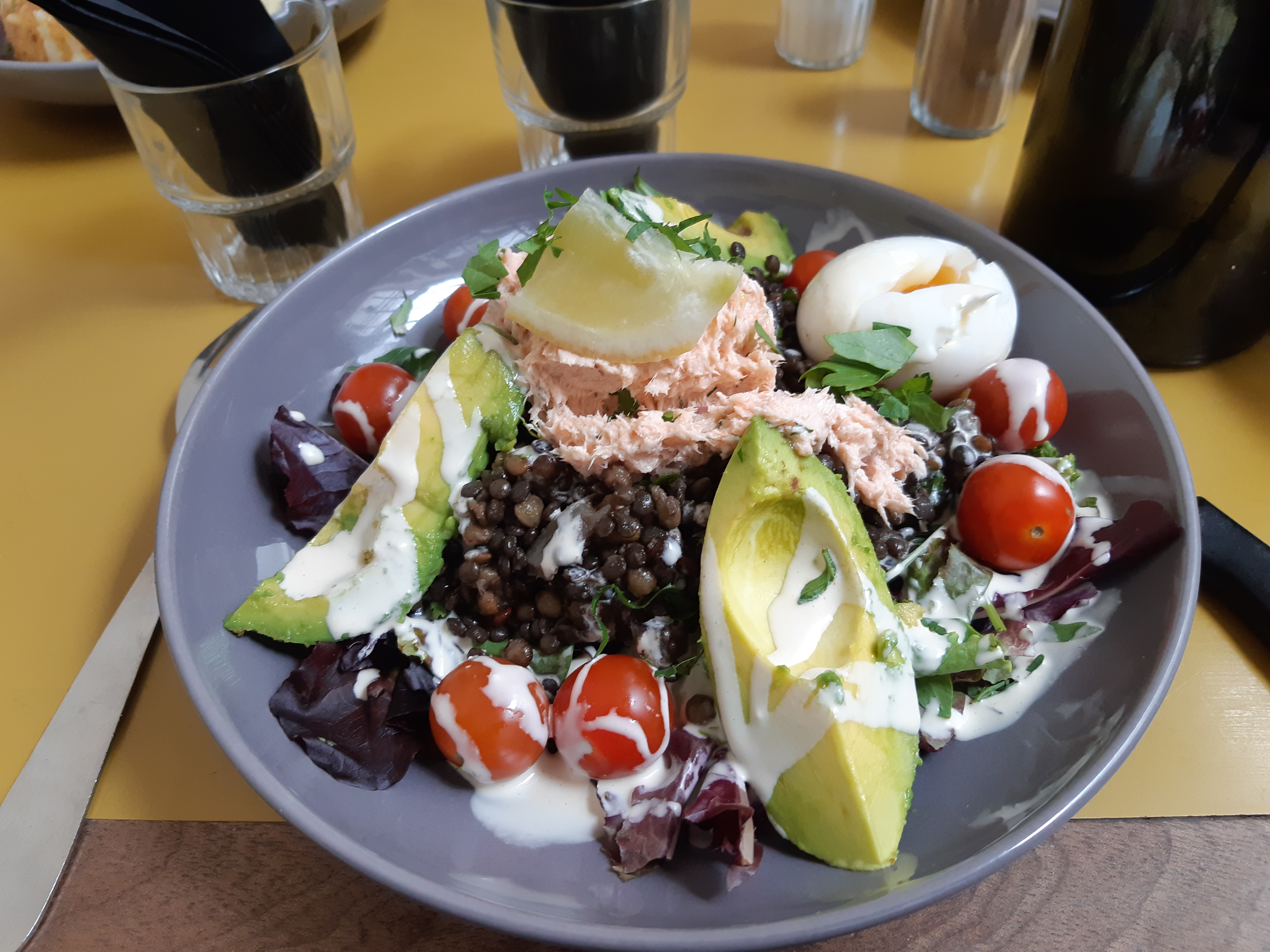 Lieu atypique, très sympa avec une ambiance rétro et décontractée. Les plats sont variés et de bonne qualité. J'ai pu apprécier 2 entrées, potage et oeuf mollet.... Un régal. Réservez si vous venez nombreux, l'espace est grand mais leur succès se mérite. Bon appétit !!