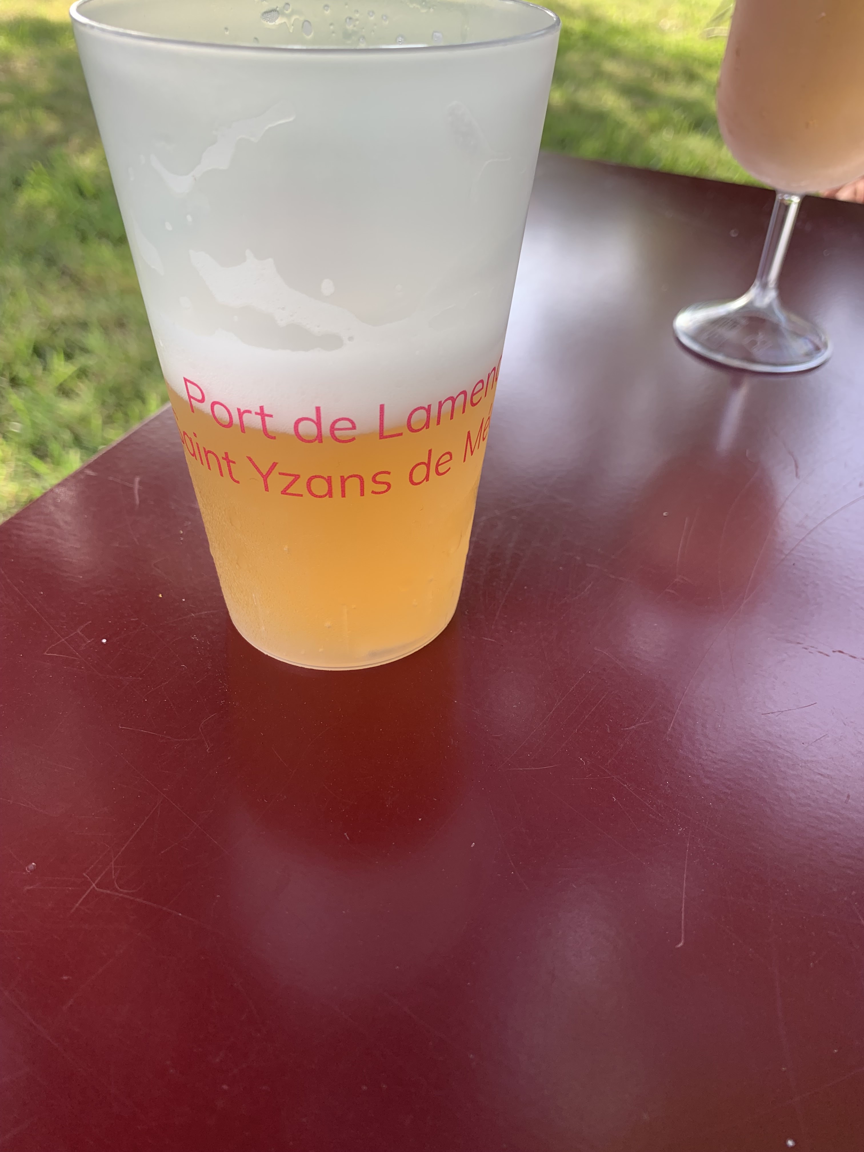 Emplacement idéal au bord de la Gironde et un peu « au bout du monde » avec des tables simples sous les arbres. Les crêpes sont toujours à emporter donc le service est dans des boites cartonnées avec des couverts à usage unique. Ambiance familiale et relaxe. Les garnitures sont à base de produits locaux comme la crêpe au miel du Médoc… que je recommande particulièrement.