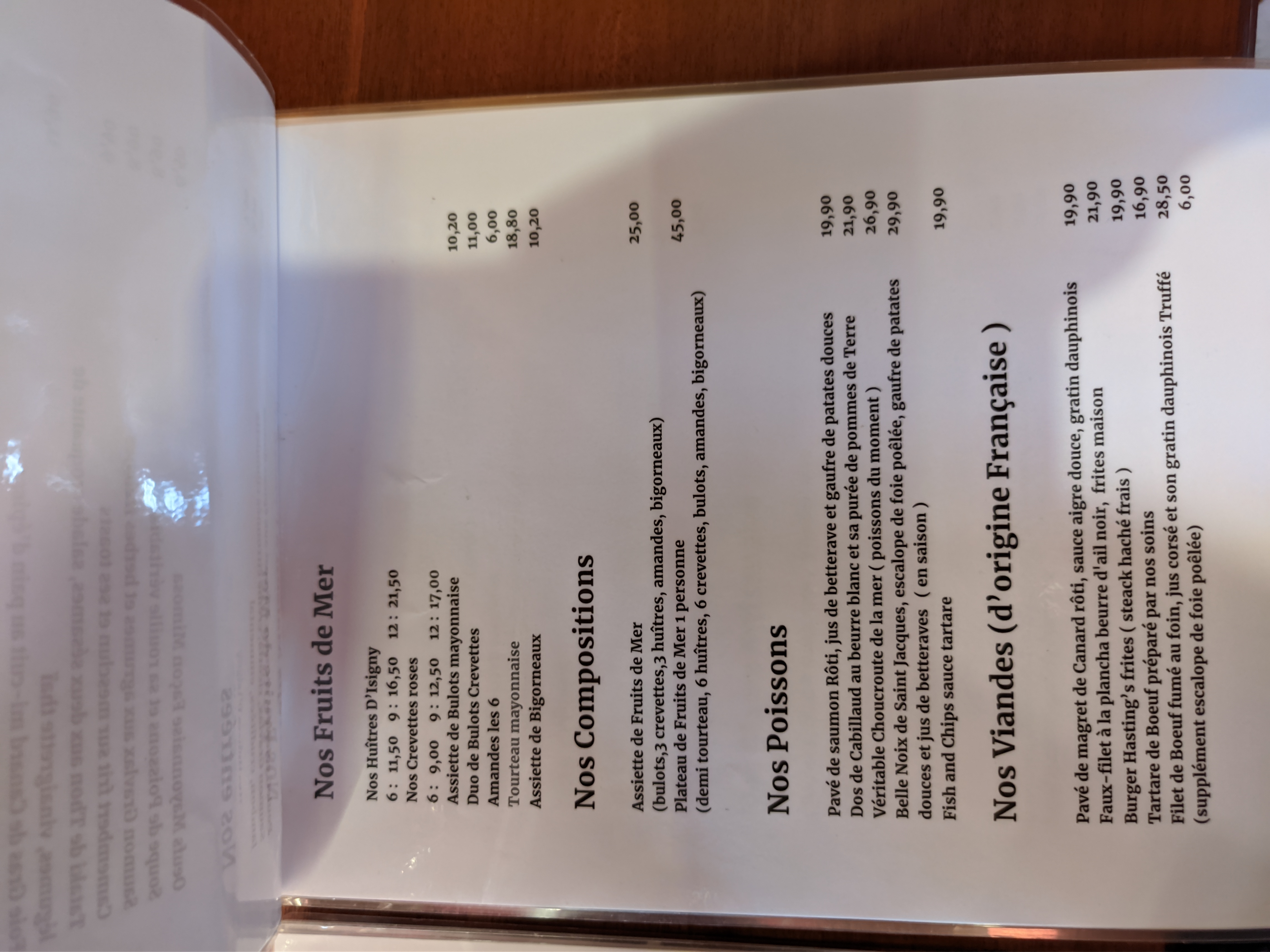 Très très bon de l'entrée au dessert. En même temps nous avons pris avec mon épouse le menu Hasting's à 50€ Le seul bémol à été en fin de service quand nous avons attendu qu'on revienne vers nous pour nous proposer un petit café. En dehors de ce désagrément service agréable et qualité des produits irréprochable. Don je mets tout de même la note de 5.