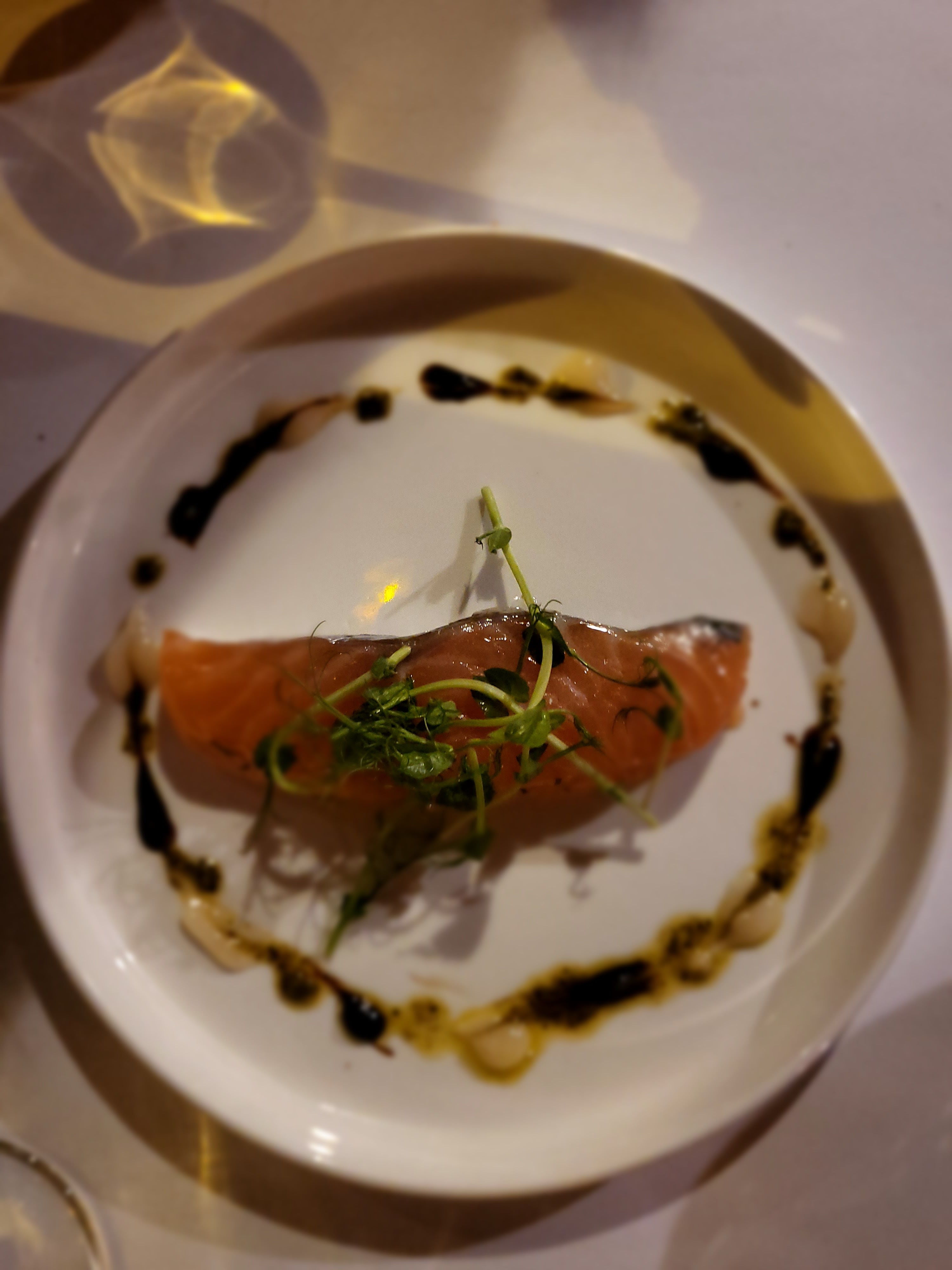 Très bon saumon mais plat un peu tiède à l’arrivée, froid le temps de terminer Service agréable et joli cadre